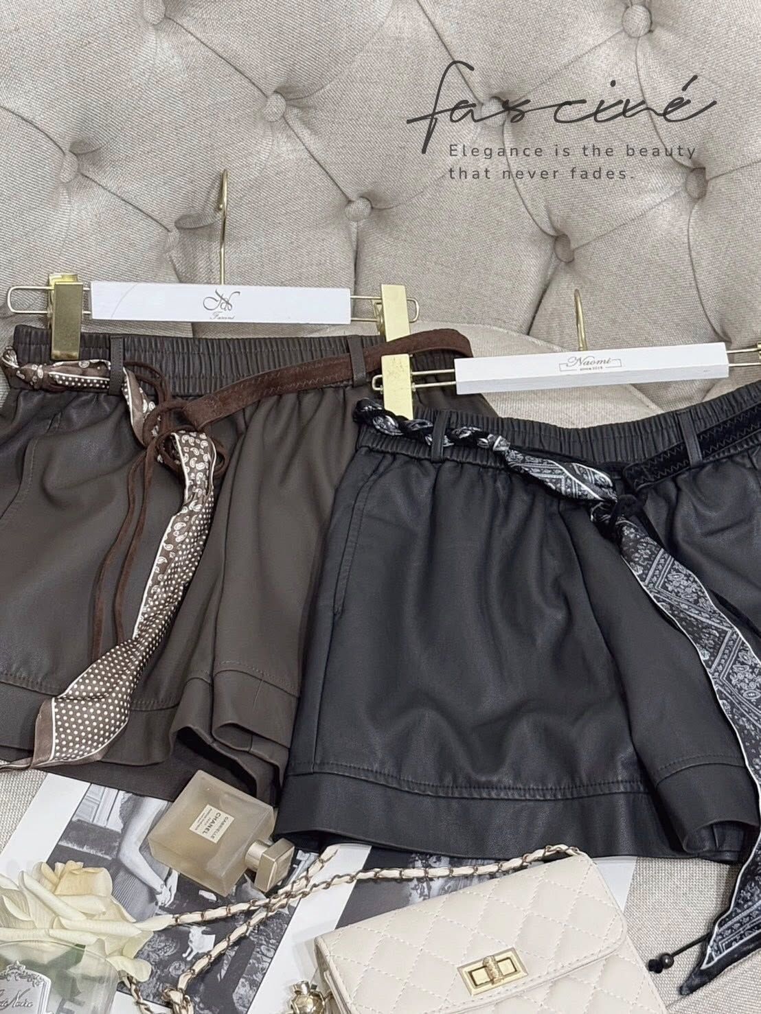 輕柔皮革感面料搭配闊腿剪裁,行走無束縛、視覺俐落顯精神,日常與通勤都好駕馭。鬆緊中高腰+可拆飄帶腰繩,隨性一結就有層次與法式精緻,穿脫自在不挑身形。反摺褲口與兩側口袋設計,比例更乾淨、收納更實穿;雙色可選更好搭配。