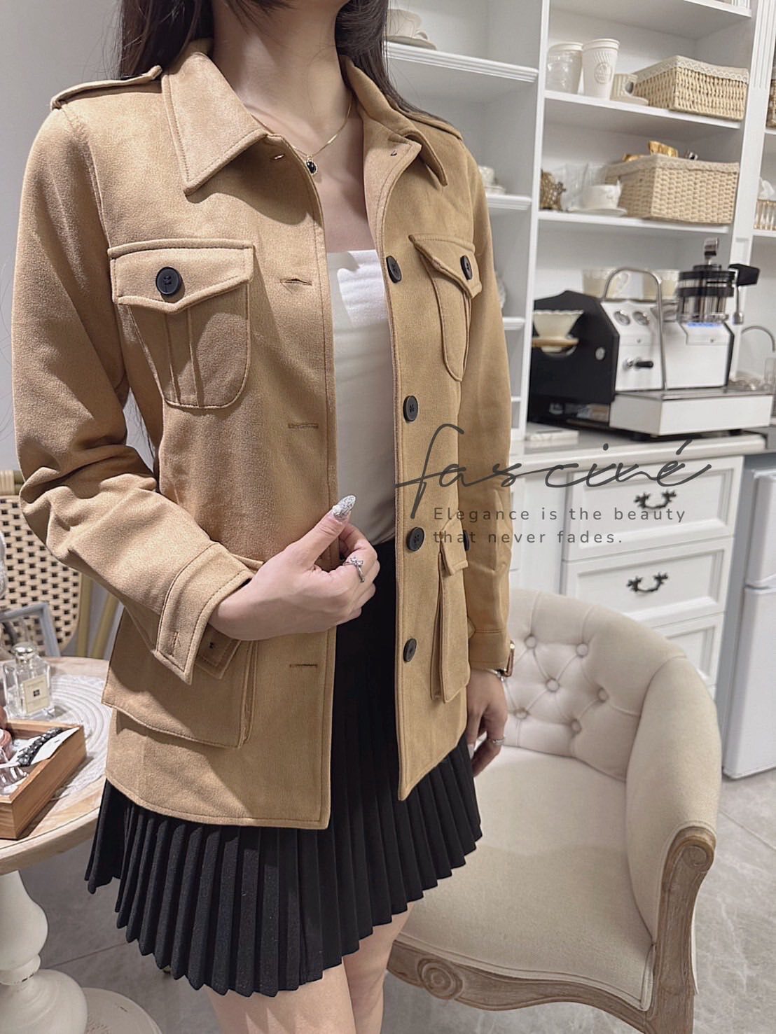(10T90-25)法式獨特百搭高級感棕色麂皮收腰外套