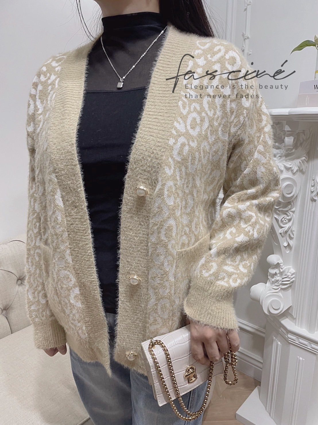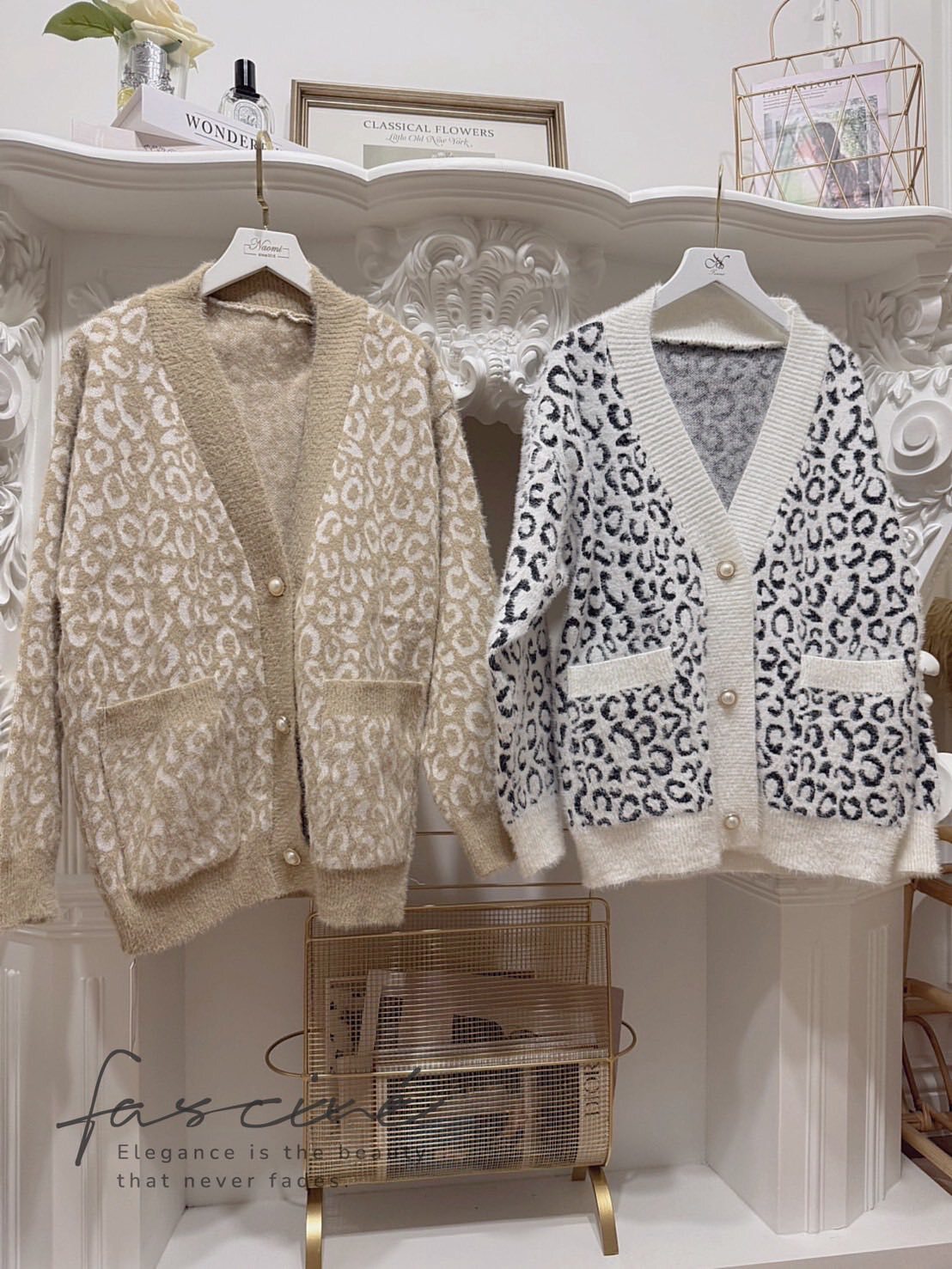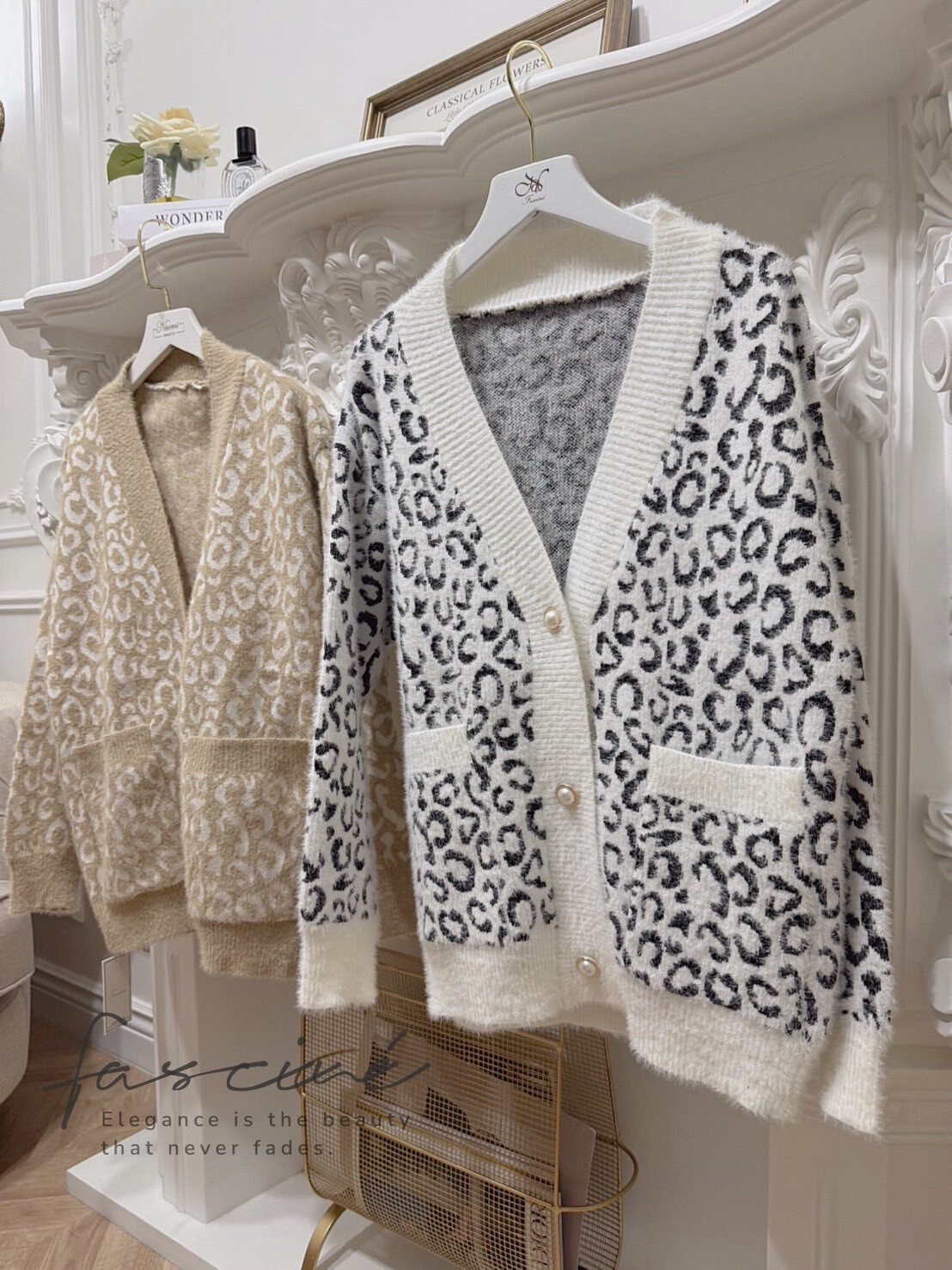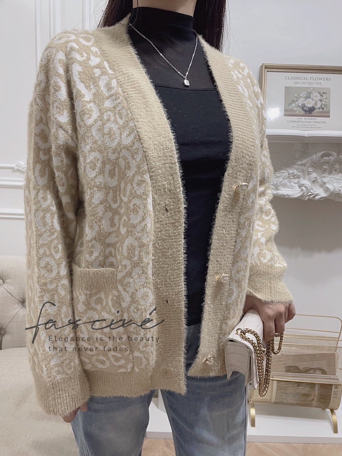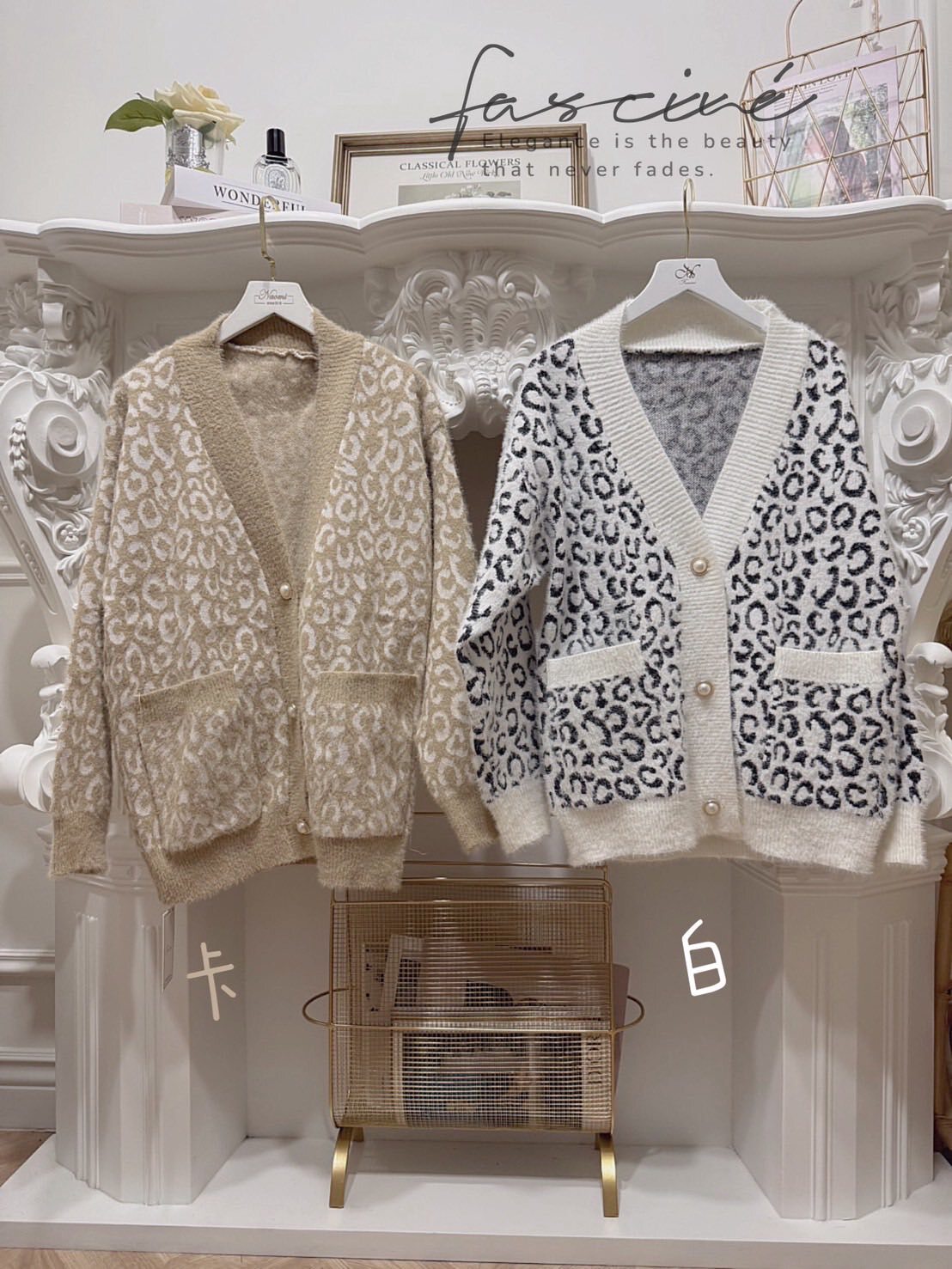 (10T86-25B)法式豹紋時尚毛絨外套上衣