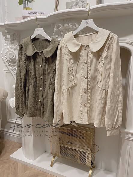 圓弧娃娃領結合花朵蕾絲滾邊,修飾臉部曲線,珍珠排釦映出低調光澤感,優雅不做作。