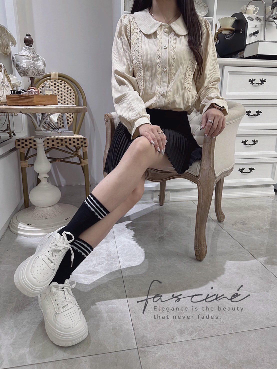 搭配建議:高腰百褶短裙+長靴營造甜酷學院風;或直筒牛仔+樂福鞋,清新法式通勤感。
