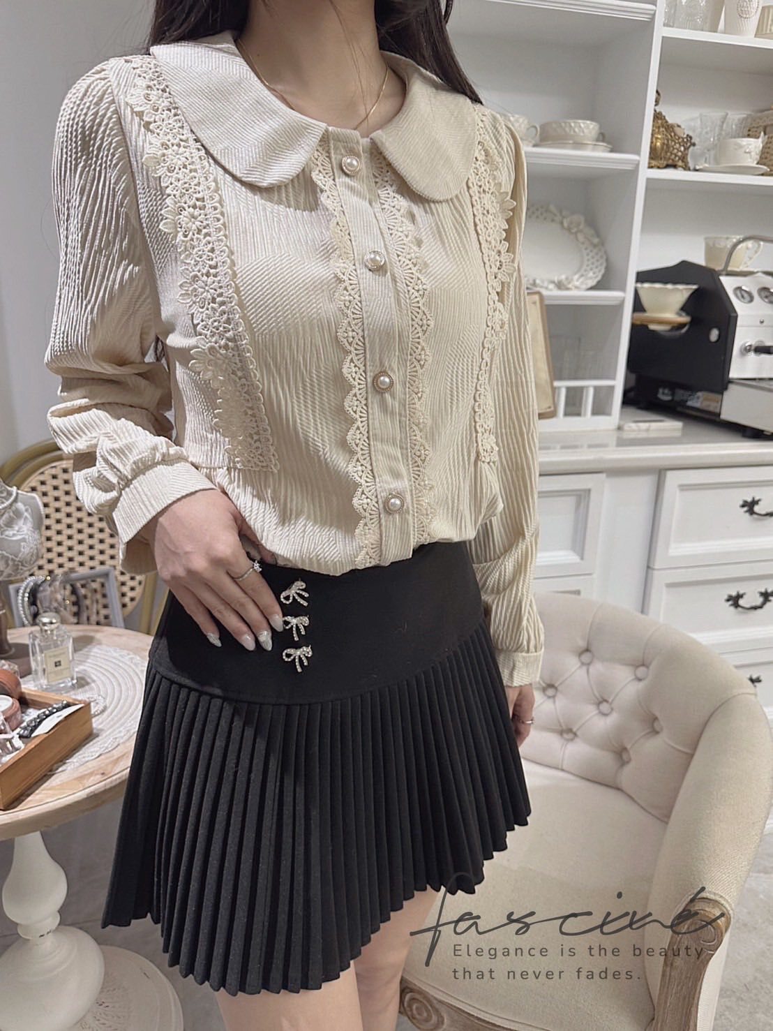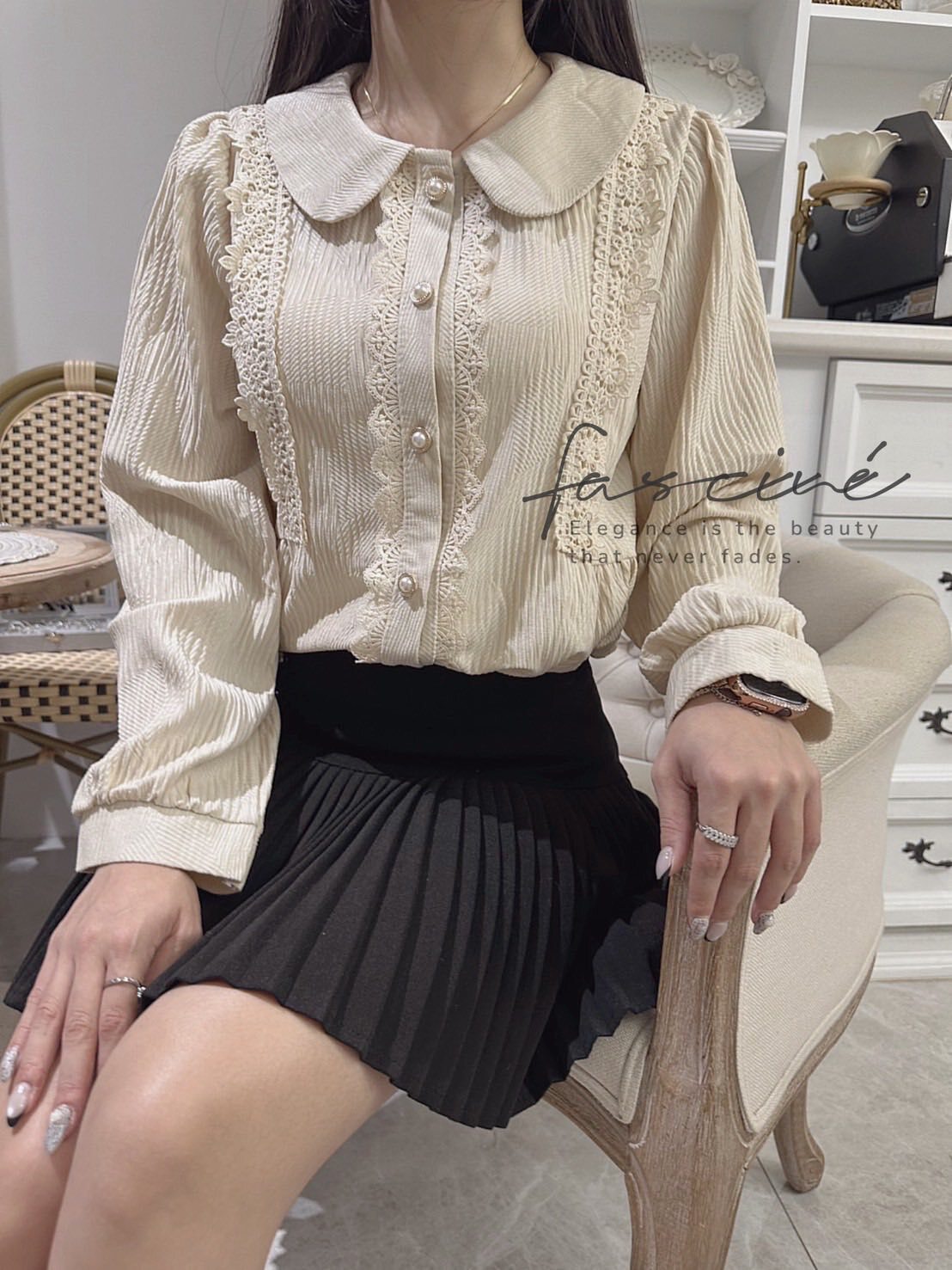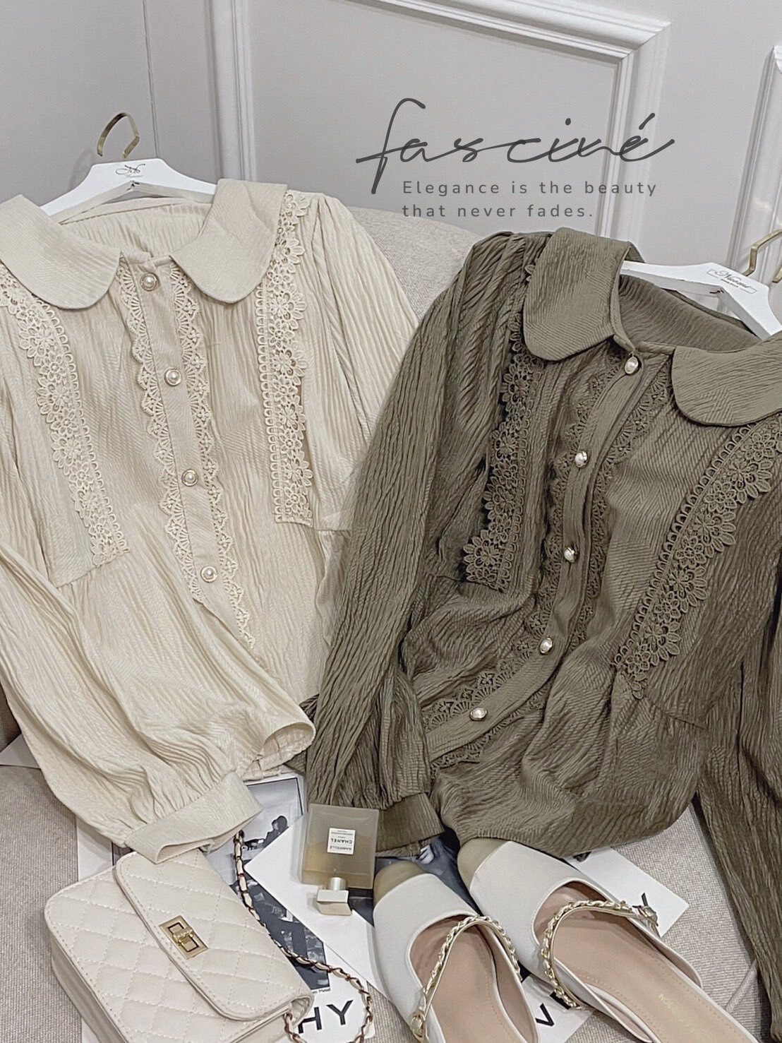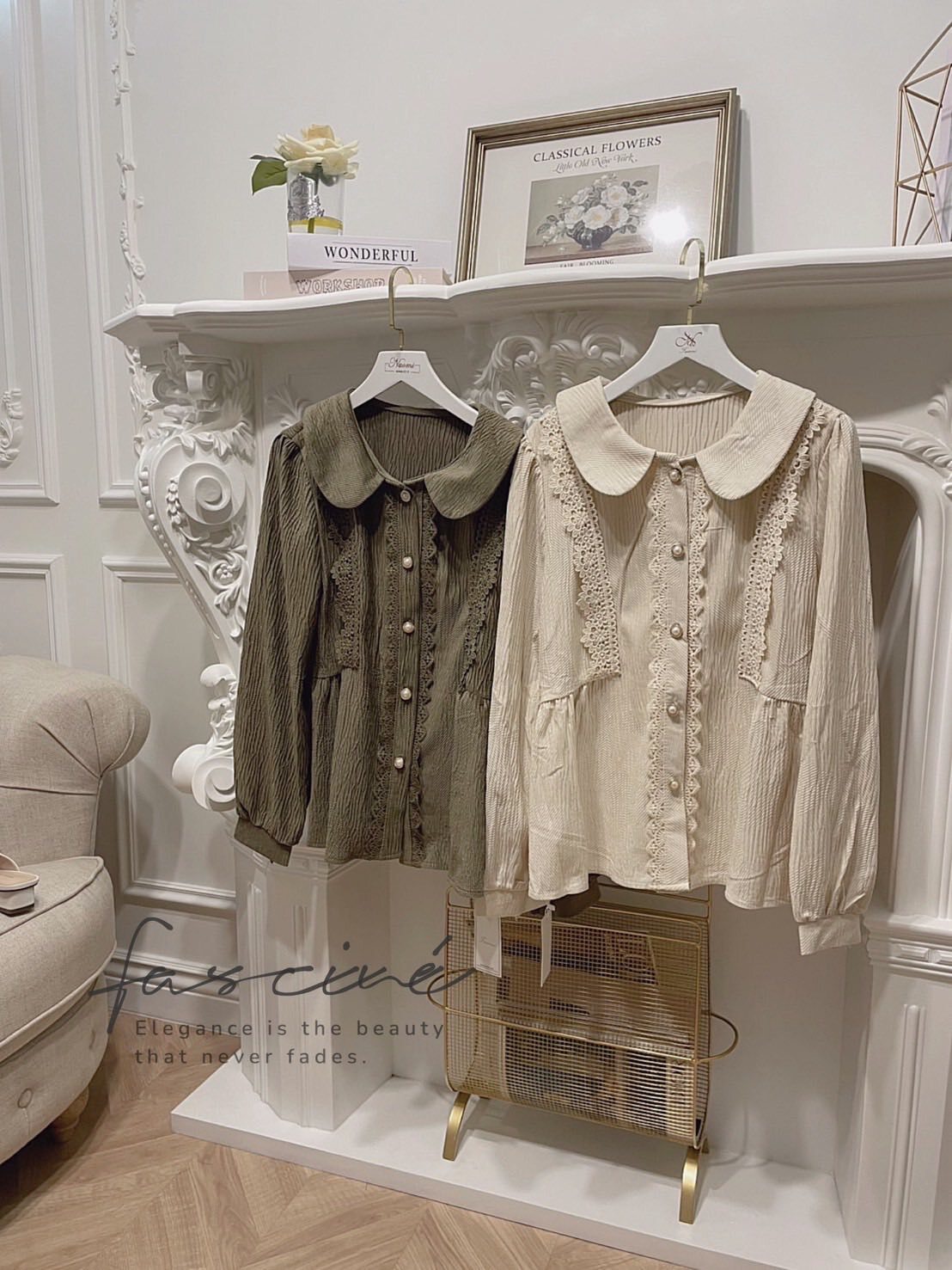 (10T89-25)法式精緻蕾絲領排釦上衣