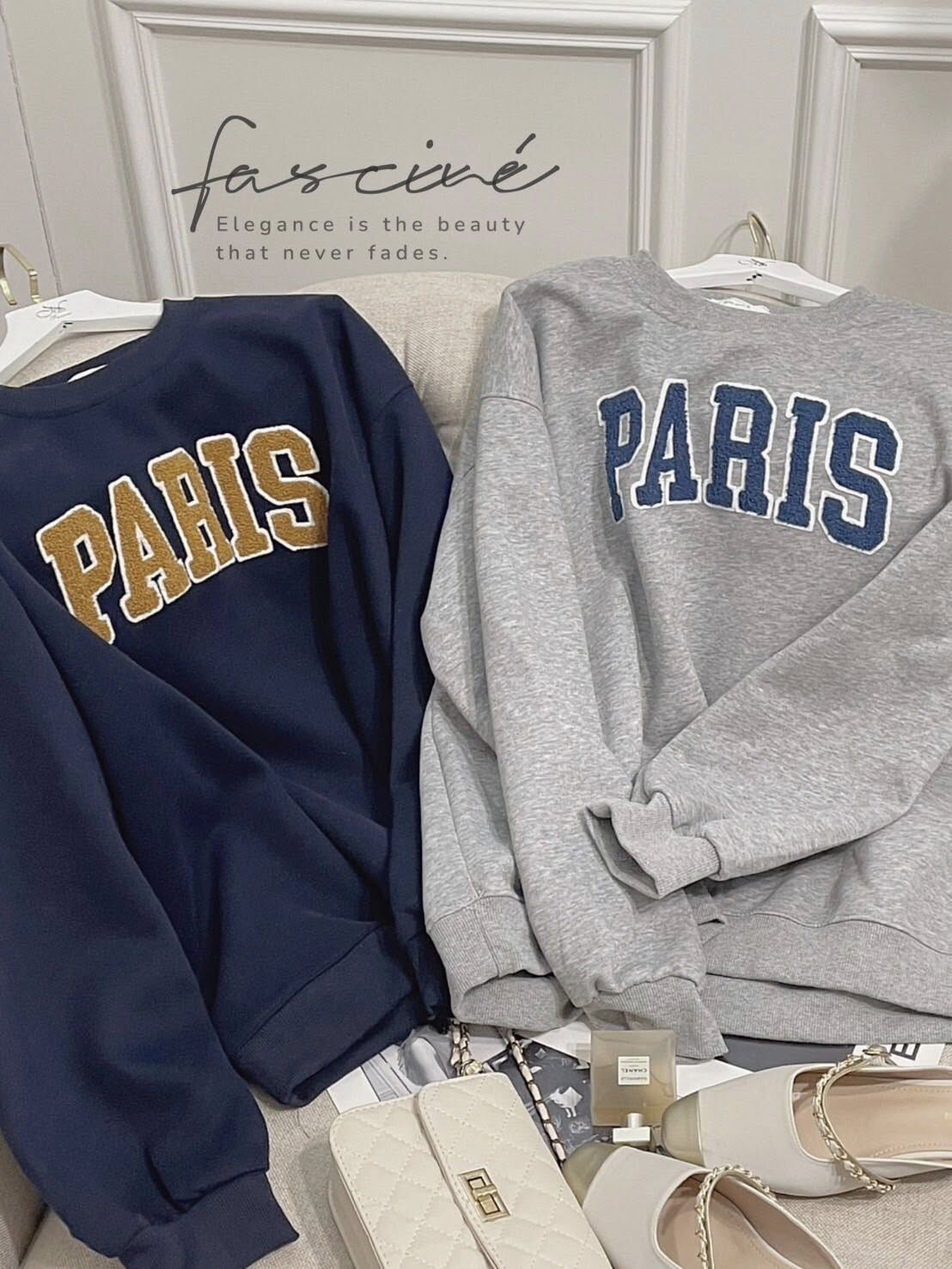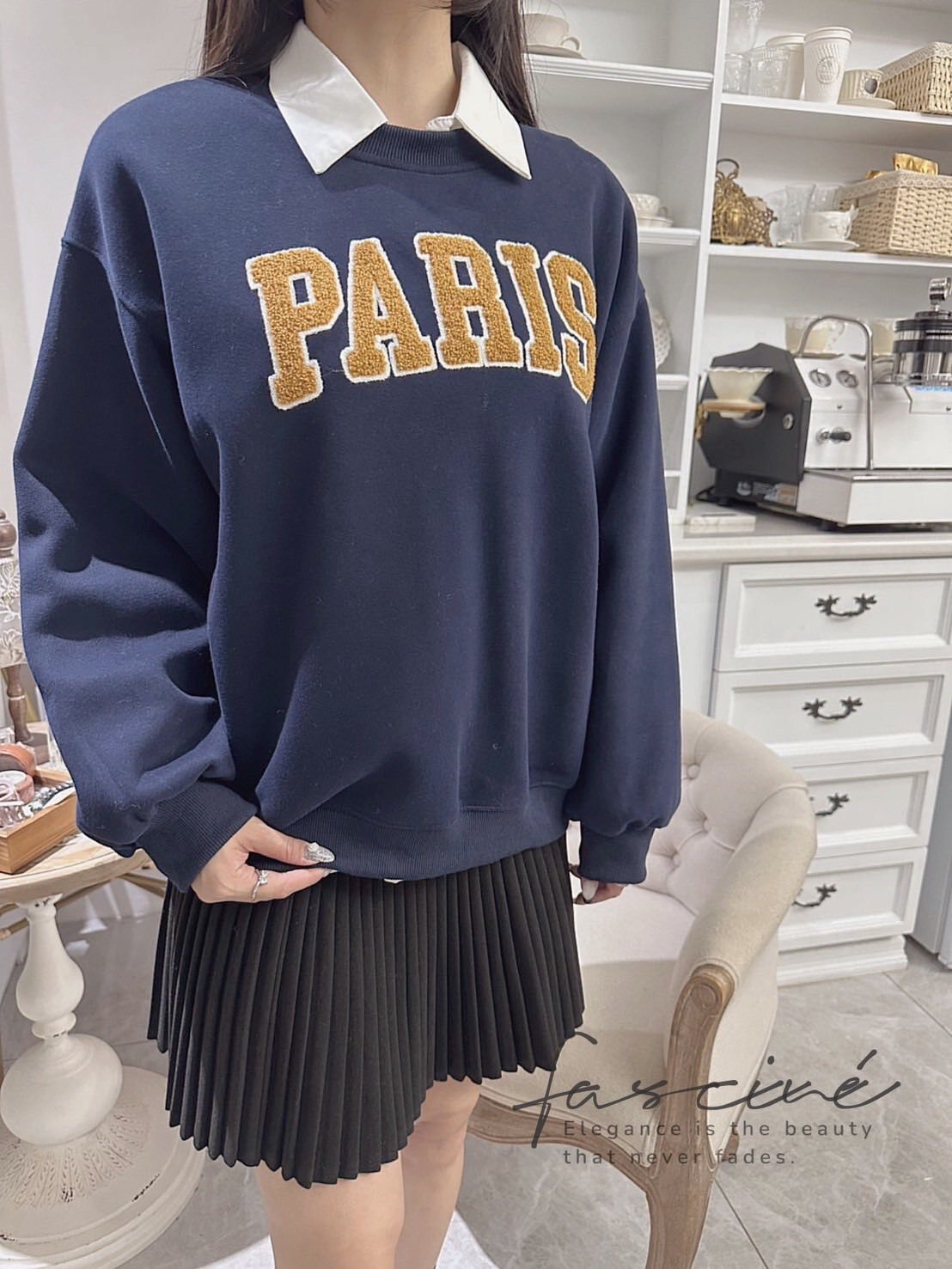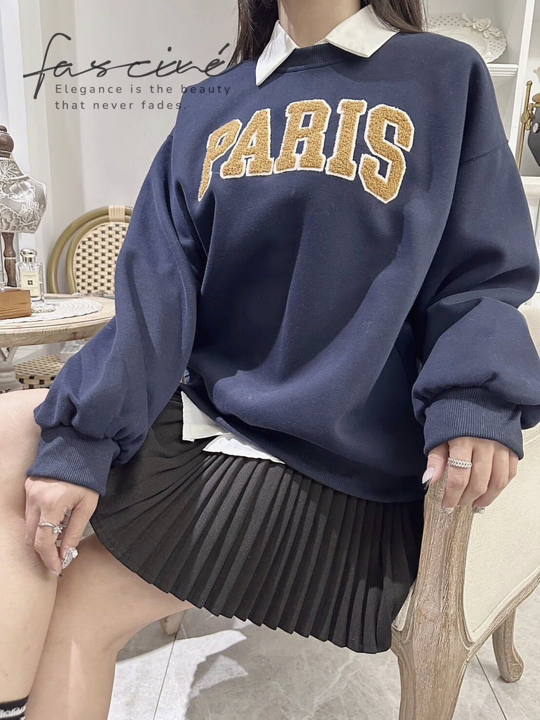 秋冬必備的學院風單品,PARIS字母刺繡衛衣運用立體毛巾繡工藝。