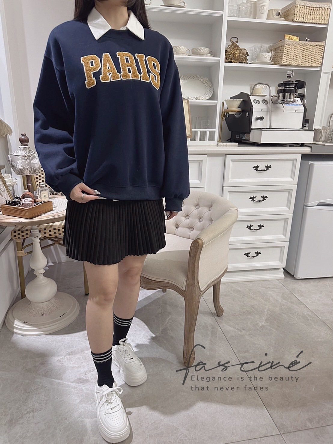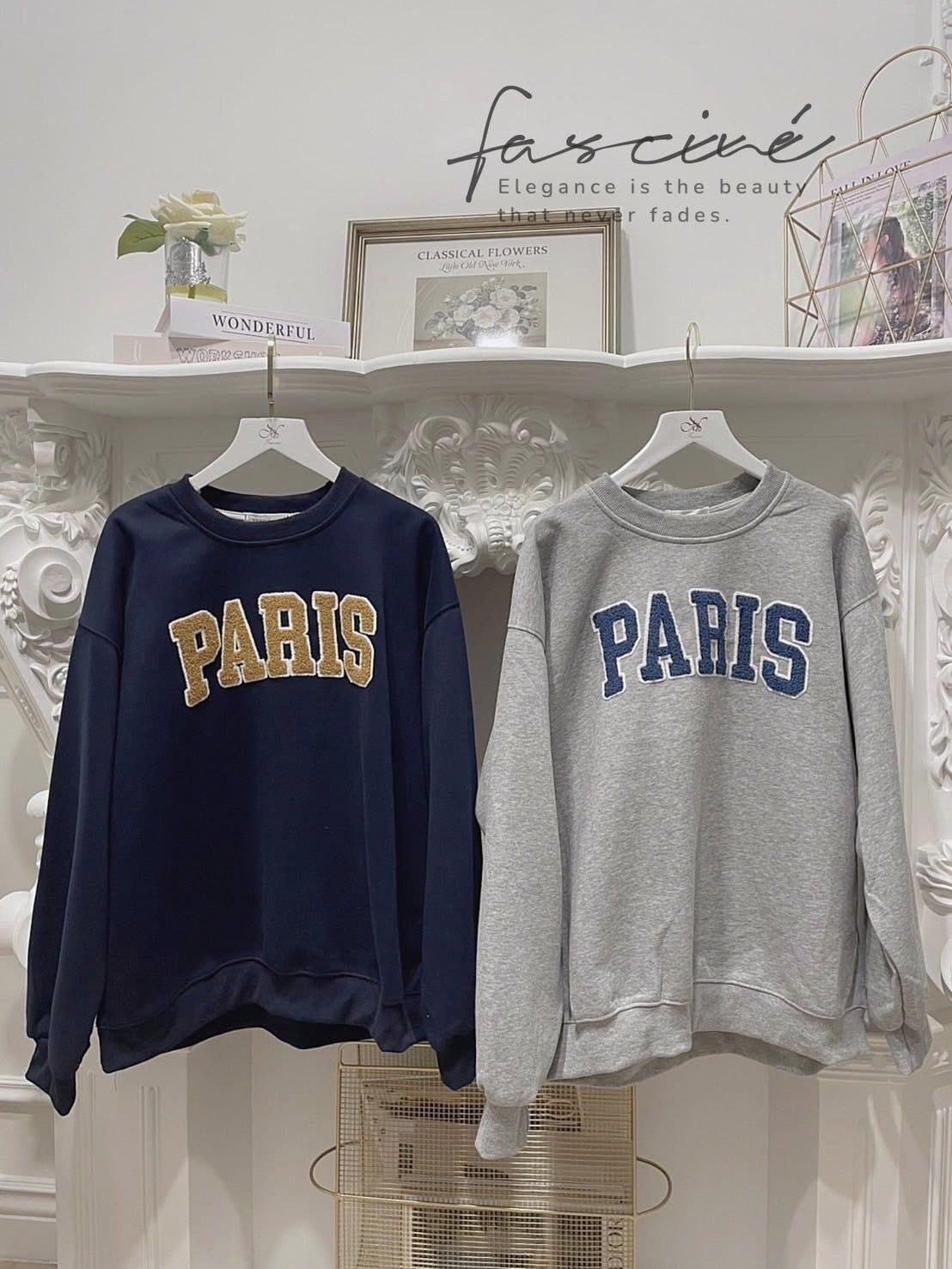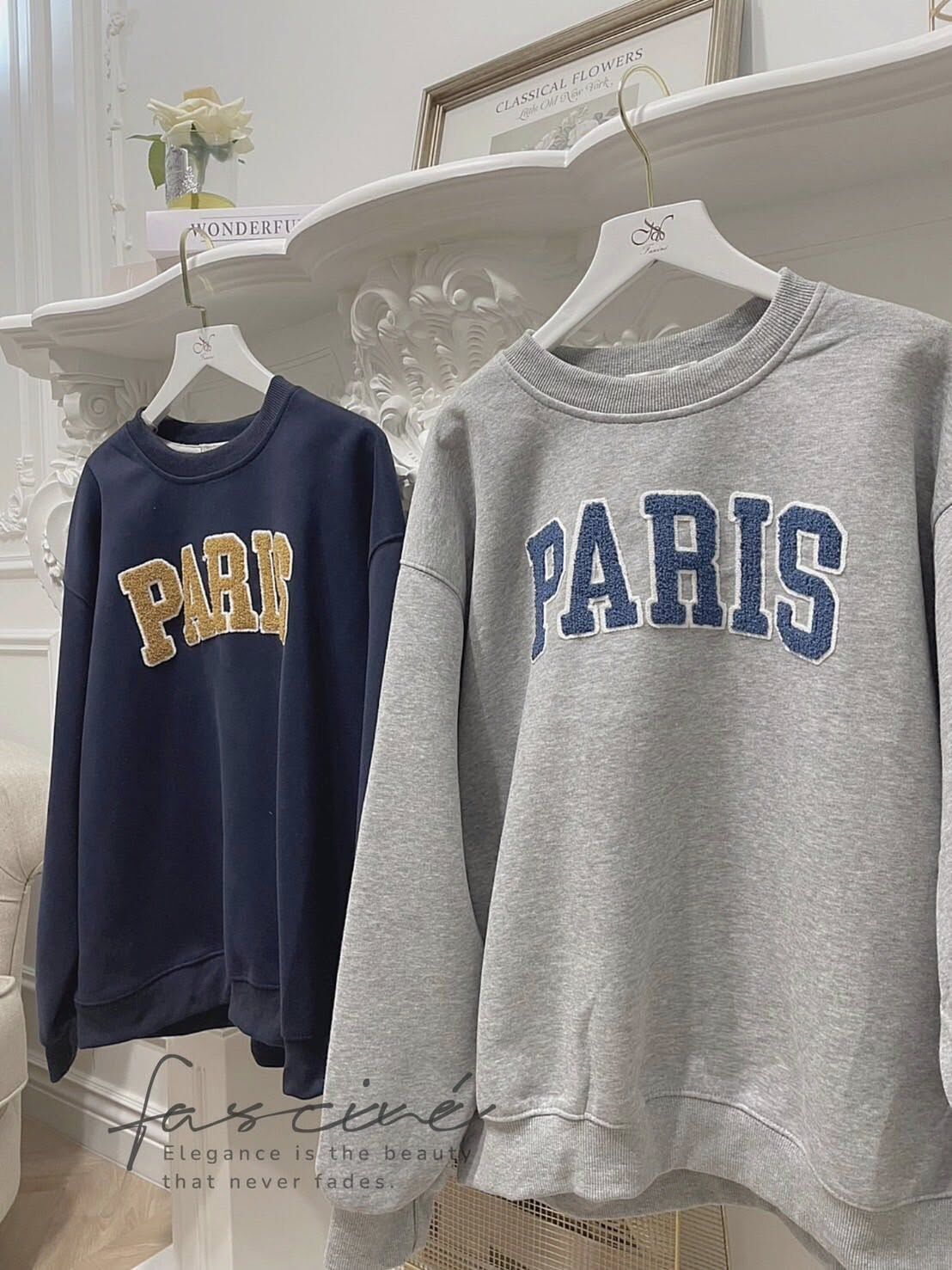 秋冬必備的學院風單品,PARIS字母刺繡衛衣運用立體毛巾繡工藝。