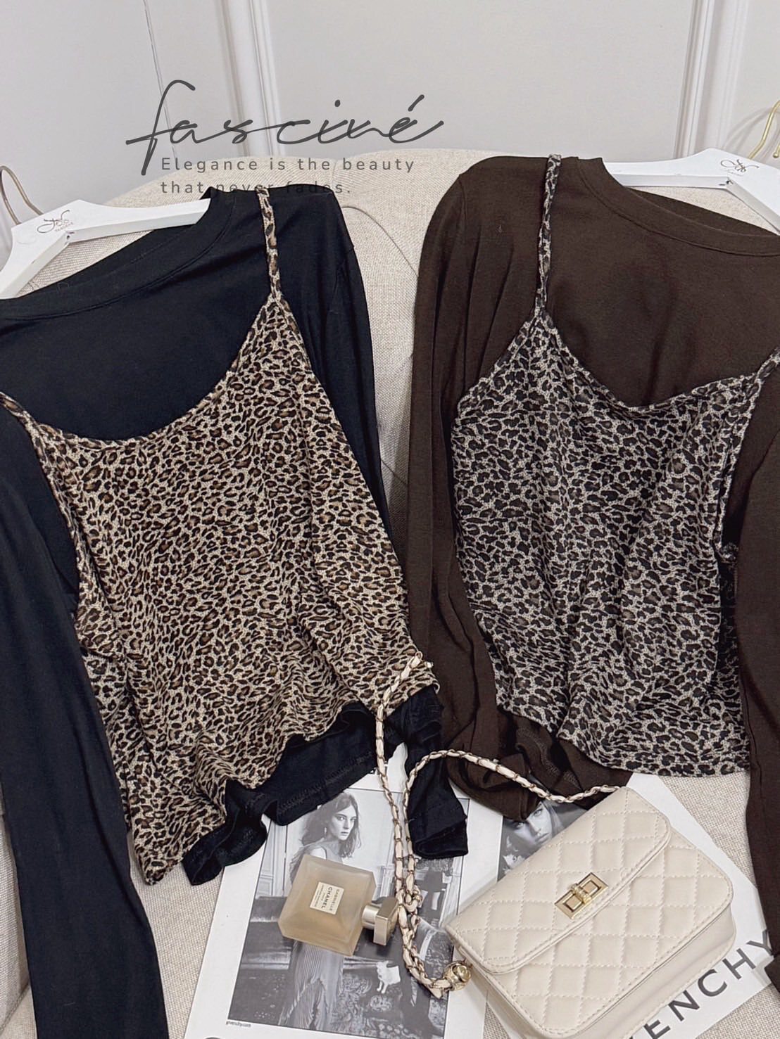 軟糯彈性圓領T+細肩帶豹紋背心,可拆分單穿,通勤與約會一套搞定。背心微短版修飾腰線,垂墜不卡身;混紡親膚不易透,內搭外穿都體面。