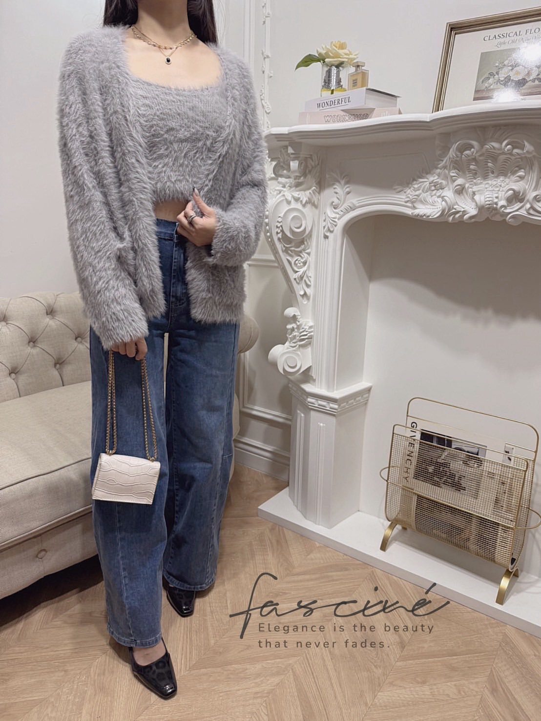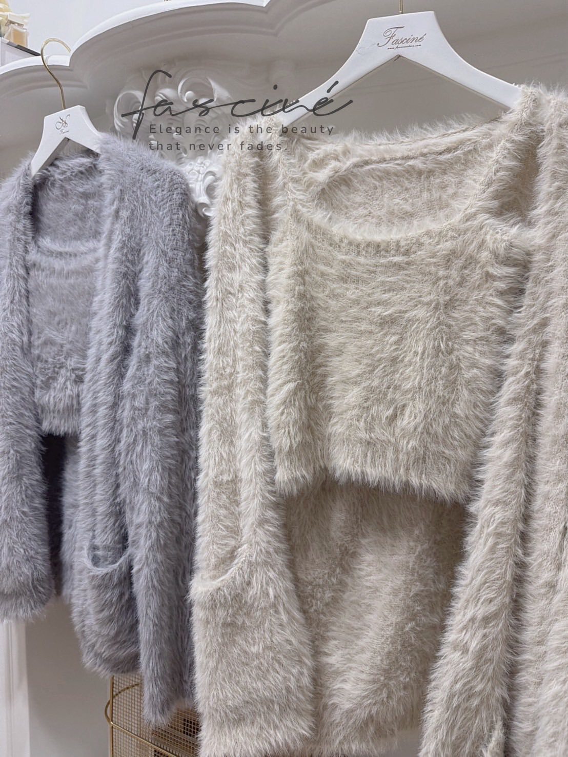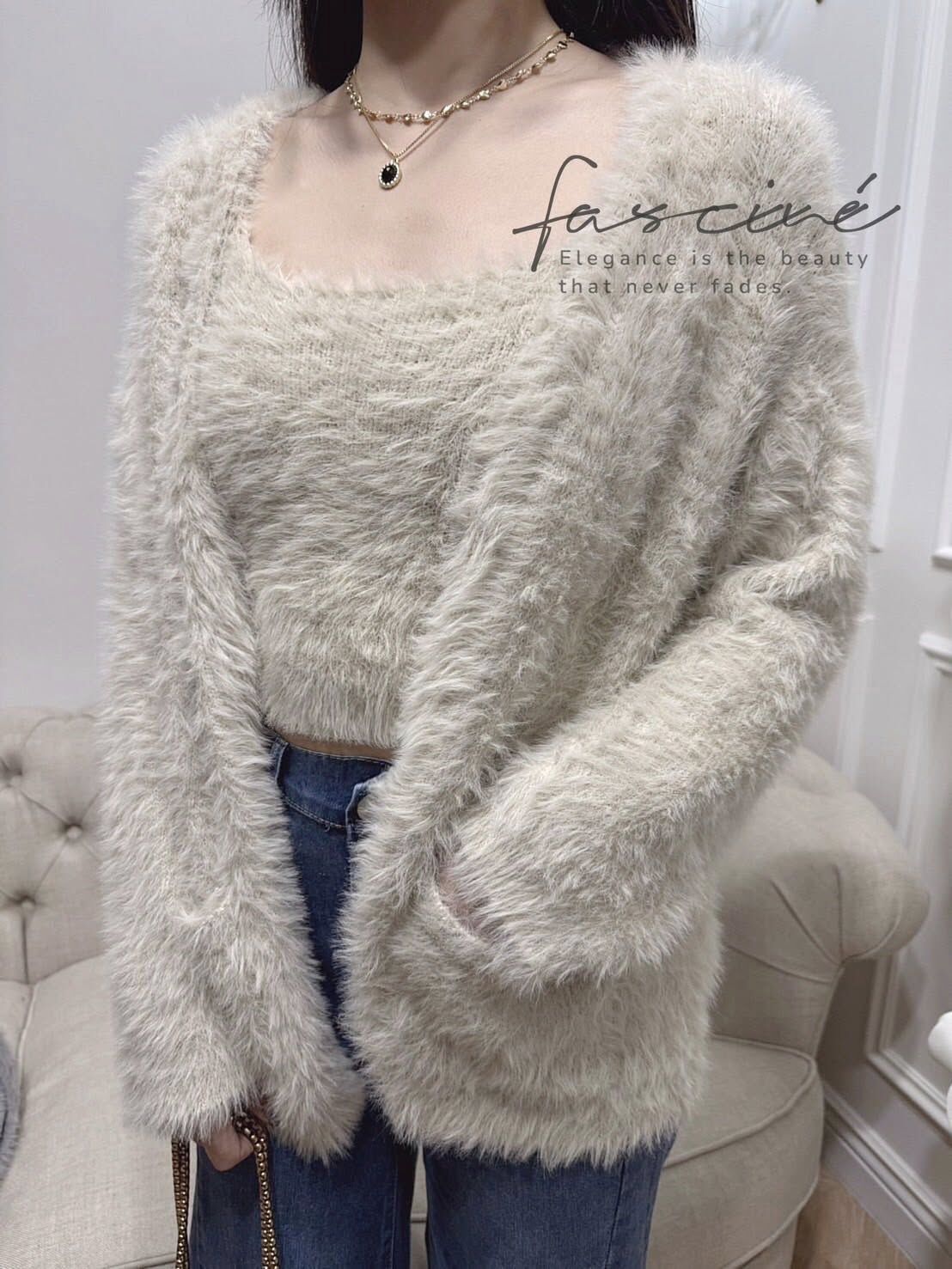 (11T06-25B) 法式名媛小香風毛衣開衫長款外搭軟糯仿貂絨針織外套+短背心(兩件套)$590