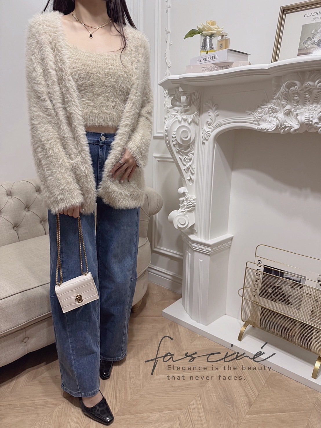 雲朵級仿貂絨,觸感軟糯保暖卻輕盈不厚重,穿上即是溫柔濾鏡 。方領短背心修飾鎖骨與肩頸線,單穿或內搭皆顯瘦不挑身形 。長版開襟配大口袋遮臀顯高,通勤到約會一套搞定的優雅鬆弛感 。