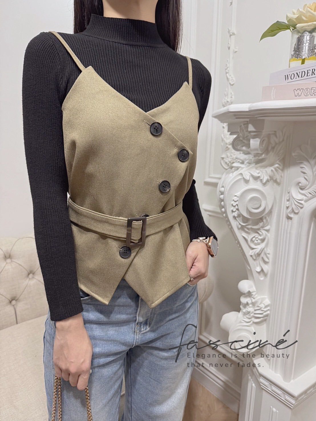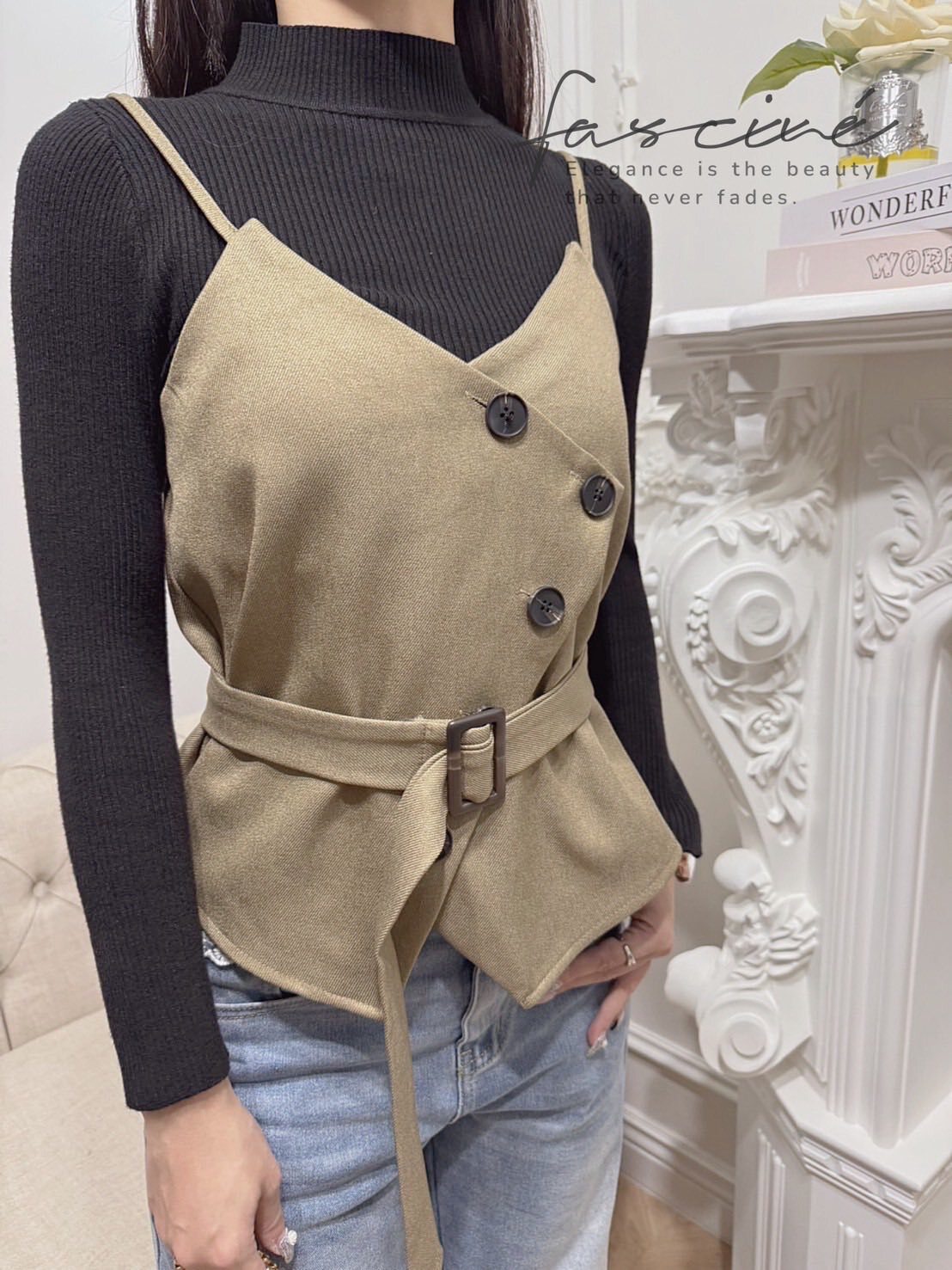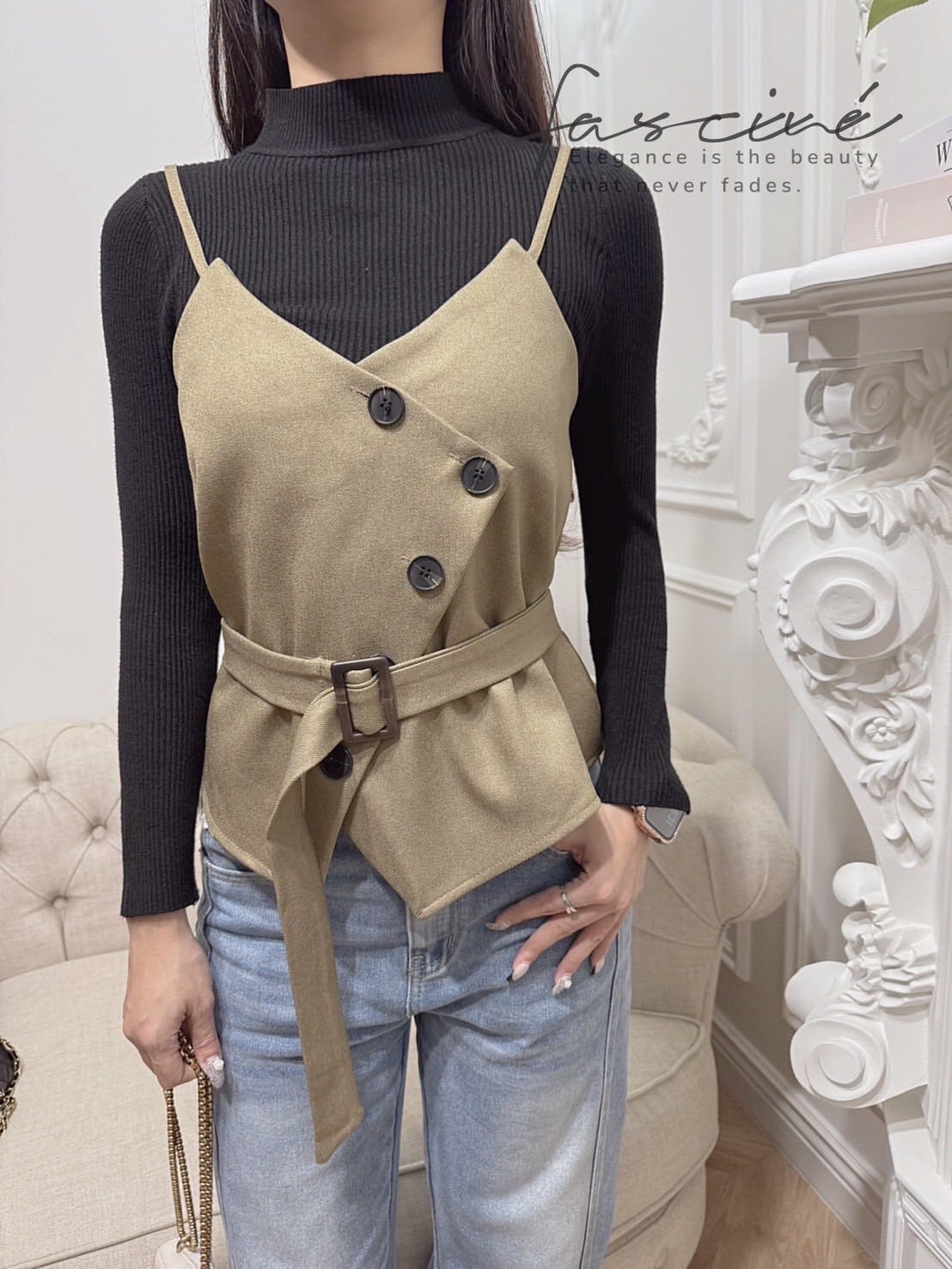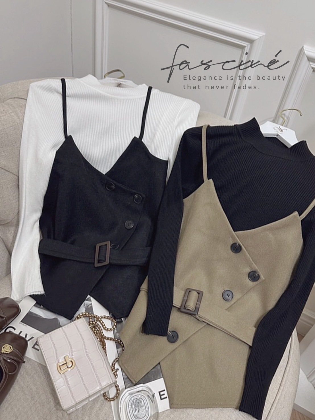 (11T06-25B) 法式輕奢風時尚氣質吊帶馬甲+修身針織上衣(兩件套)