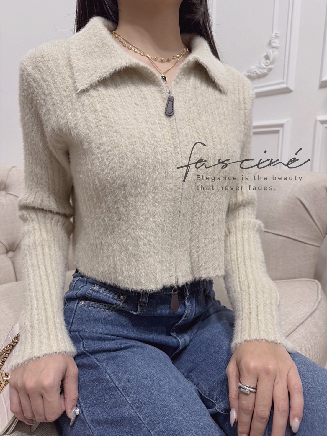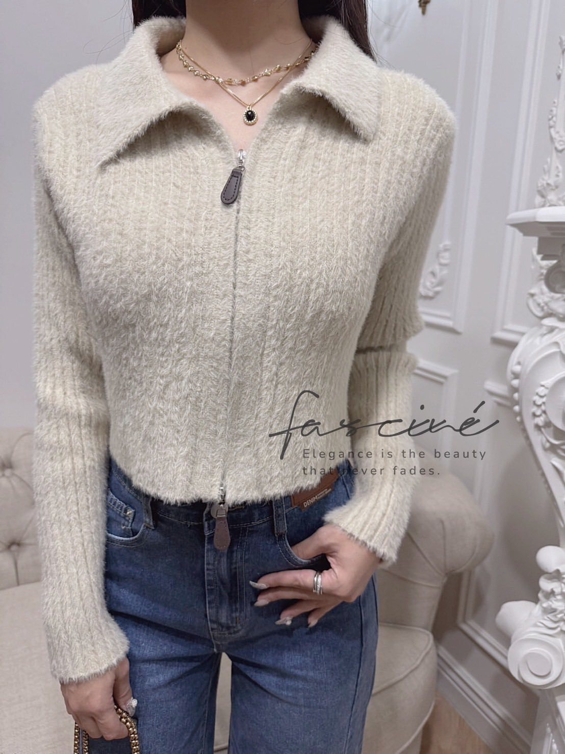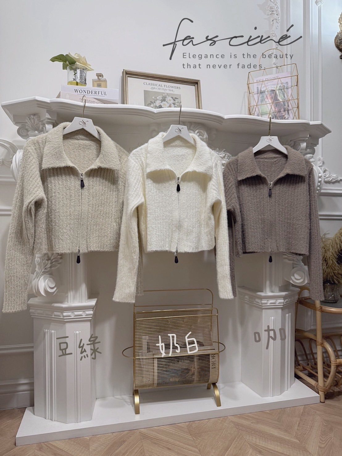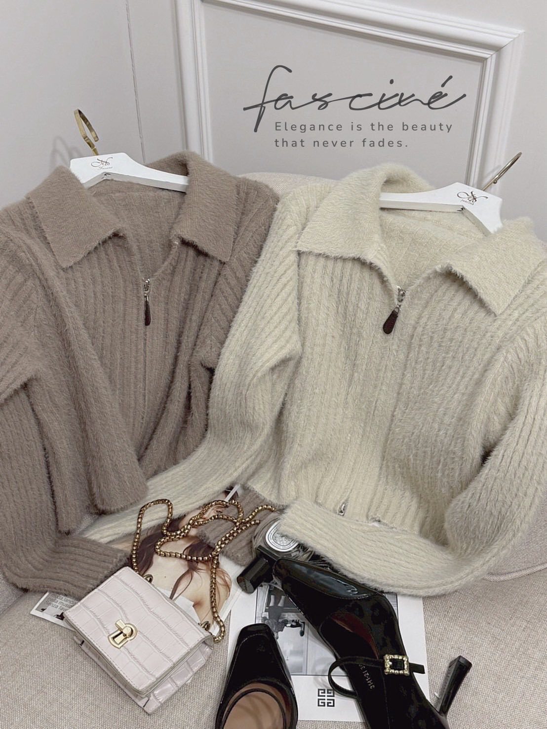 (11T13-25B)法式純色雙頭拉鍊簡約翻領毛衣外套上衣$490