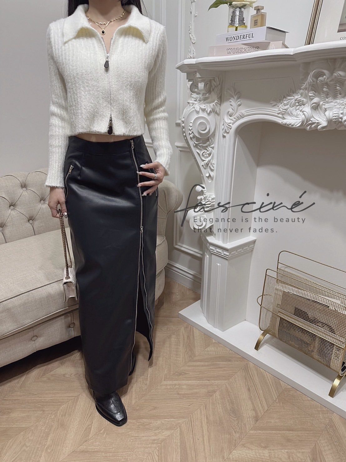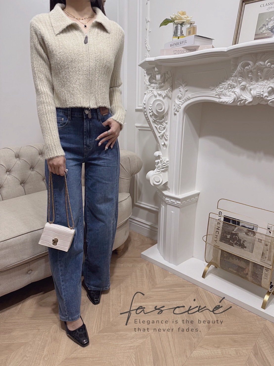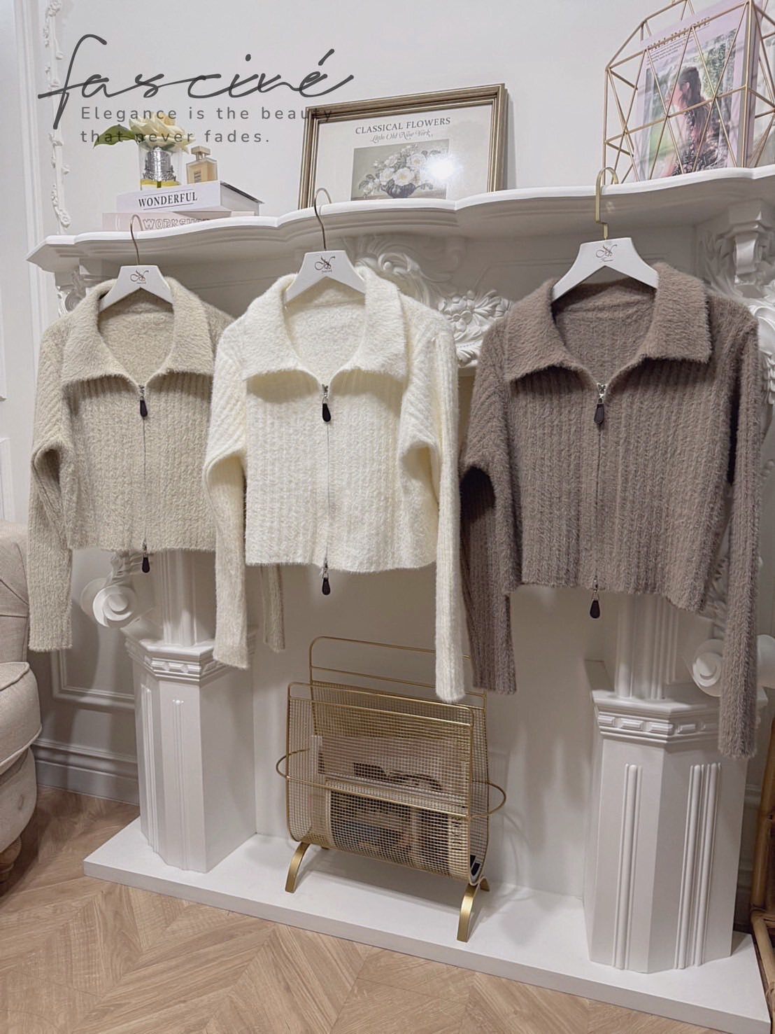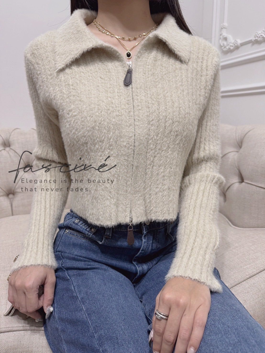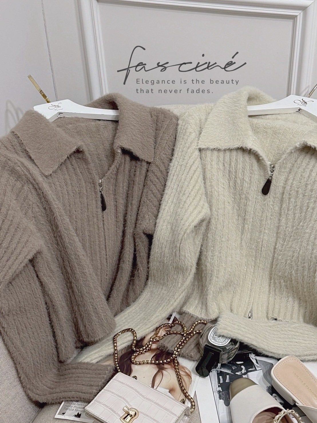(11T13-25B)法式純色雙頭拉鍊簡約翻領毛衣外套上衣$490