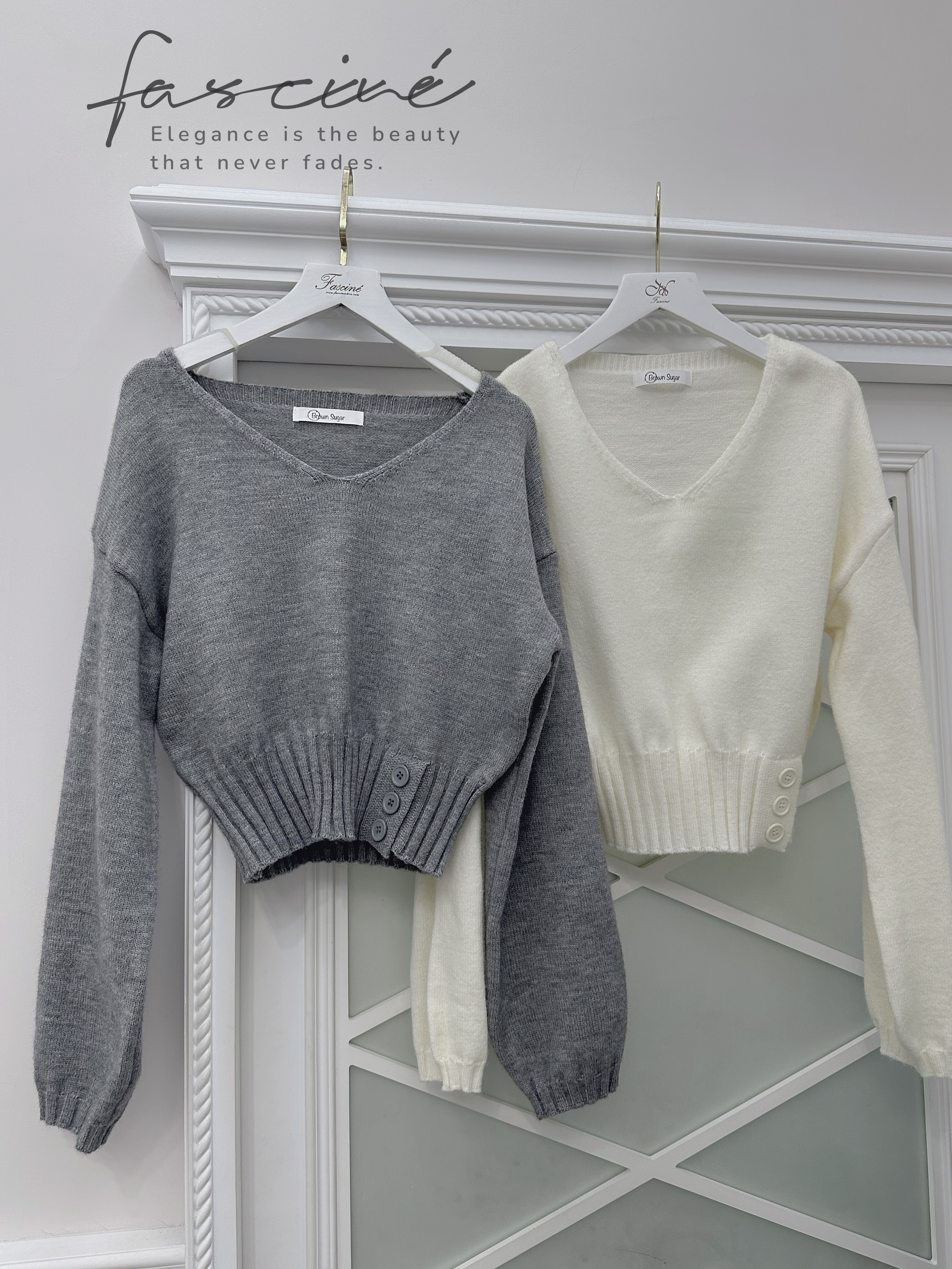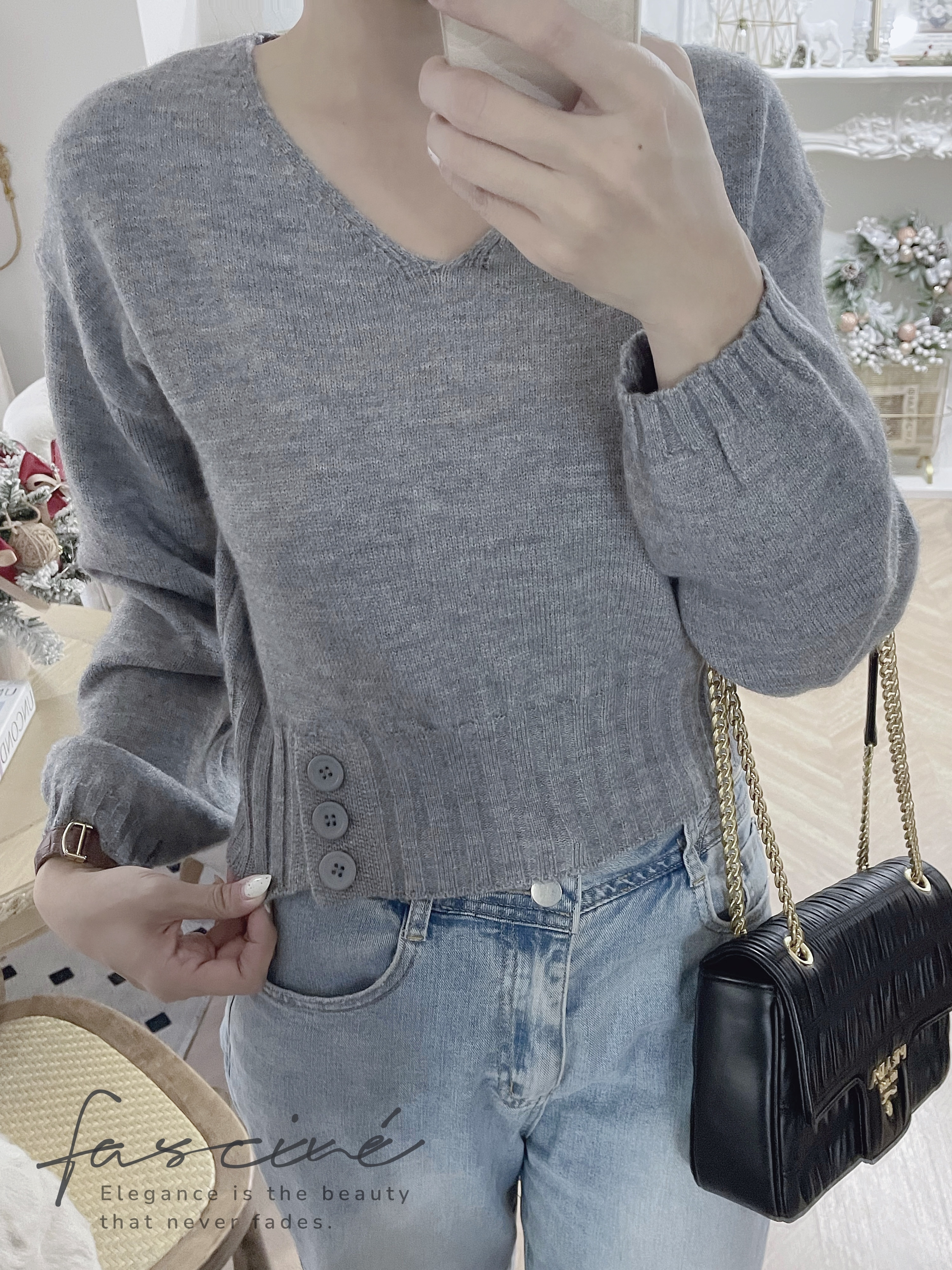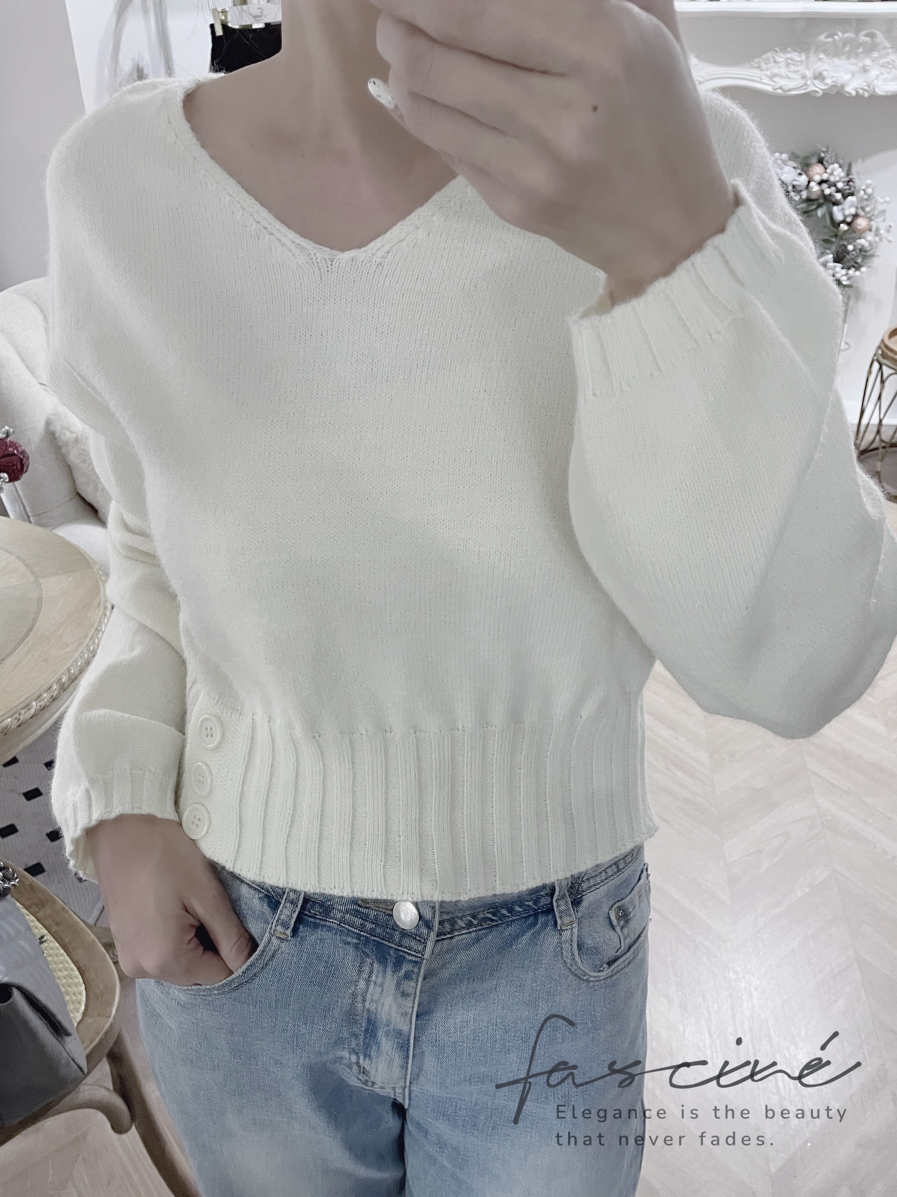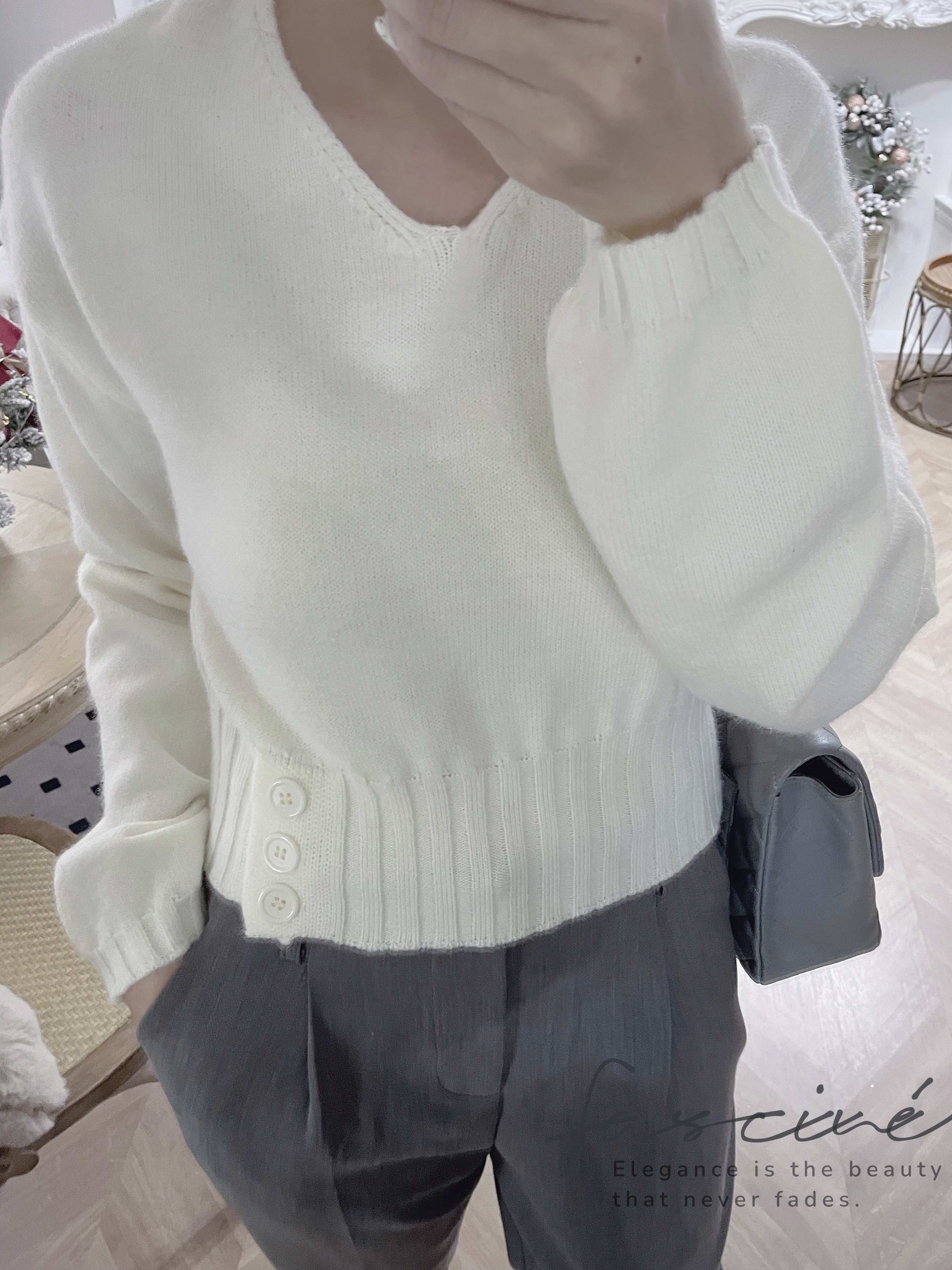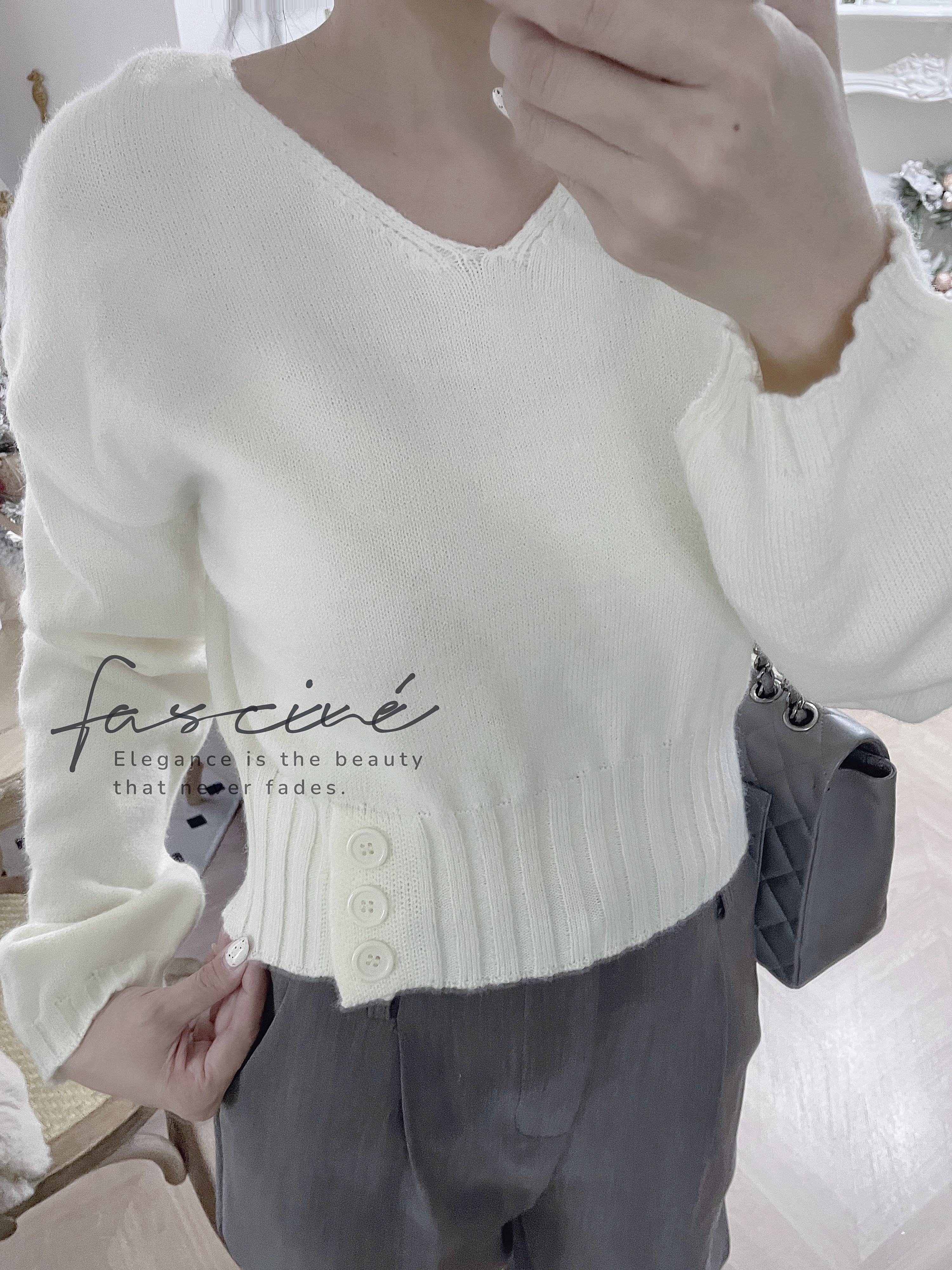 (11T14-24) ⚜️ 法式復古氣質V領收腰顯瘦針織毛衣