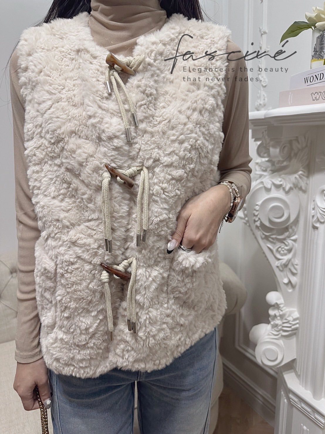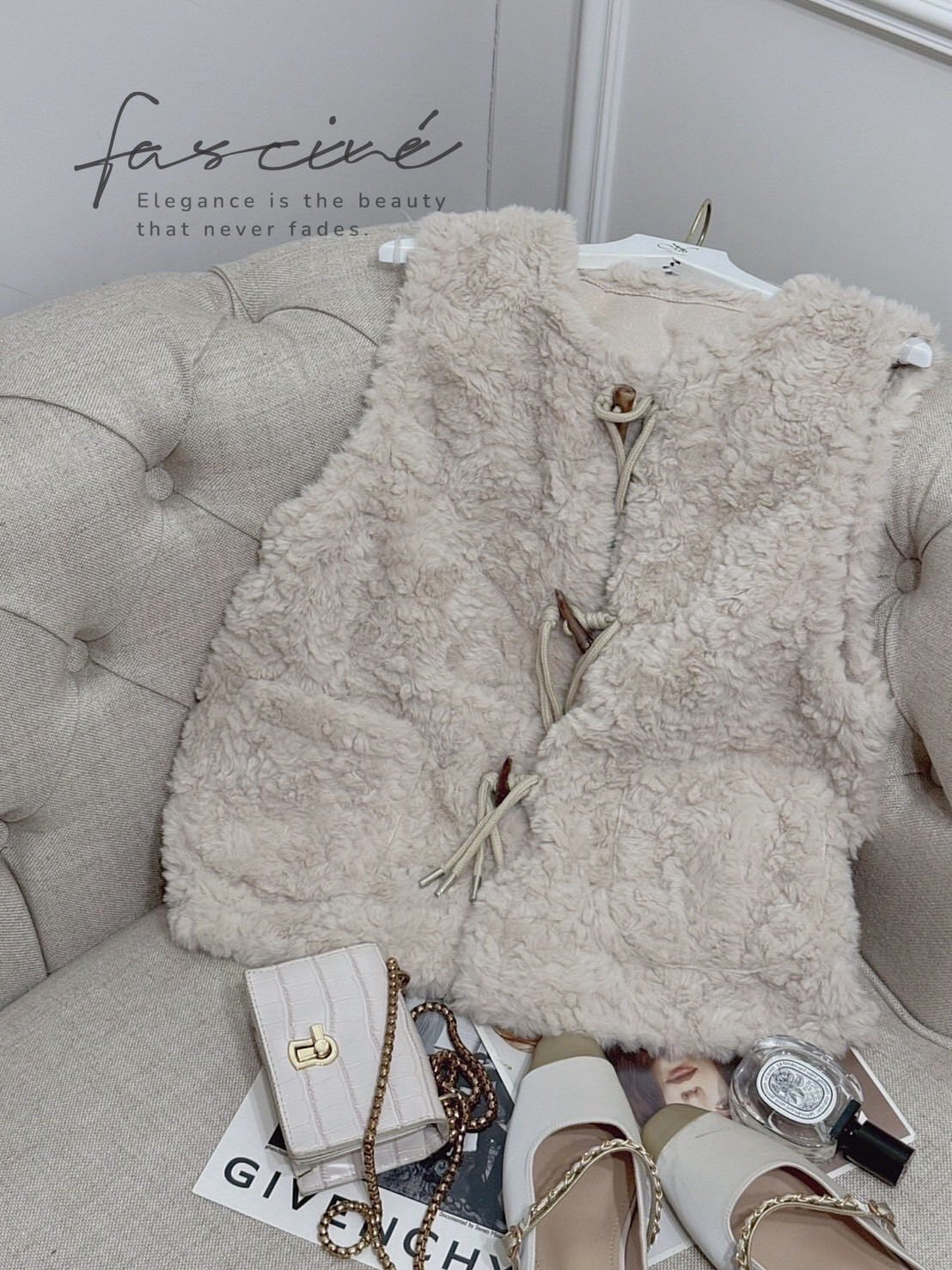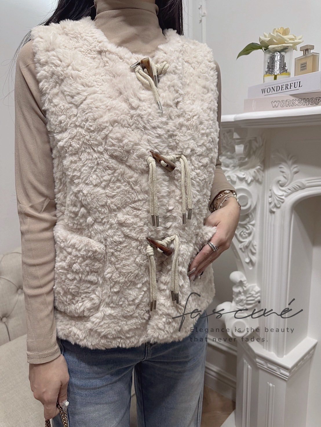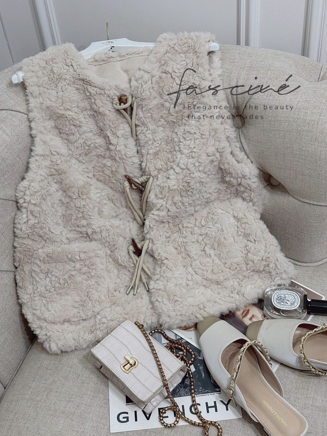 (11T27-25B)法式牛角扣毛絨質感溫暖毛毛背心$550
