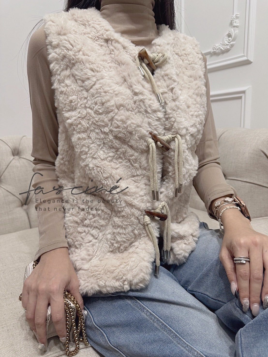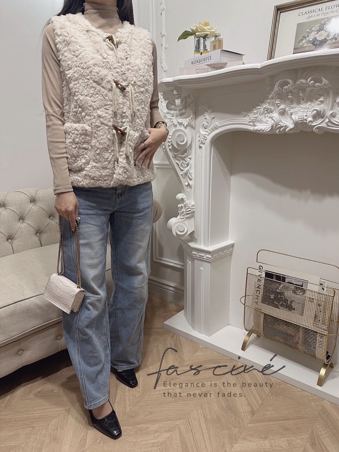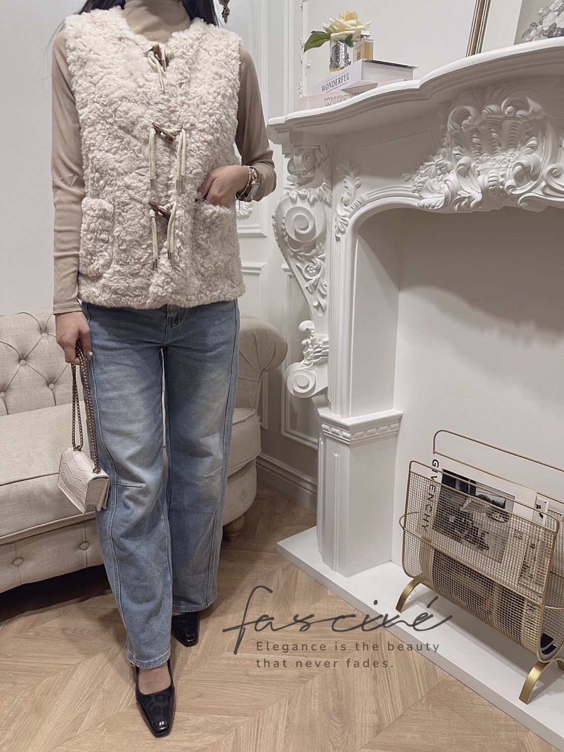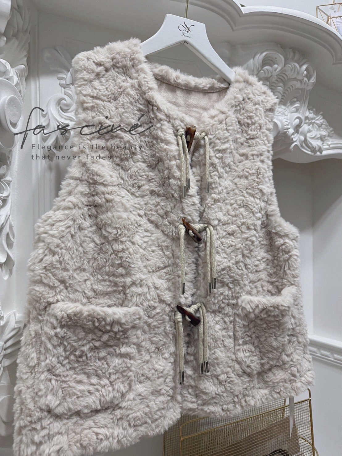 (11T27-25B)法式牛角扣毛絨質感溫暖毛毛背心$550