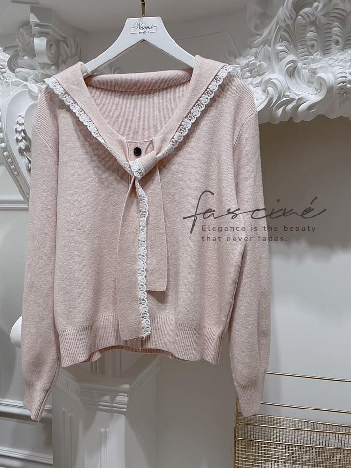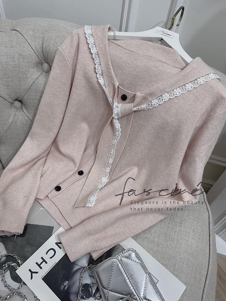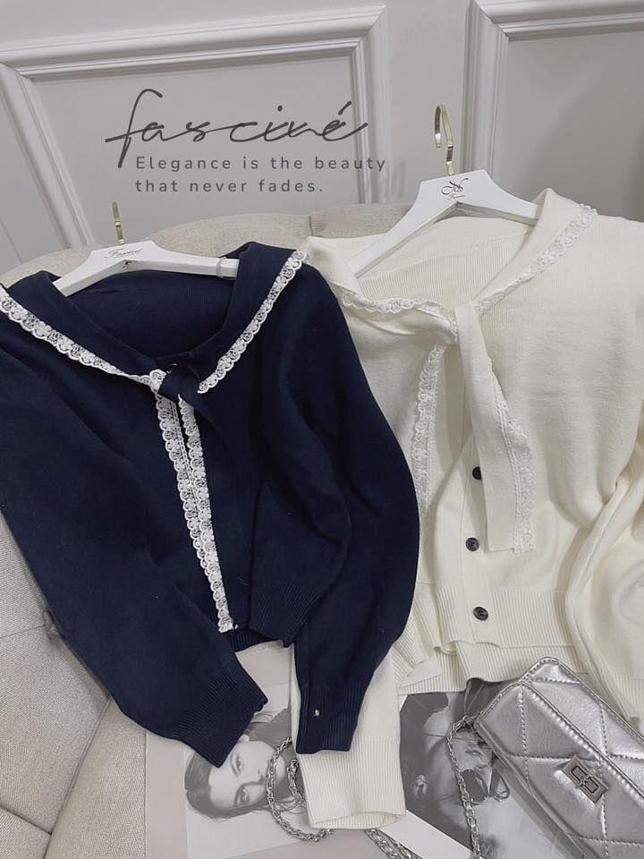 微復古方領結合海軍風翻領設計,沿線一圈細緻花邊蕾絲,轉身就自帶法式甜美濾鏡。前襟蝴蝶結綁帶巧妙拉長比例,單穿當上衣或微開扣當小外套,都能溫柔修飾肩頸線。親膚混紡針織布料帶點厚度卻不厚重,通勤、約會、下午茶一件搞定四季日常。