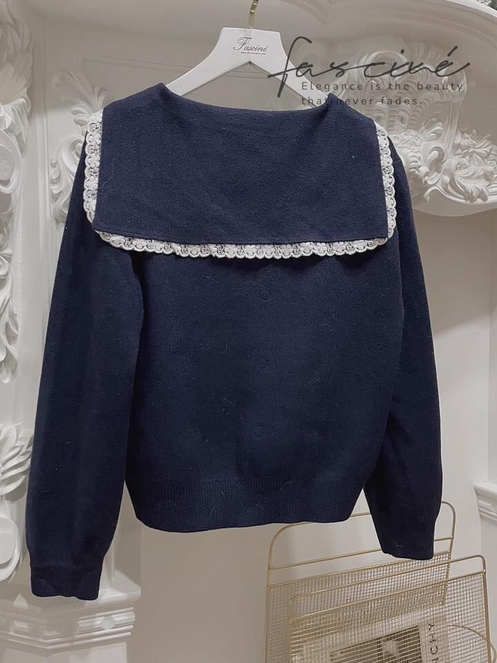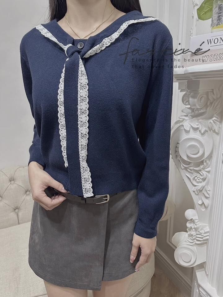 (12T02-25)法式海軍風蕾絲氣質甜美針織上衣$590