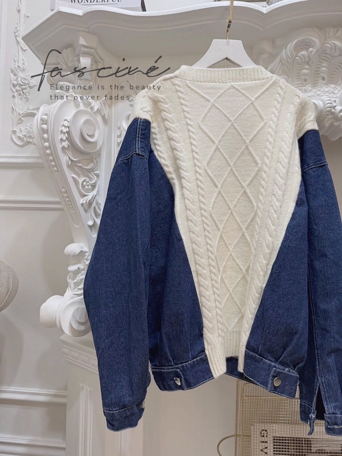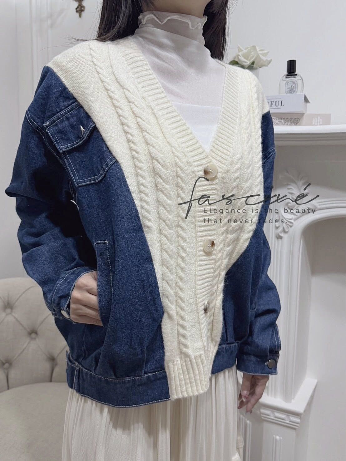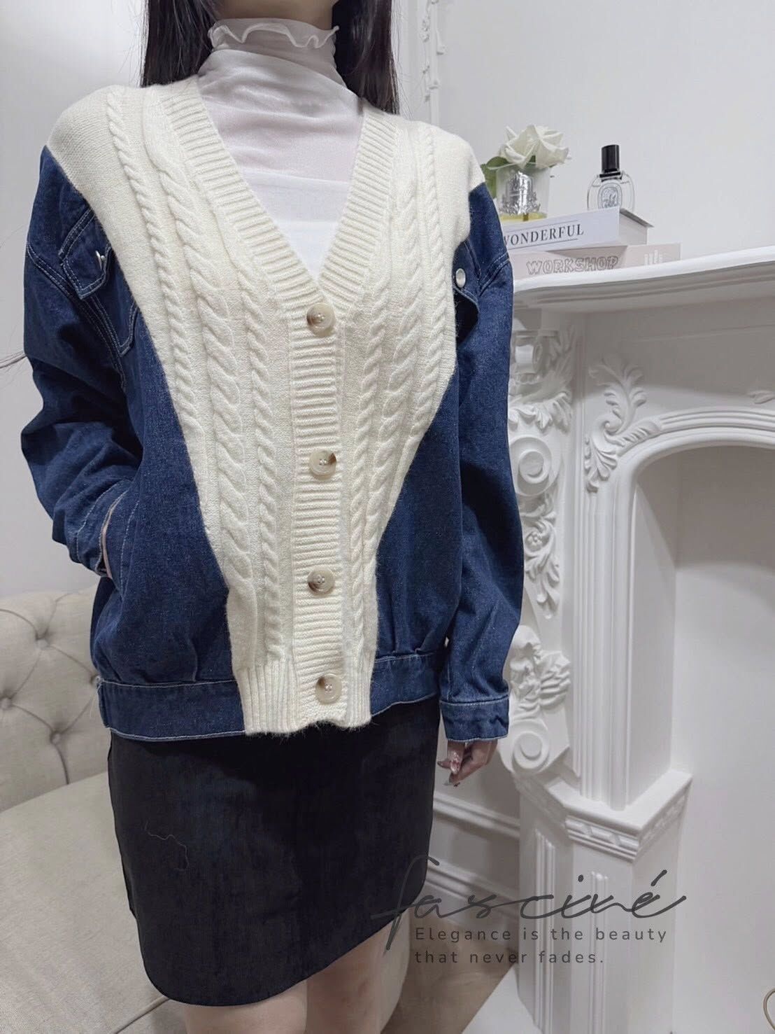 (12T03-25)法式麻花針織牛仔拼接外套$690