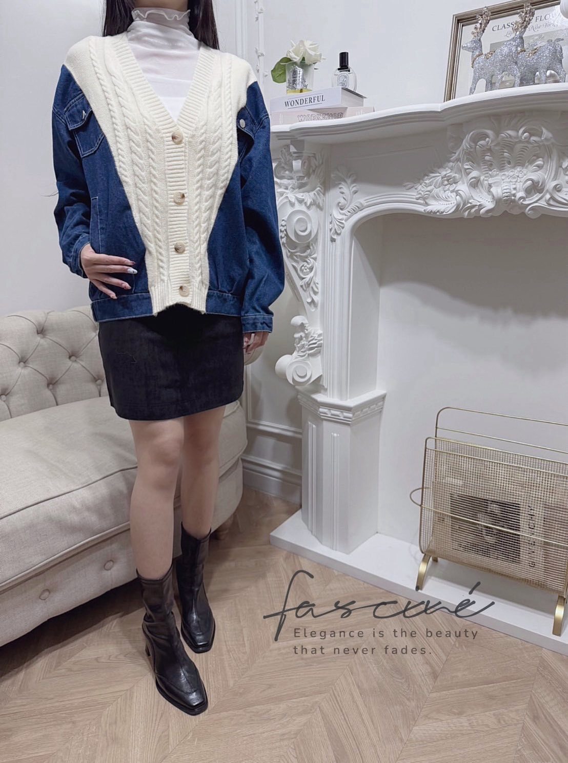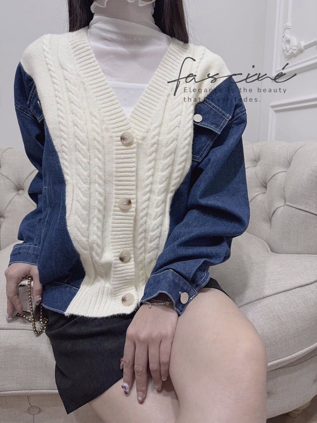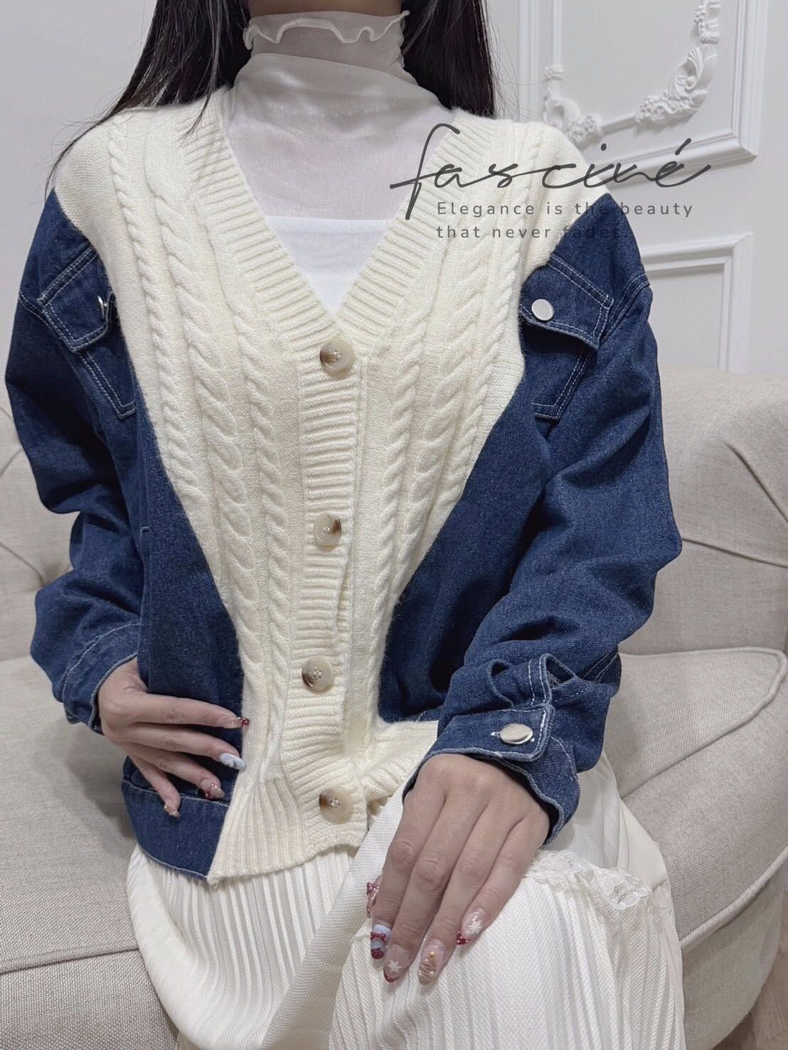 (12T03-25)法式麻花針織牛仔拼接外套$690