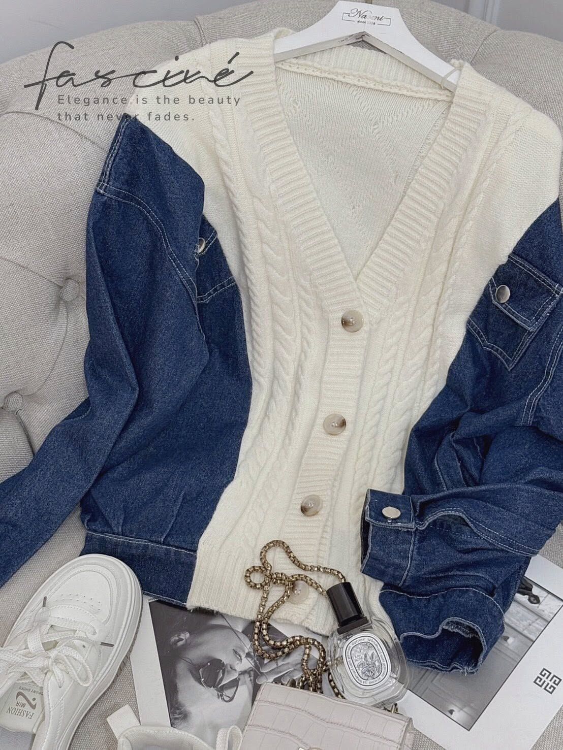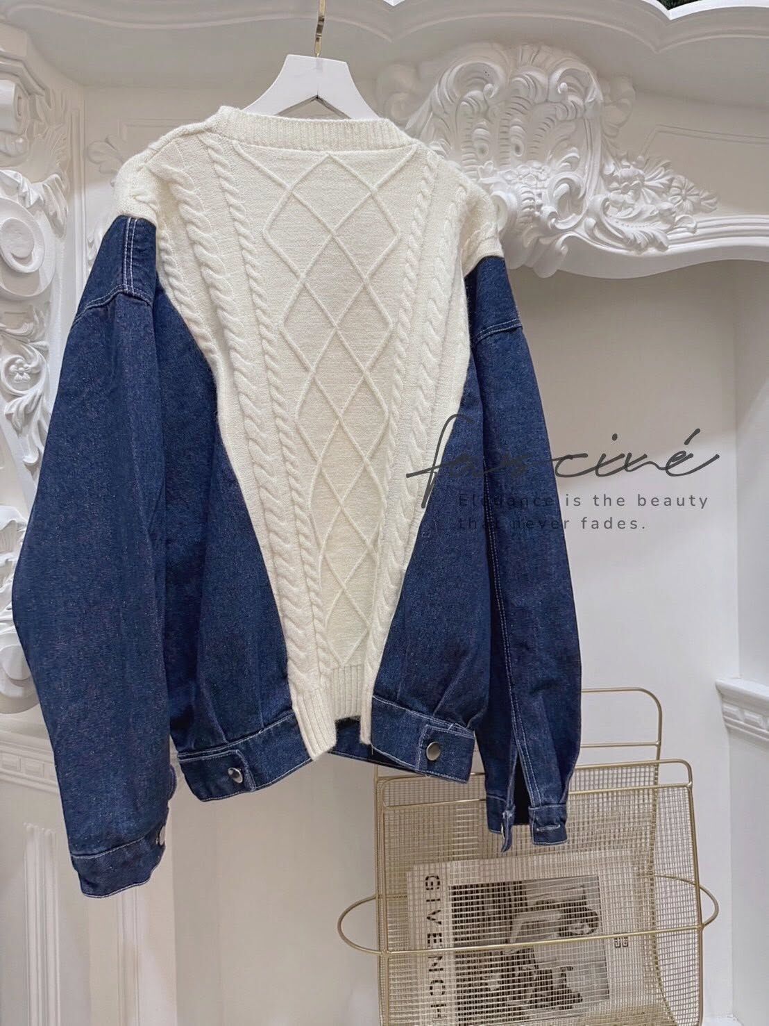 (12T03-25B)法式麻花針織牛仔拼接外套$690