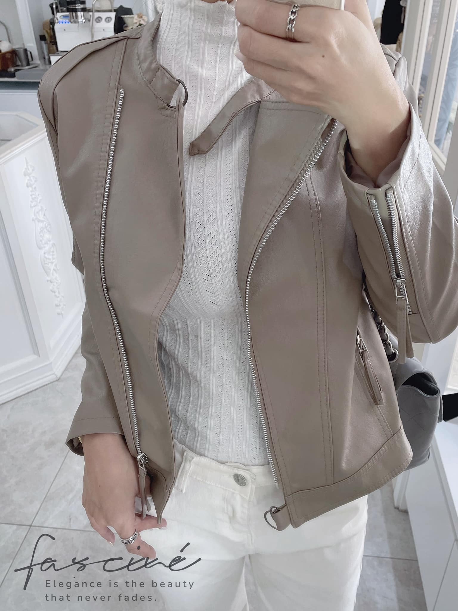 奶茶色秋冬必入帥氣皮外套,此款皮夾克除了版型高級俐落超顯瘦外,值得一提的是採用優質的水洗PU面料,皮質柔軟耐摩不脫皮,防水又防風,是秋冬季節必備款!精選面料很好保養,簡約不簡單,穿上帥氣高級感分!不挑身材和年齡,所有姐妹們放心閉眼入吧!