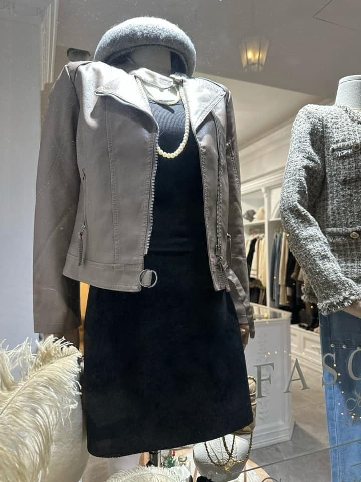 (12T38-24) ⚜️歐美復古修身洋氣設計感立領皮夾克外套