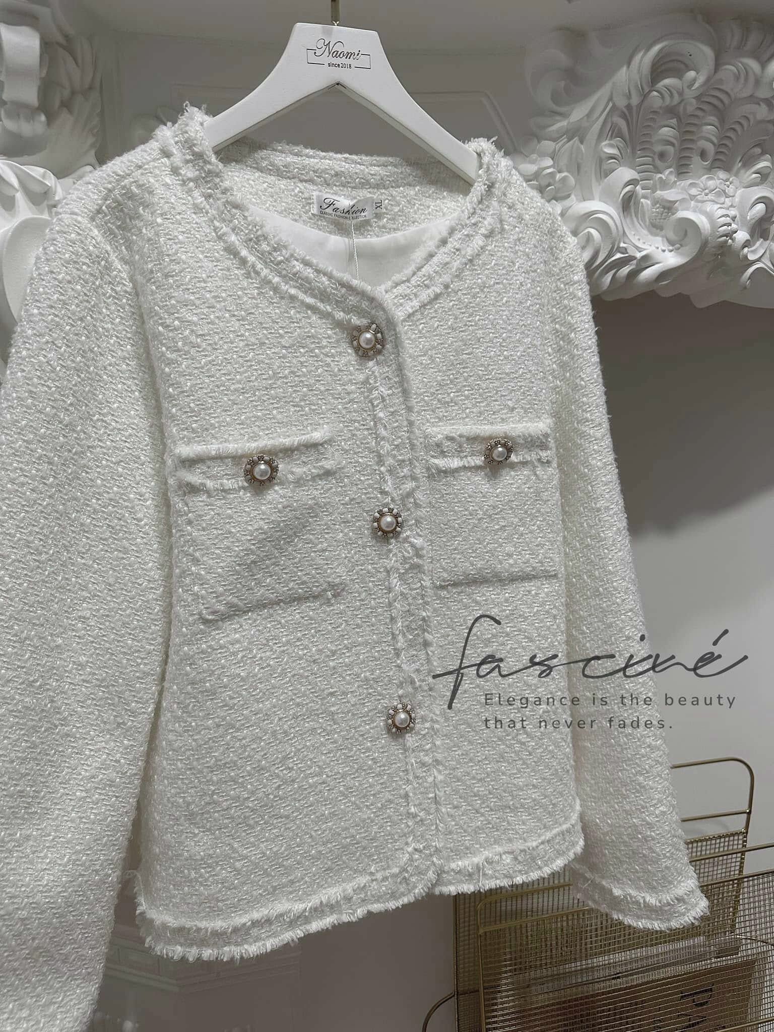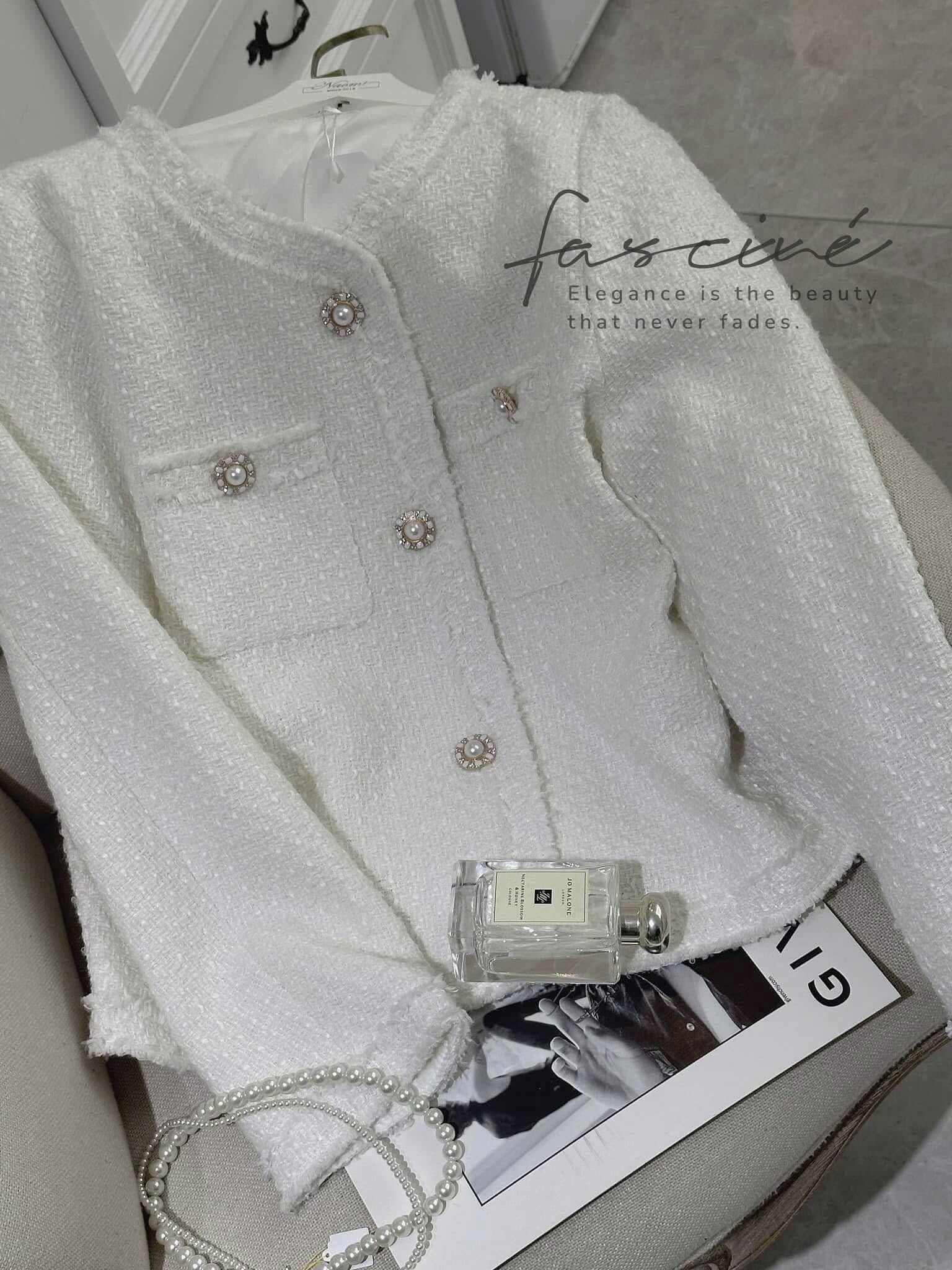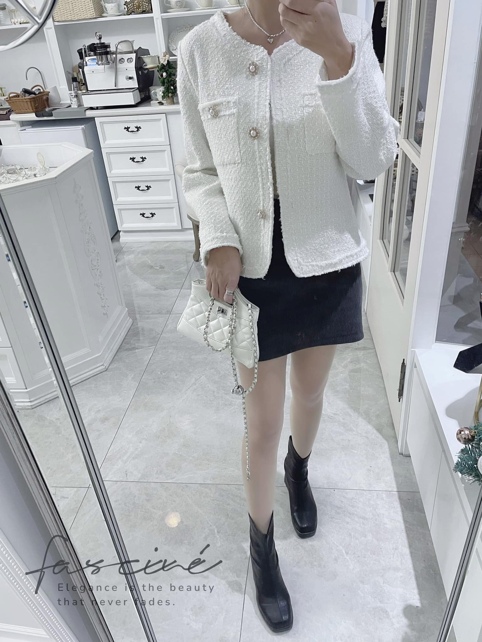 (12T59-24) ⚜️法式小香風白色高級感氣質粗花呢短款外套