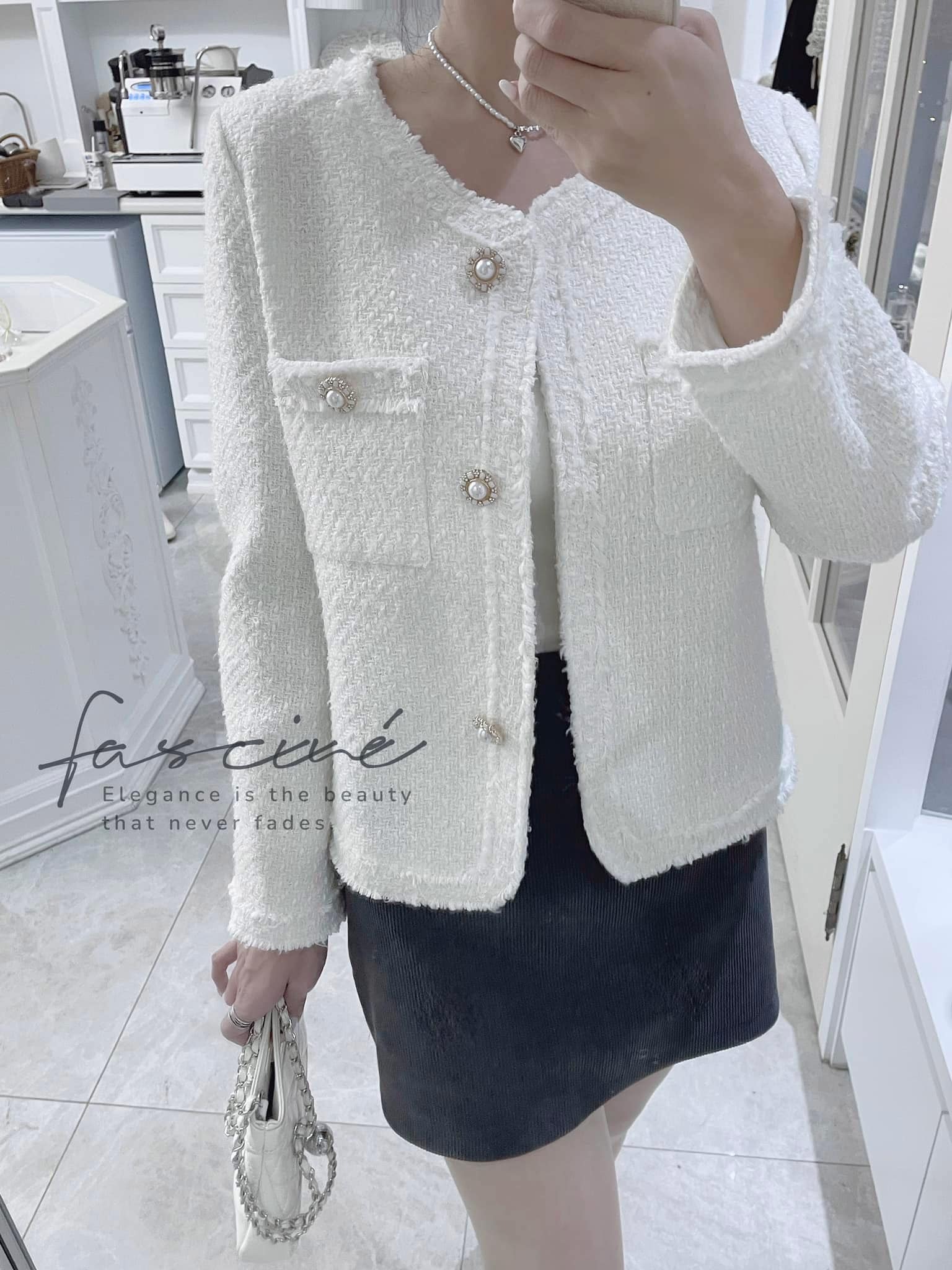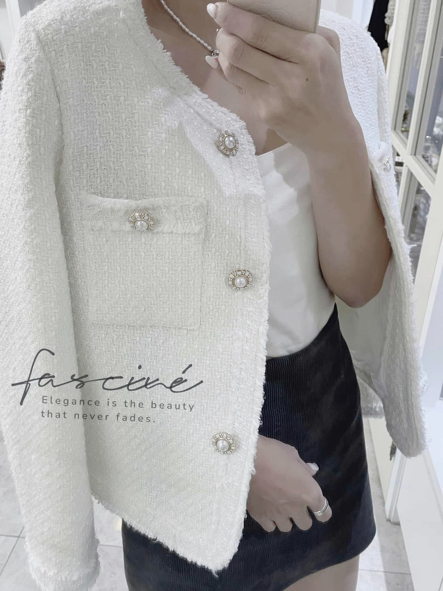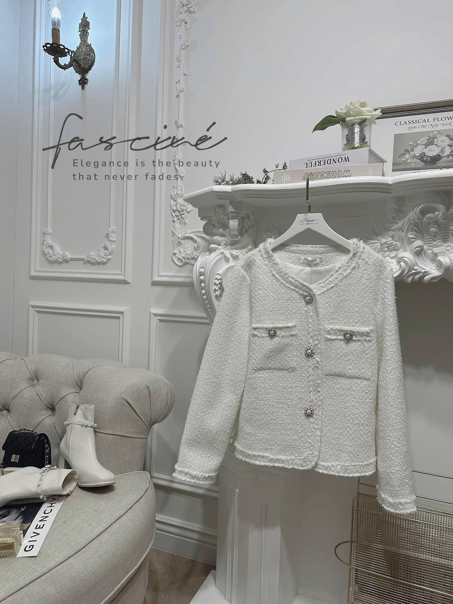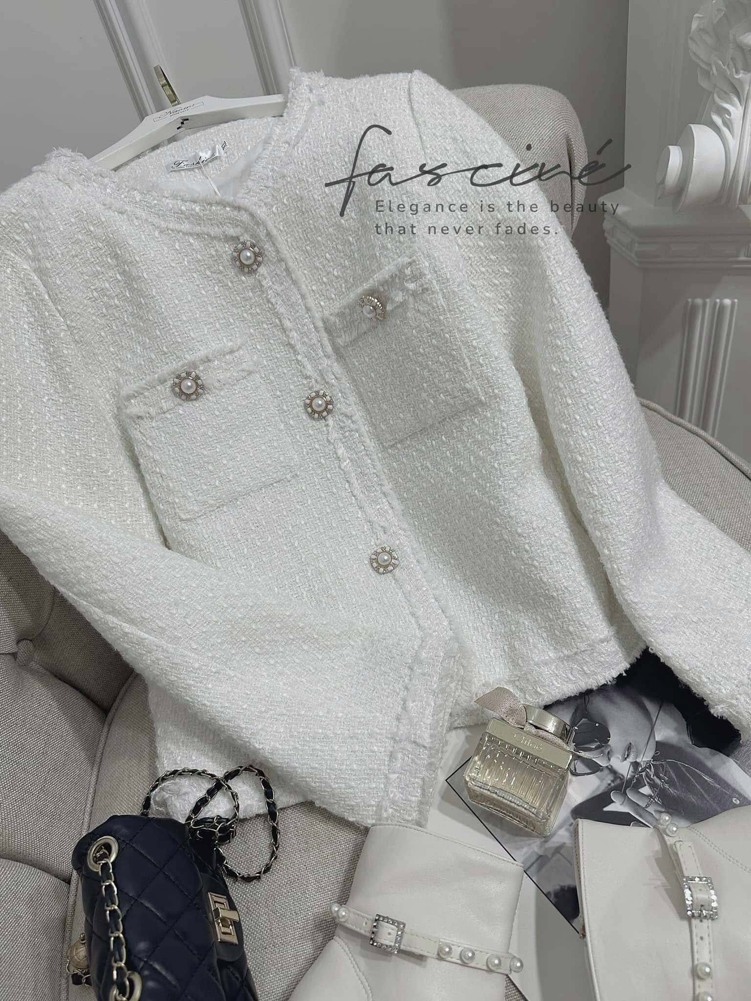 (12T59-24) ⚜️法式小香風白色高級感氣質粗花呢短款外套