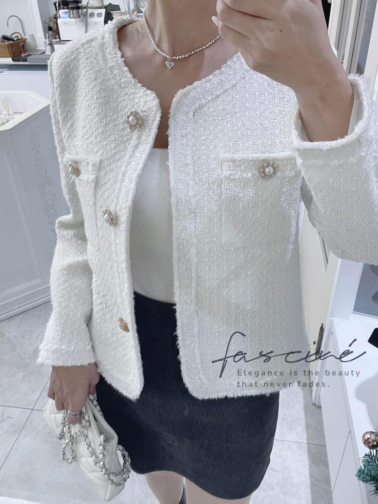今年冬天時尚雜誌最愛的就是小香風白色外套,毛呢交織出的華麗感,穿上身俐落有型又有女人味,不經意就很時髦、自帶高級氣質,經典款式不退流行,超美的白色,時尚界備受寵愛的小香外套,簡約大方搭配裙裝、牛仔褲非常適合。