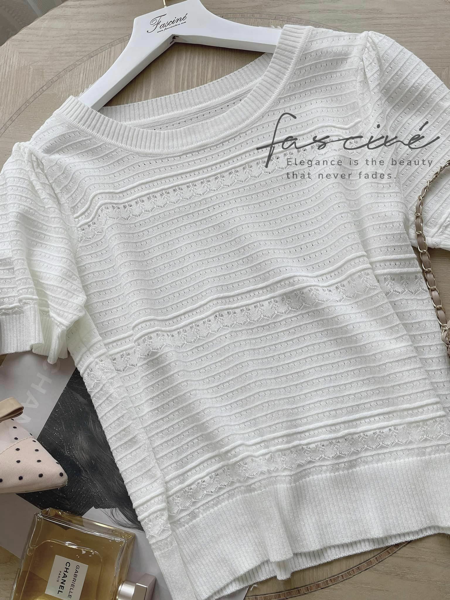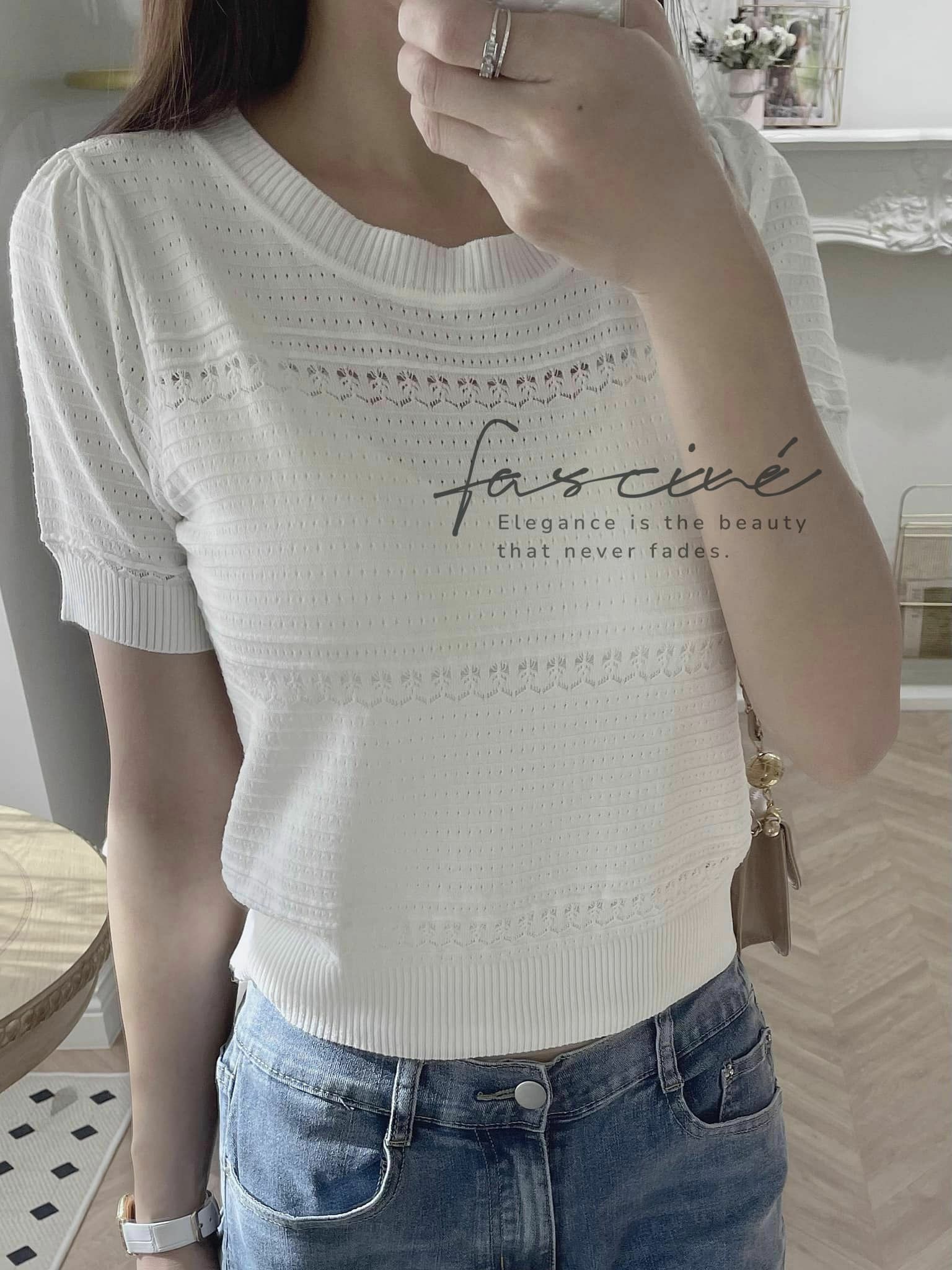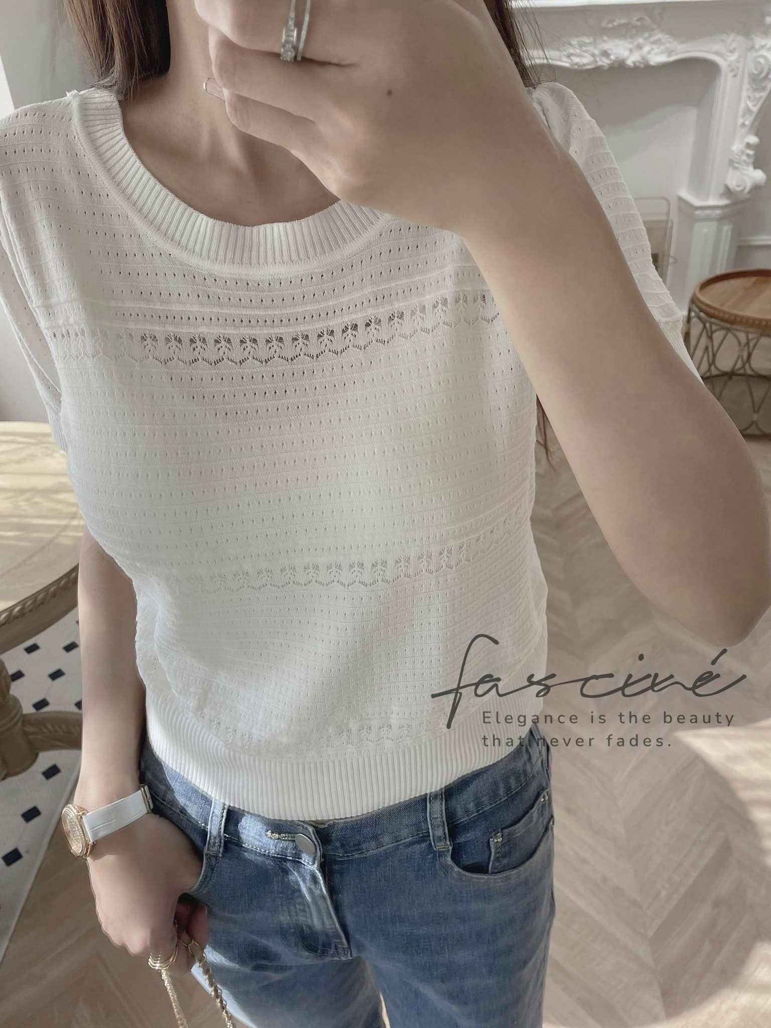 (5T13-23) ⚜️ 法式時尚鏤空俐落優雅針織上衣