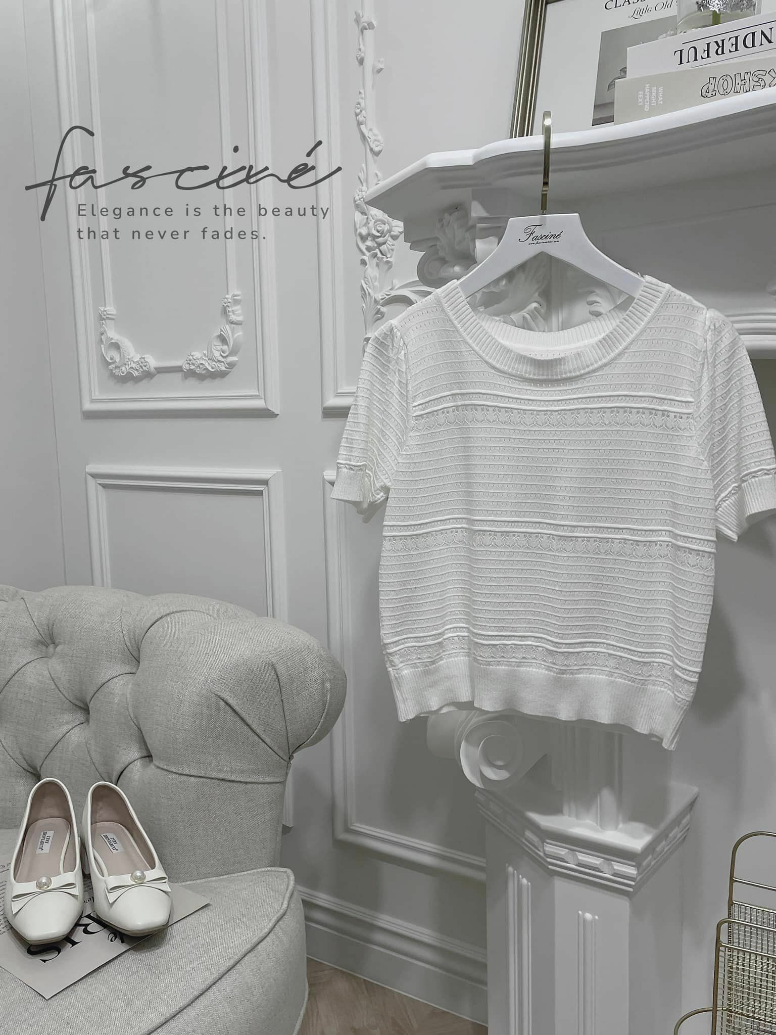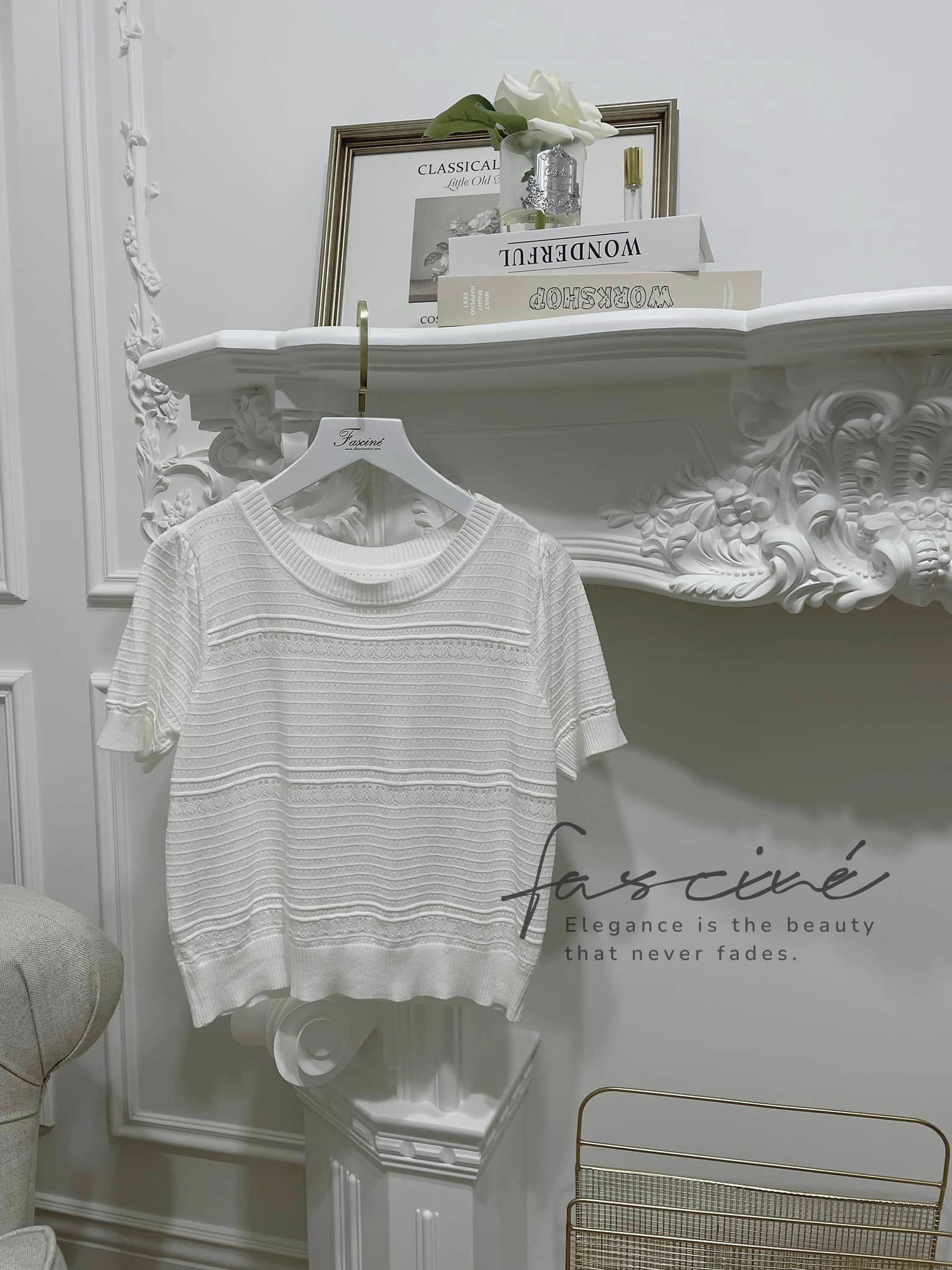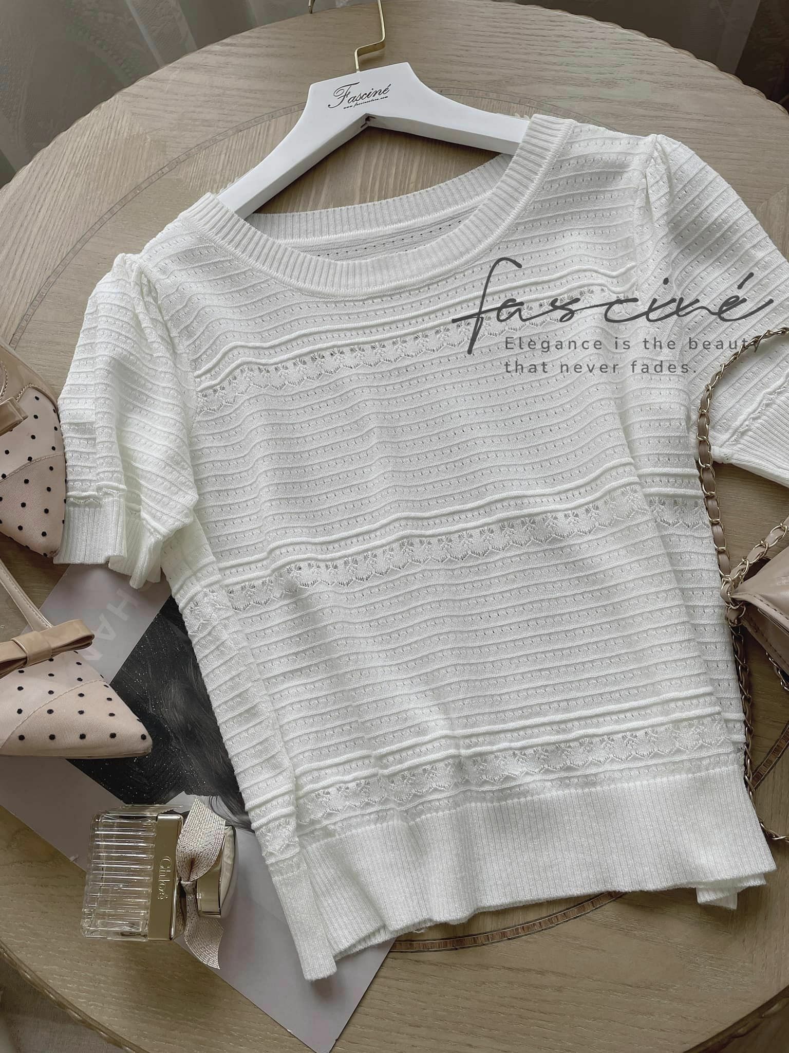 (5T13-23) ⚜️ 法式時尚鏤空俐落優雅針織上衣
