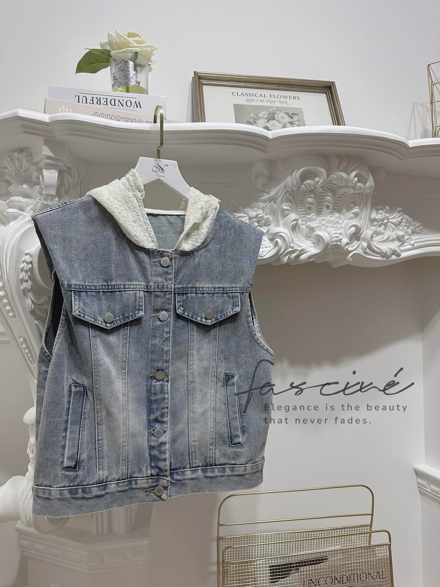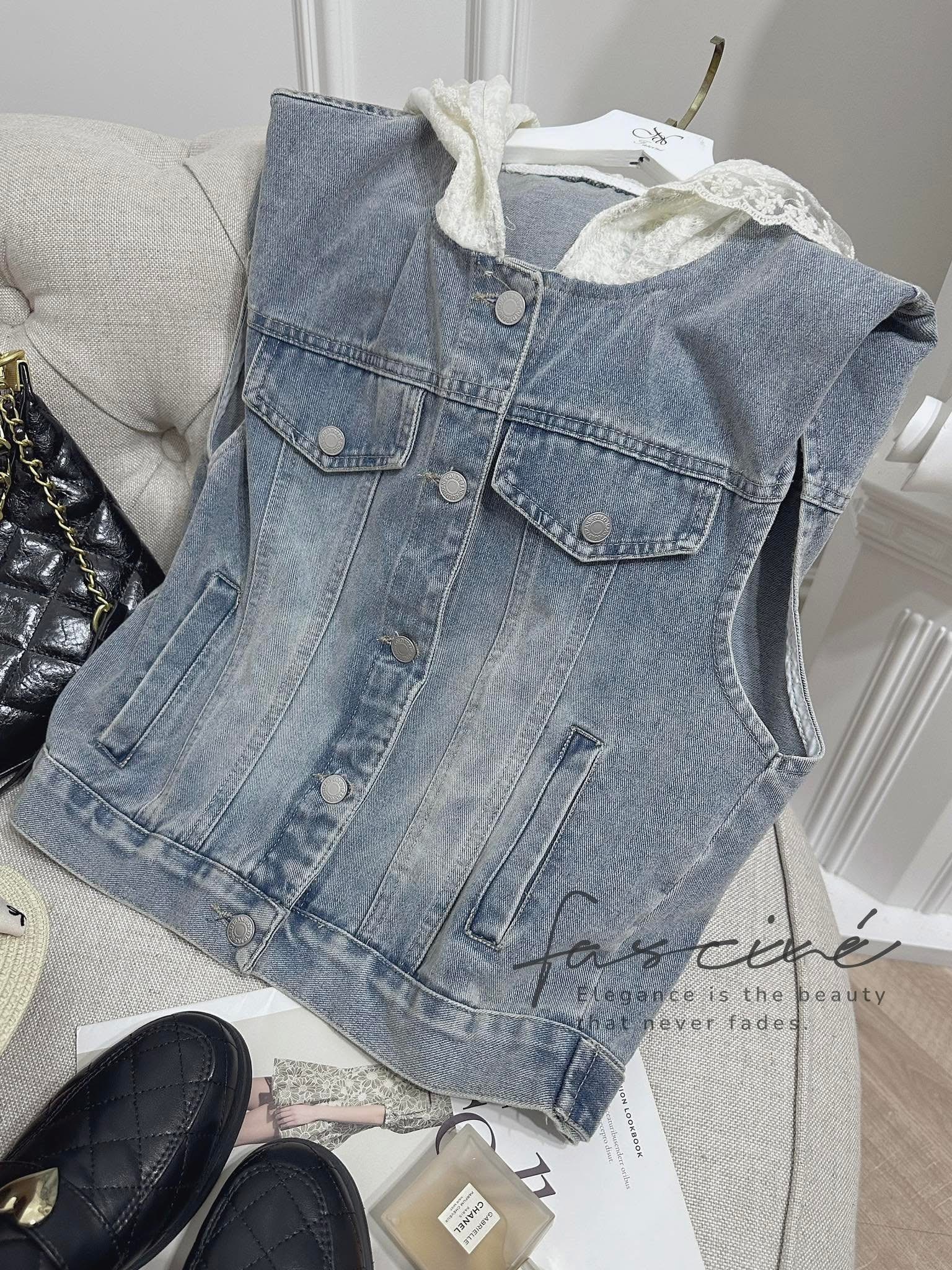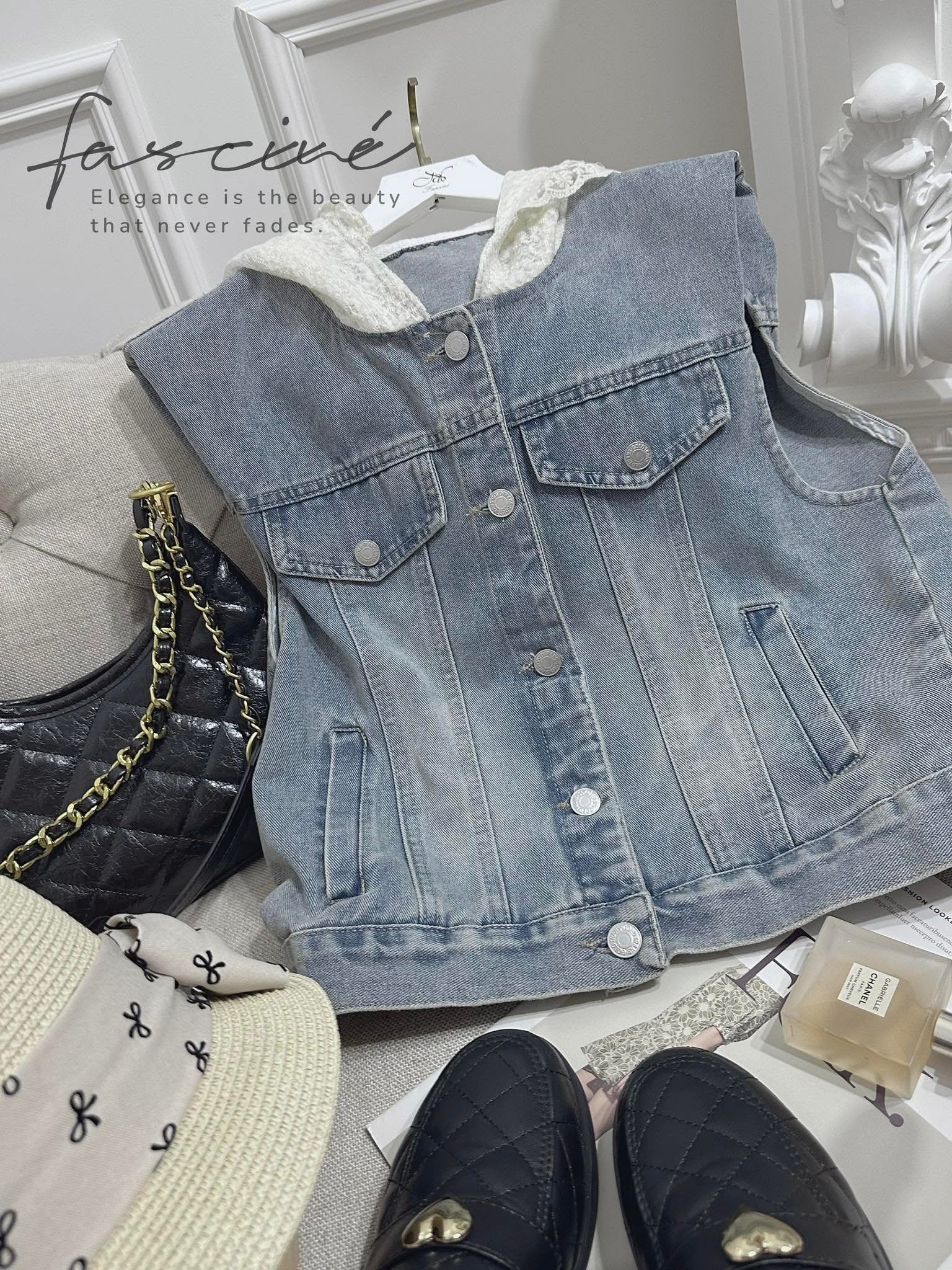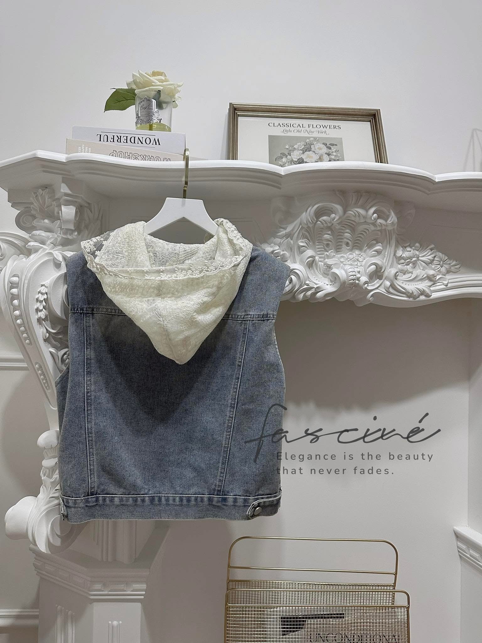 現貨!!!✨ 𝒩𝑒𝓌 𝒜𝓇𝓇𝒾𝓋𝒶𝓁 ✨ (04T03-25) 💙 法式蕾絲拼接牛仔連帽百搭背心 💙