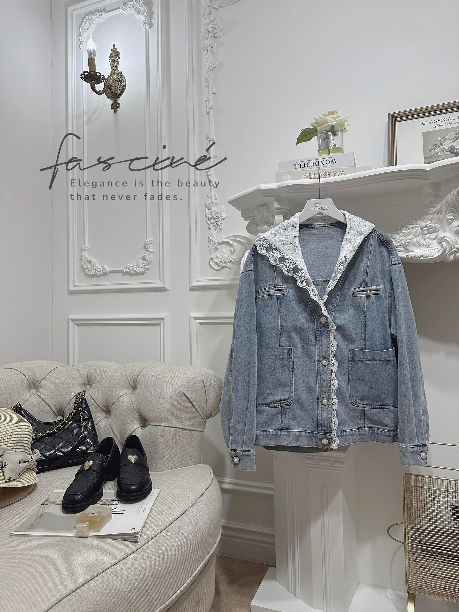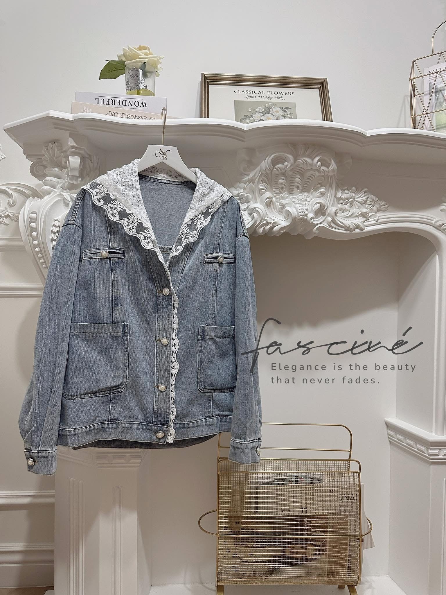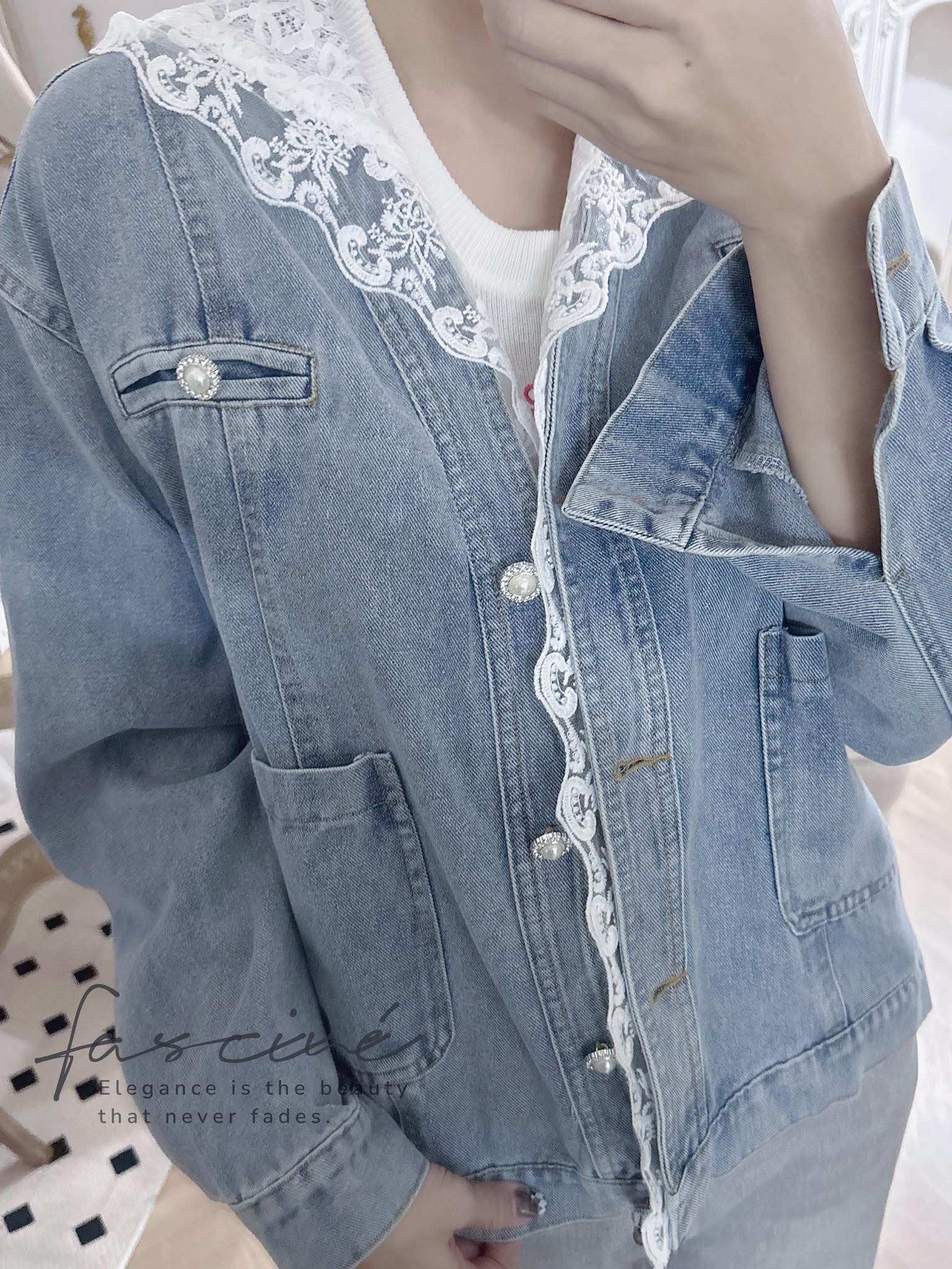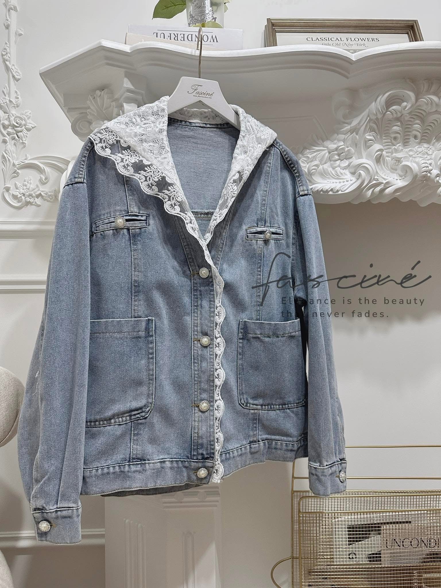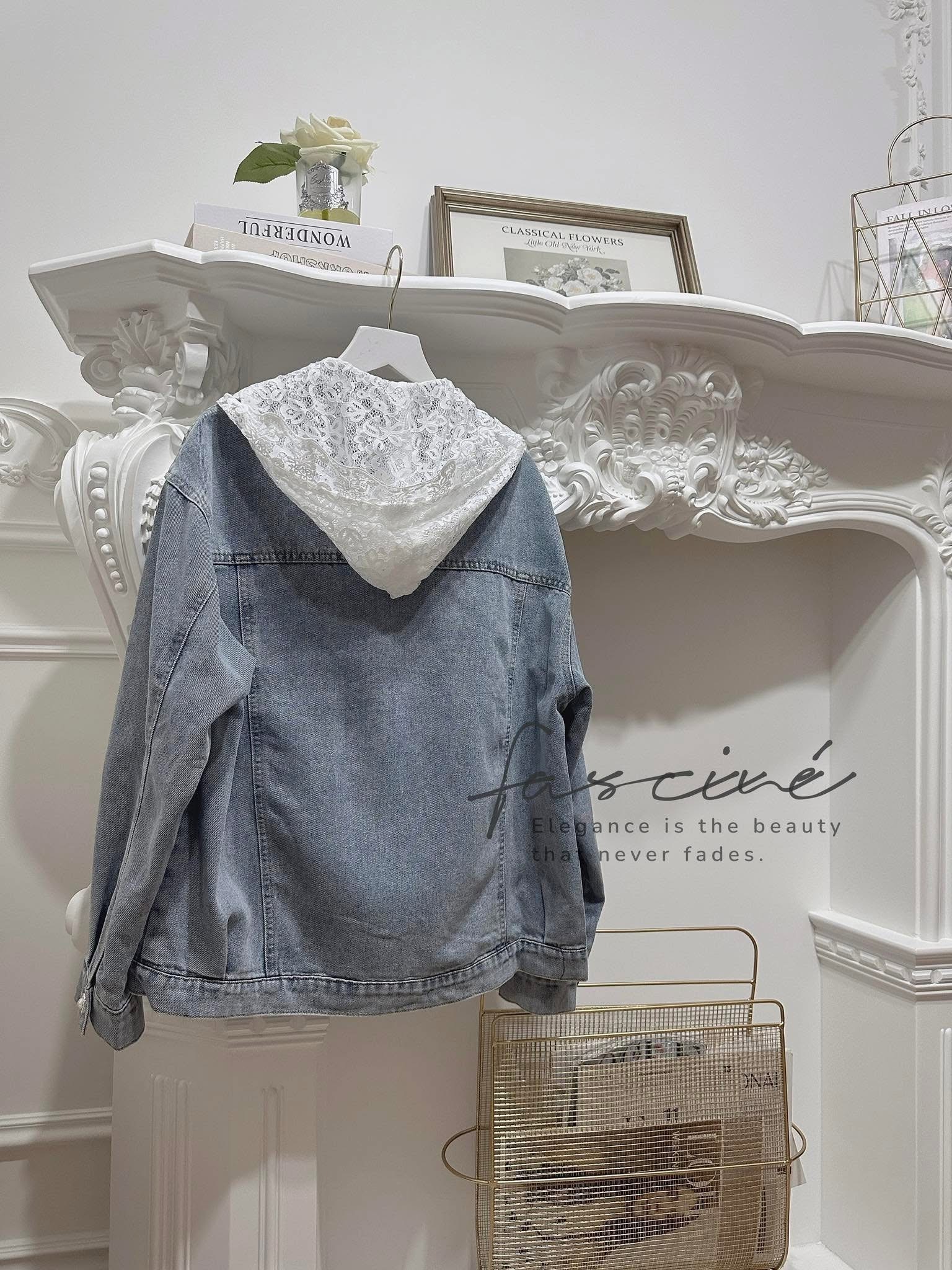 現貨!!!✨𝒩𝑒𝓌 𝒜𝓇𝓇𝒾𝓋𝒶𝓁✨ (03T30-25) 法式蕾絲拼接連帽顯瘦百搭休閒牛仔薄外套