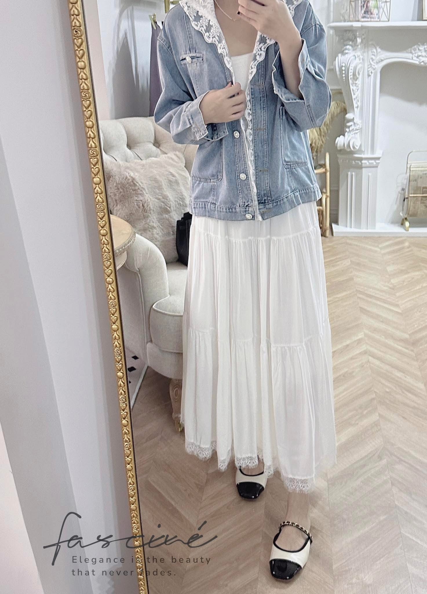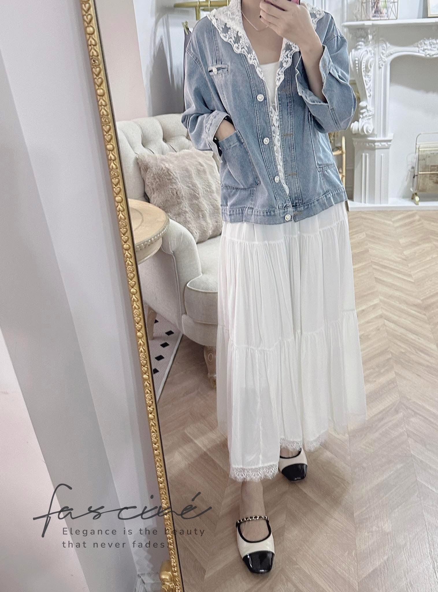 ✔ 材質:牛仔 + 蕾絲