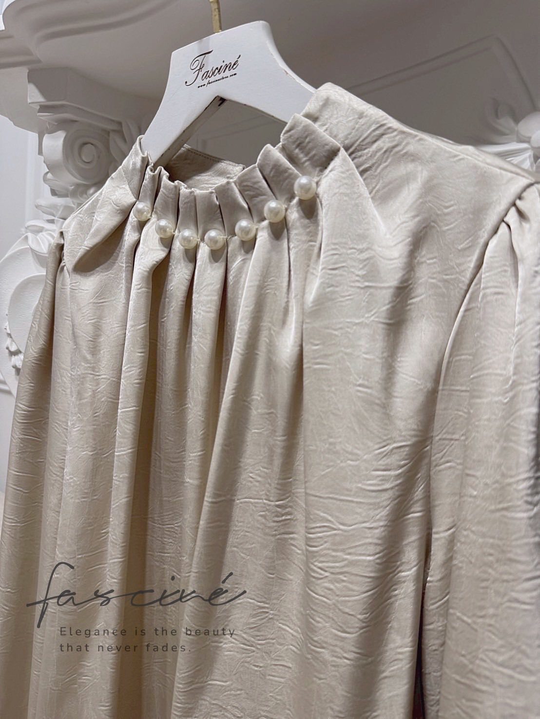 如同巴黎街頭的自在穿梭,這款法式珍珠立領上衣,用一抹極簡又細膩的時髦線條擄獲妳的心。領口的珍珠扣點綴出女性柔美與高級氛圍,獨特壓紋質料混紡,質感輕盈不失挺度,帶來細膩光澤感,舉手投足都散發自信魅力。寬鬆剪裁設計巧妙修飾身型,無論單穿或內搭都能展現層次氣場,引領秋冬時尚焦點。兩色可選,香檳金純淨優雅、黑色神秘百搭。