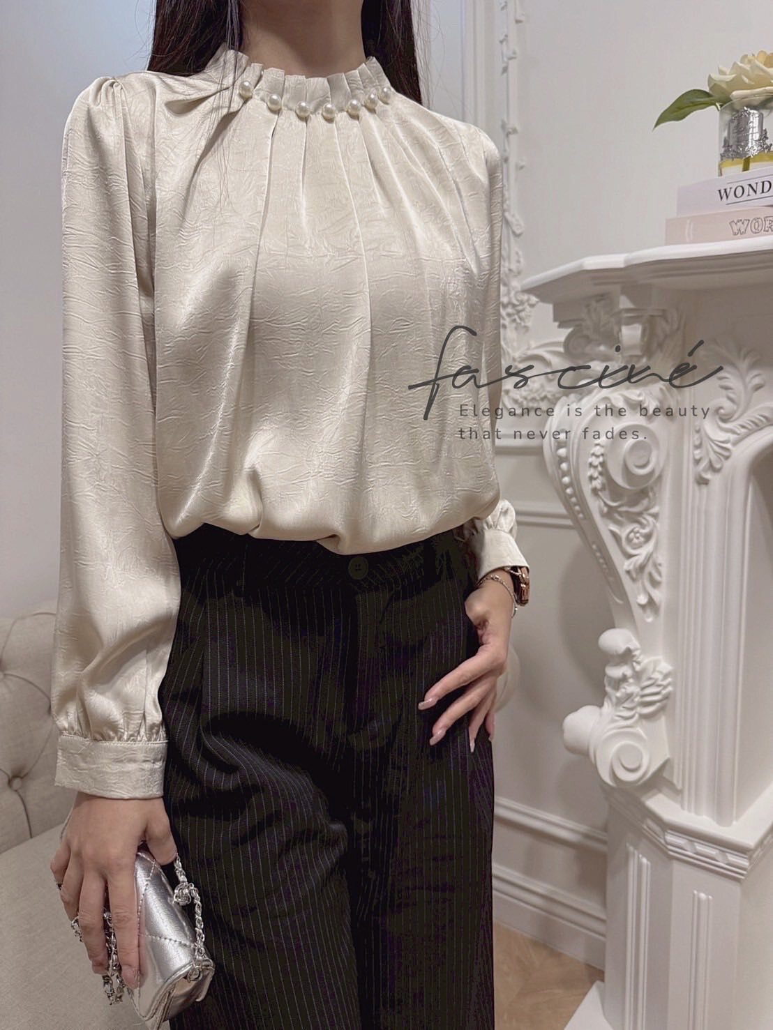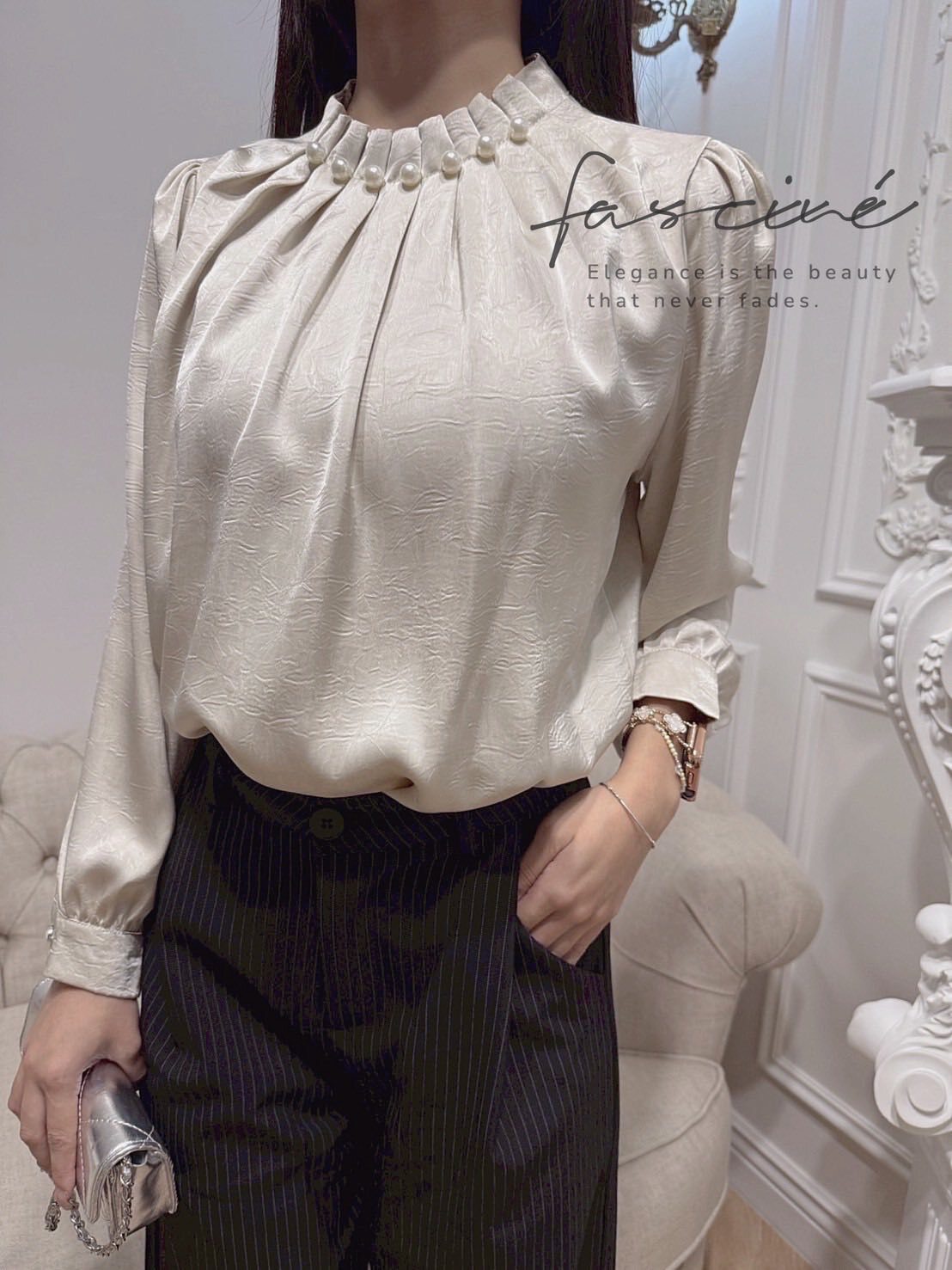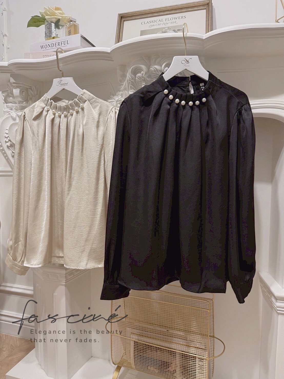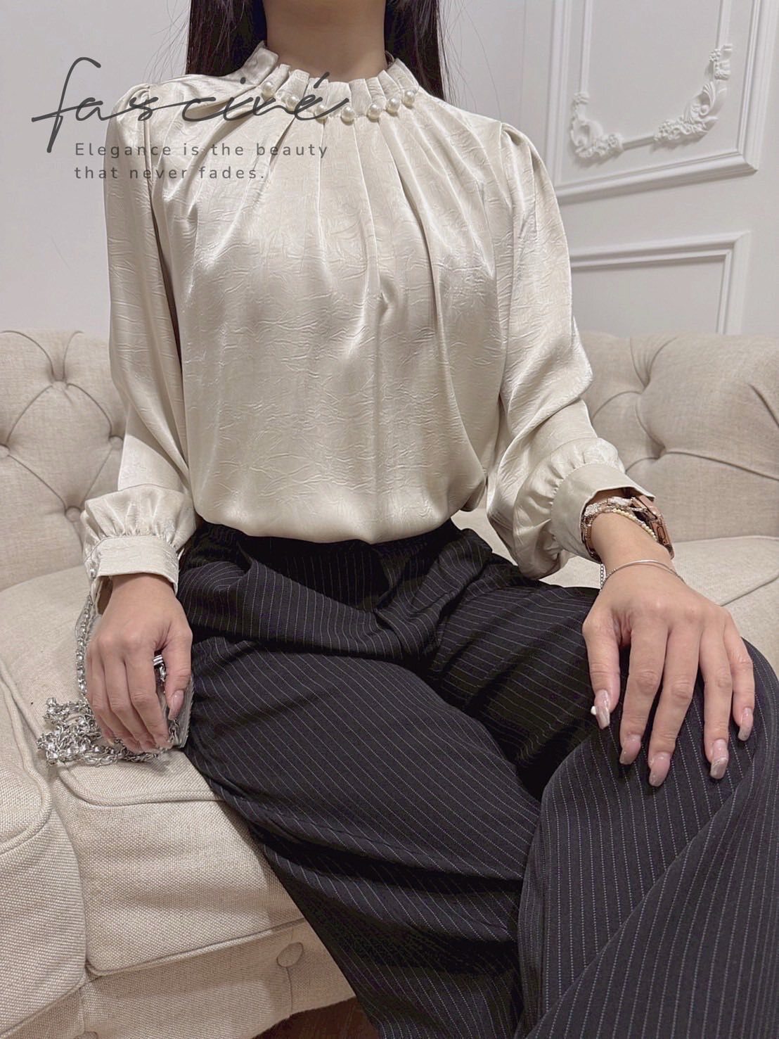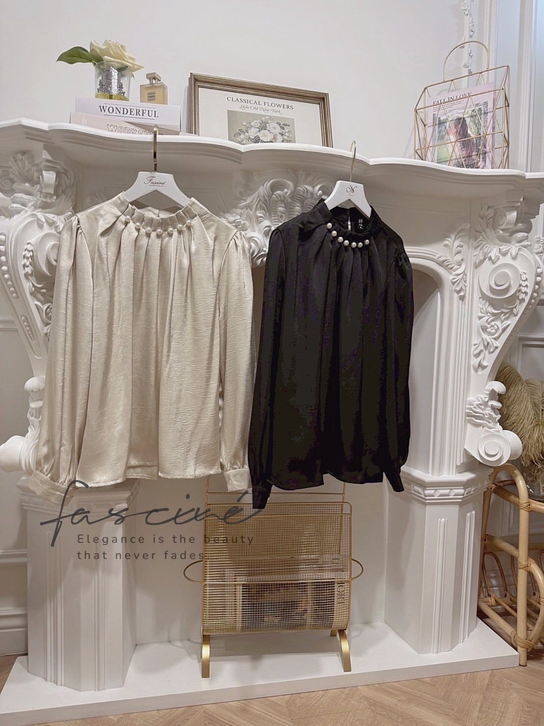 (09T01-25B)法式時尚百搭減齡顯瘦寬鬆珍珠設計上衣 $590