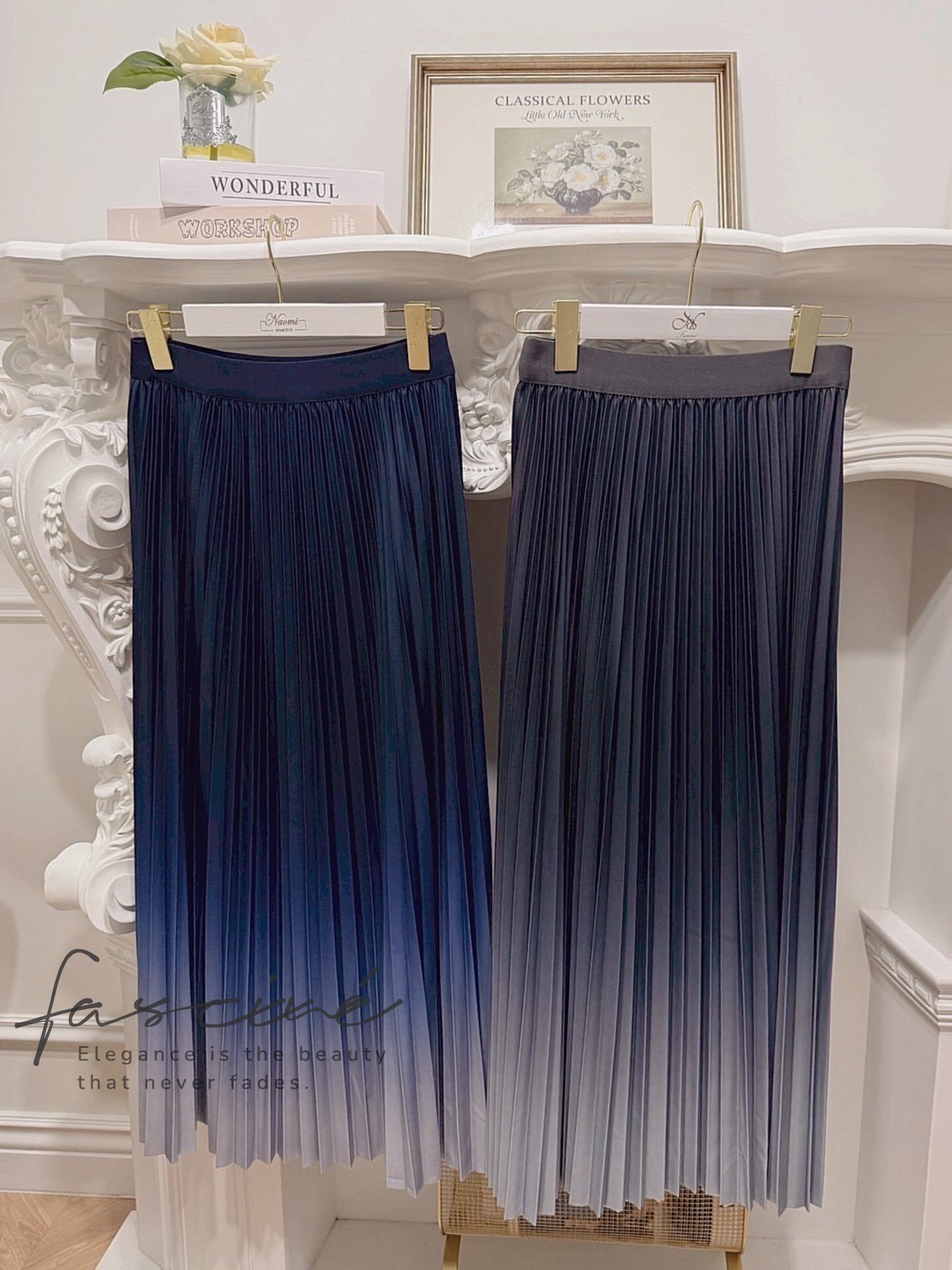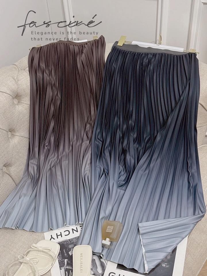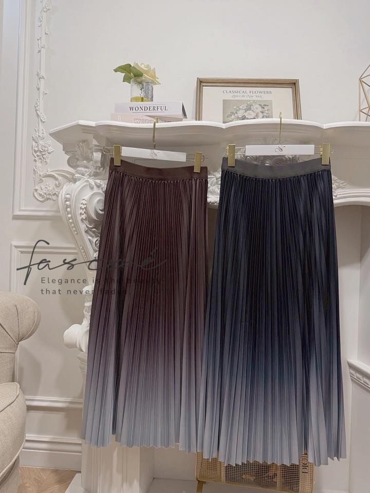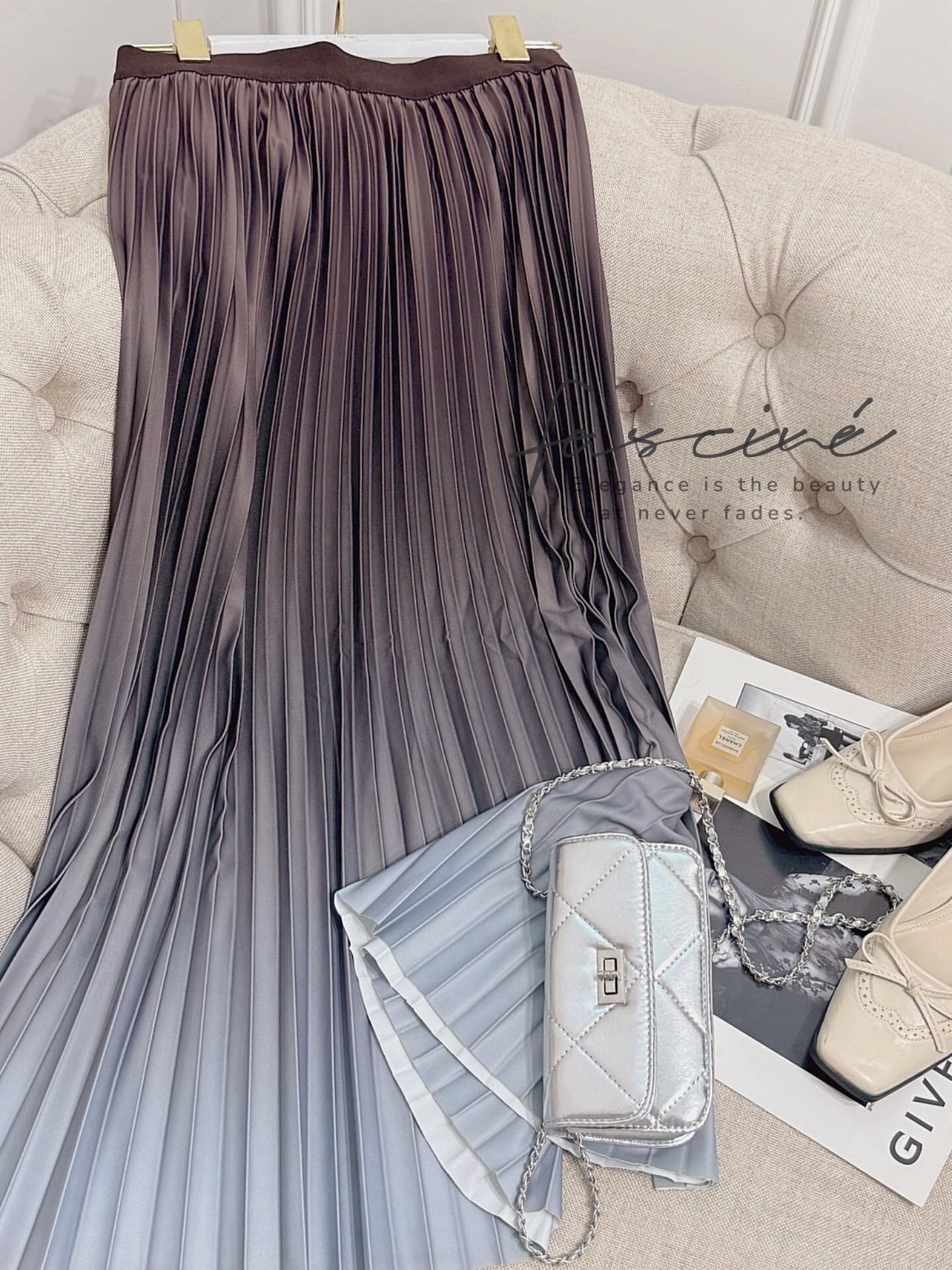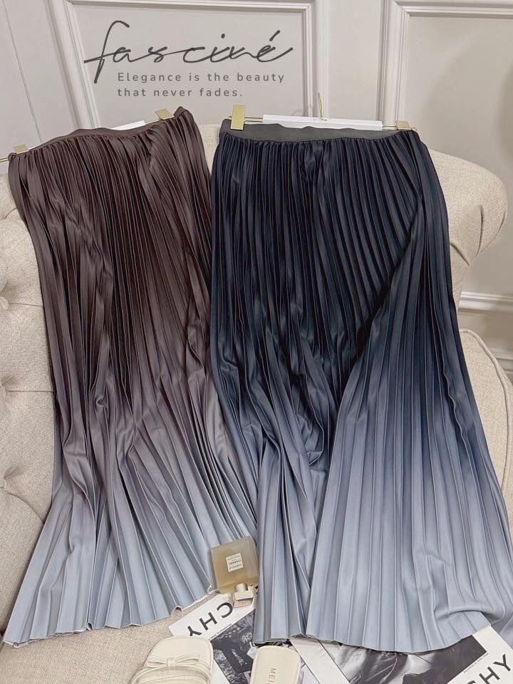 漸層色系從深到淺,走動間自然流光,展現時髦高級感。百褶設計垂墜感佳,修飾身形比例,顯瘦又顯腿長。鬆緊腰圍26-44吋舒適包容,裙長86cm,大多數身高皆適合。