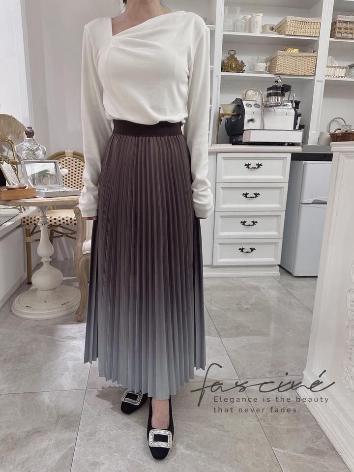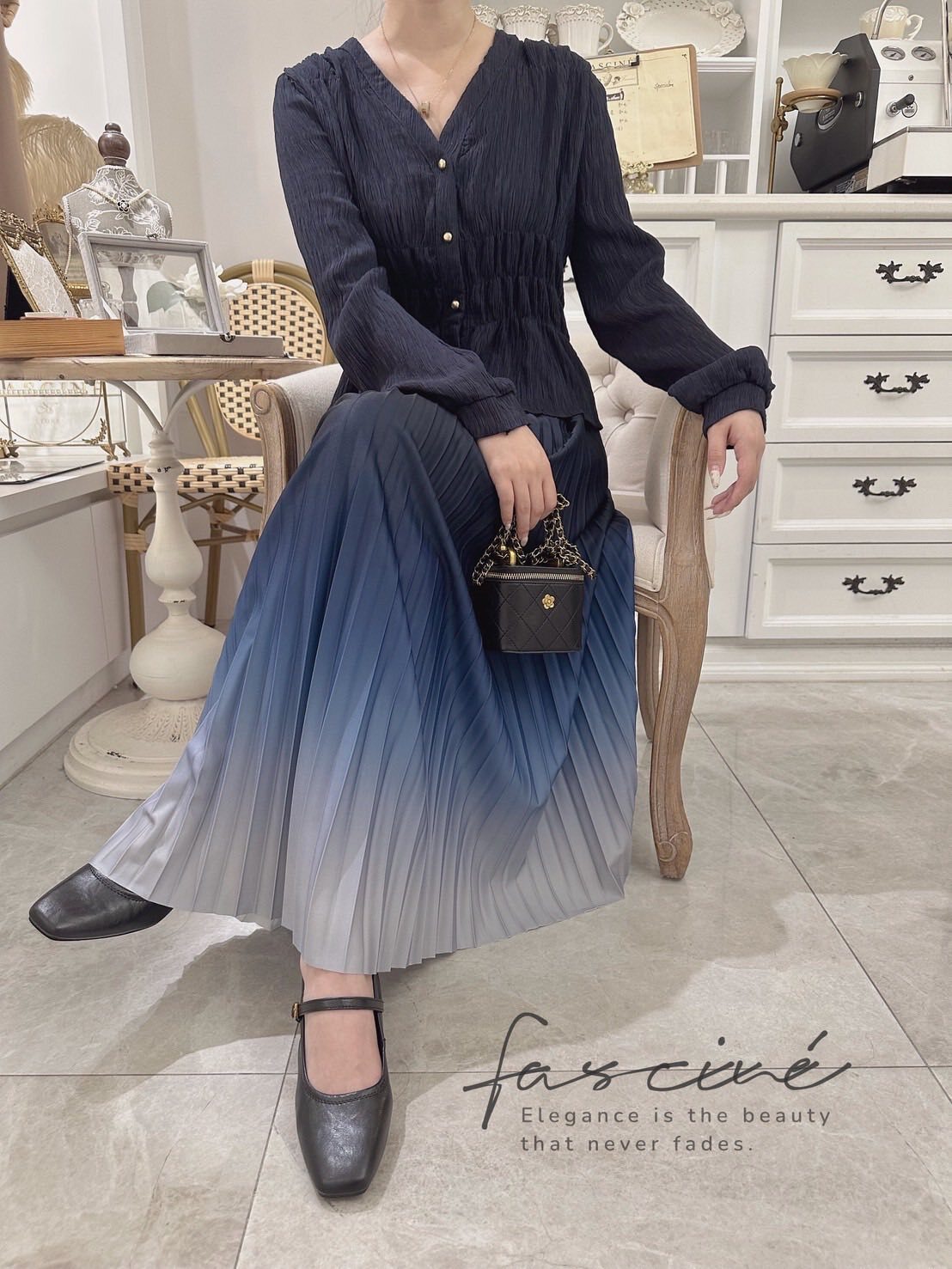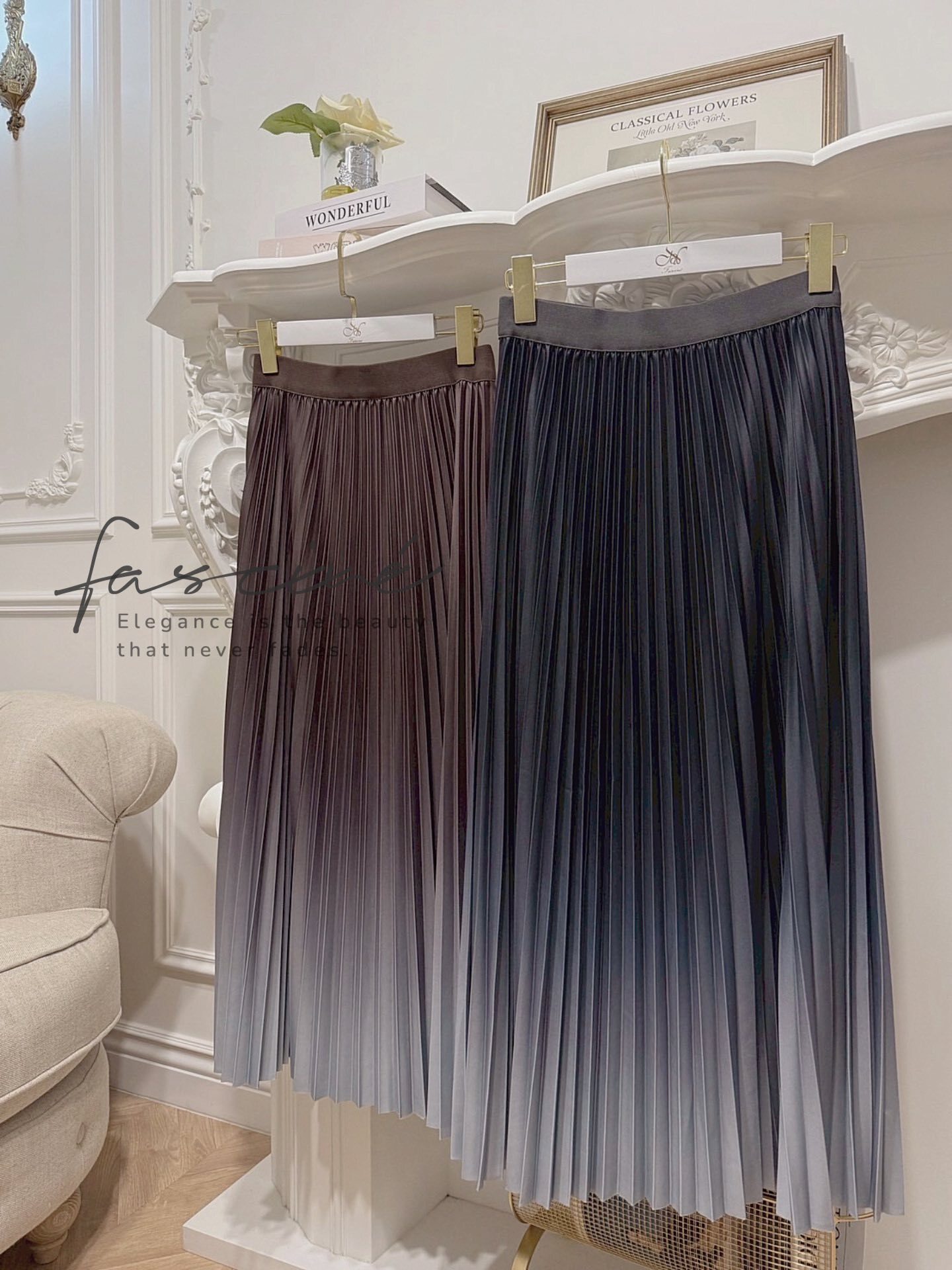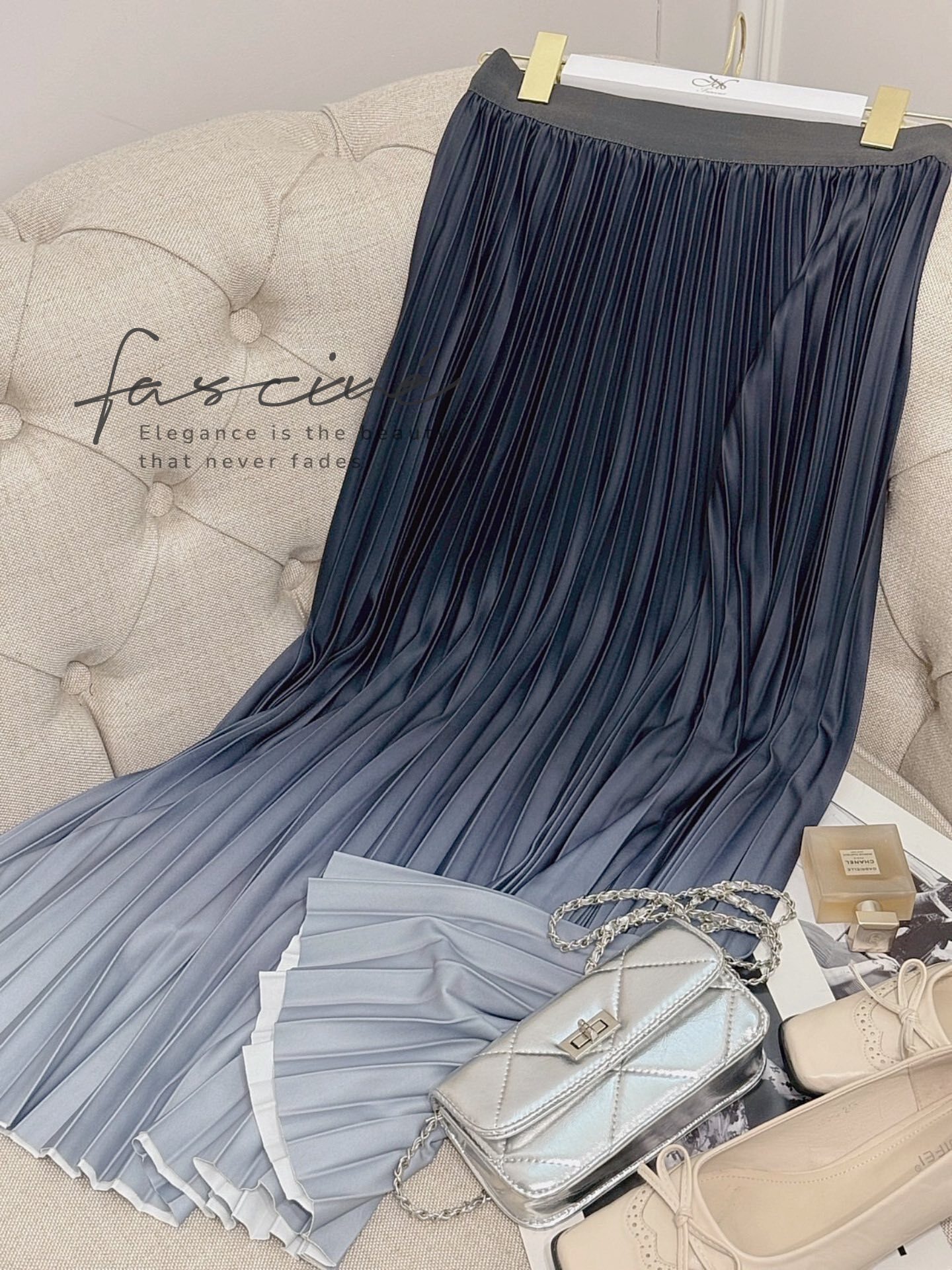 漸層色系從深到淺,走動間自然流光,展現時髦高級感。百褶設計垂墜感佳,修飾身形比例,顯瘦又顯腿長。鬆緊腰圍26-44吋舒適包容,裙長86cm,大多數身高皆適合。