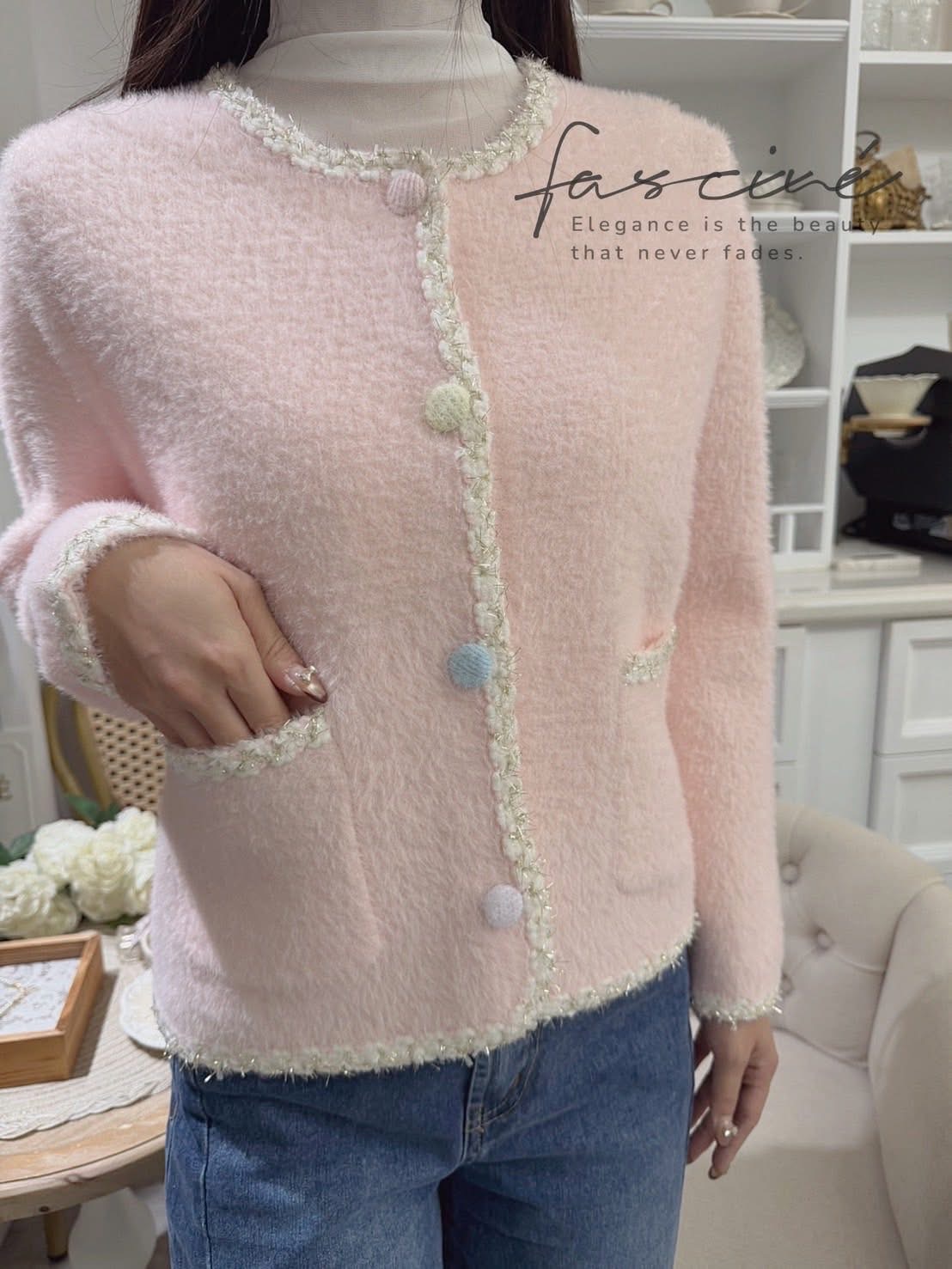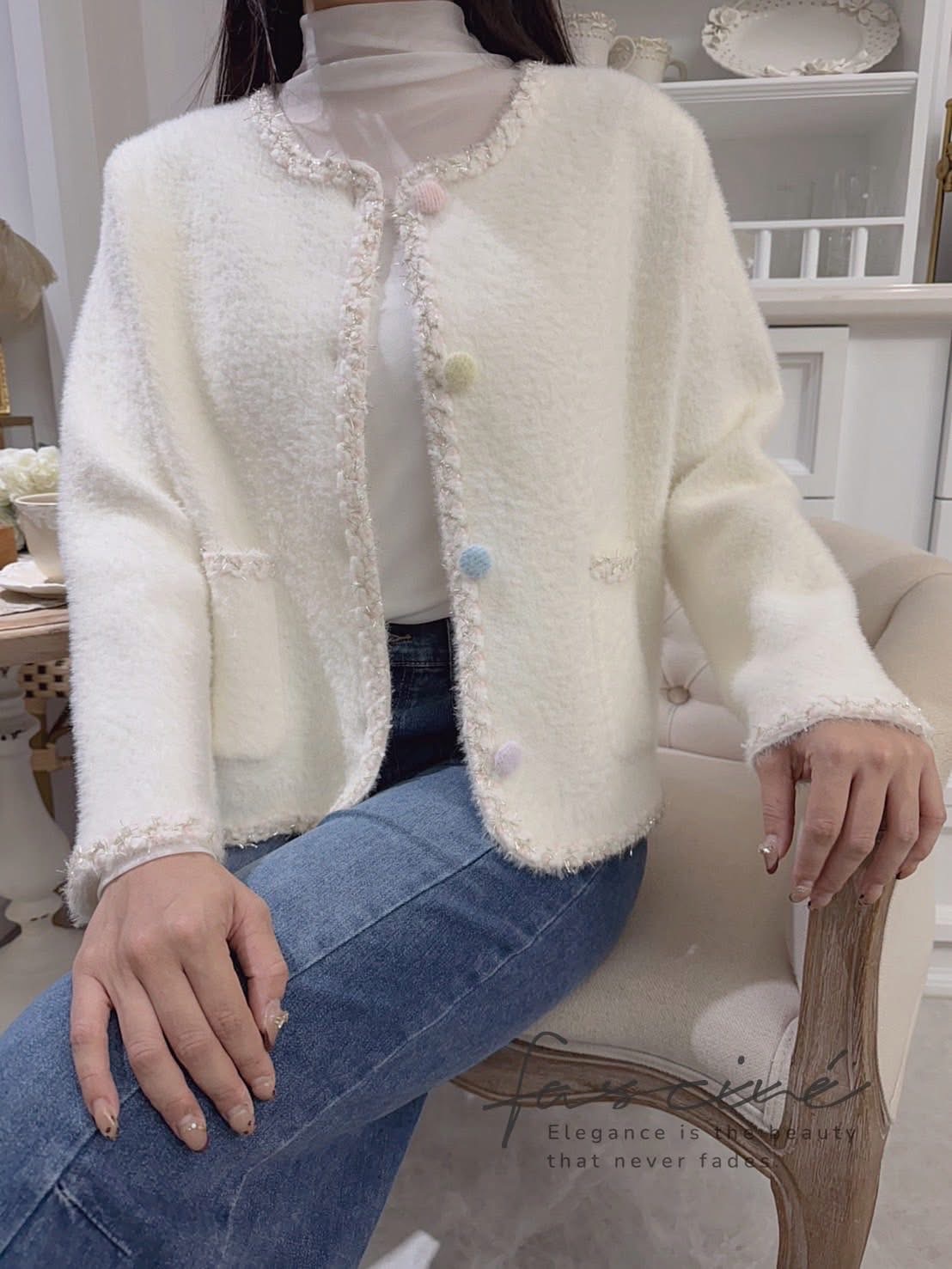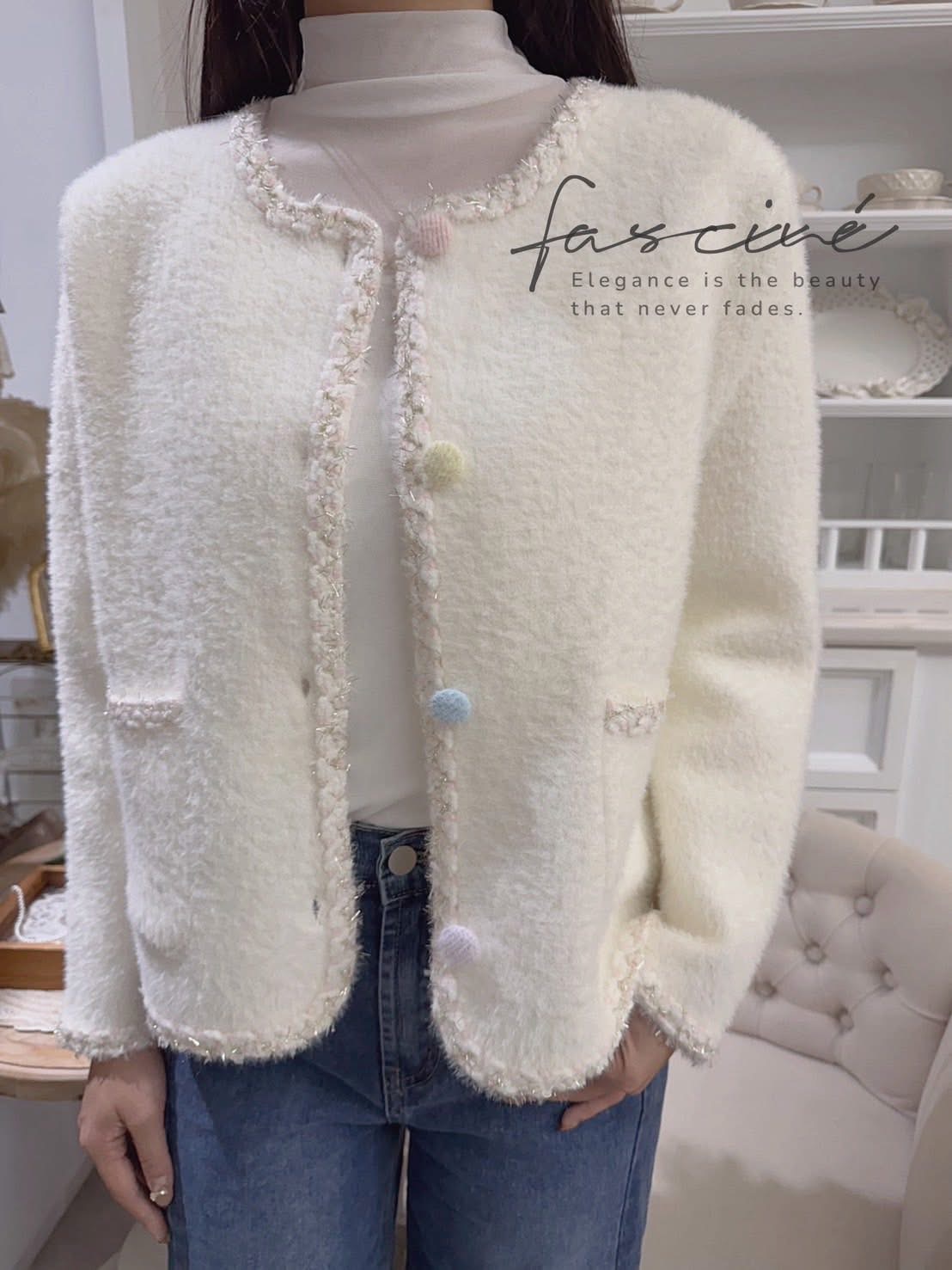 (10T47-25B)法式小香風經典剪裁滾邊糖果色包鈕水貂外套