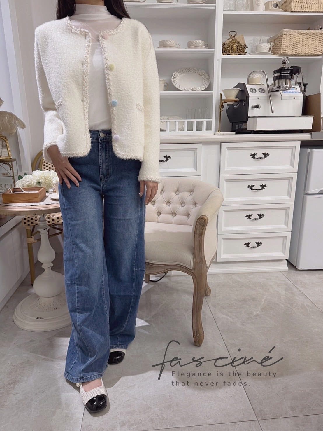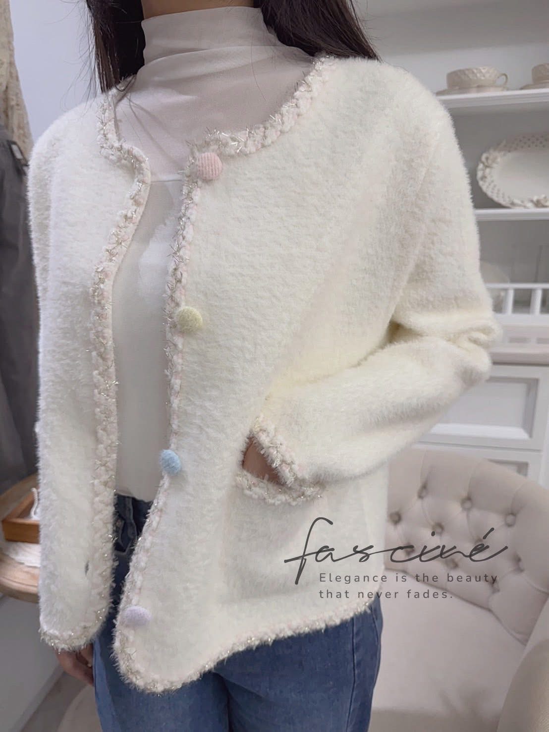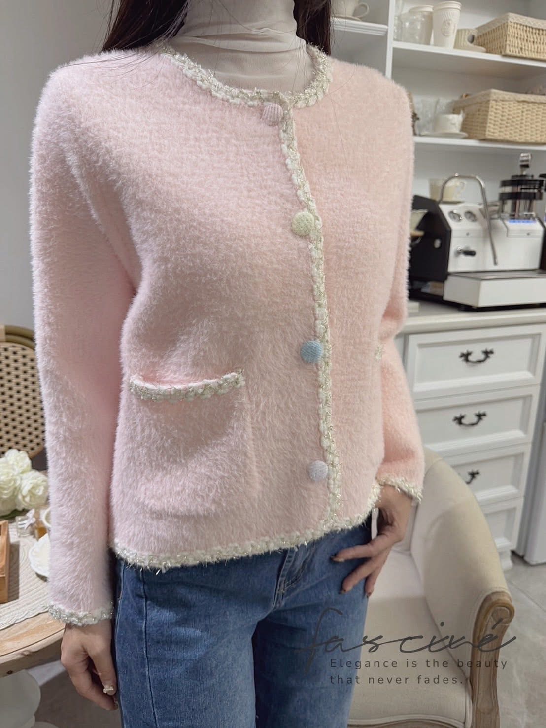 (10T47-25B)法式小香風經典剪裁滾邊糖果色包鈕水貂外套