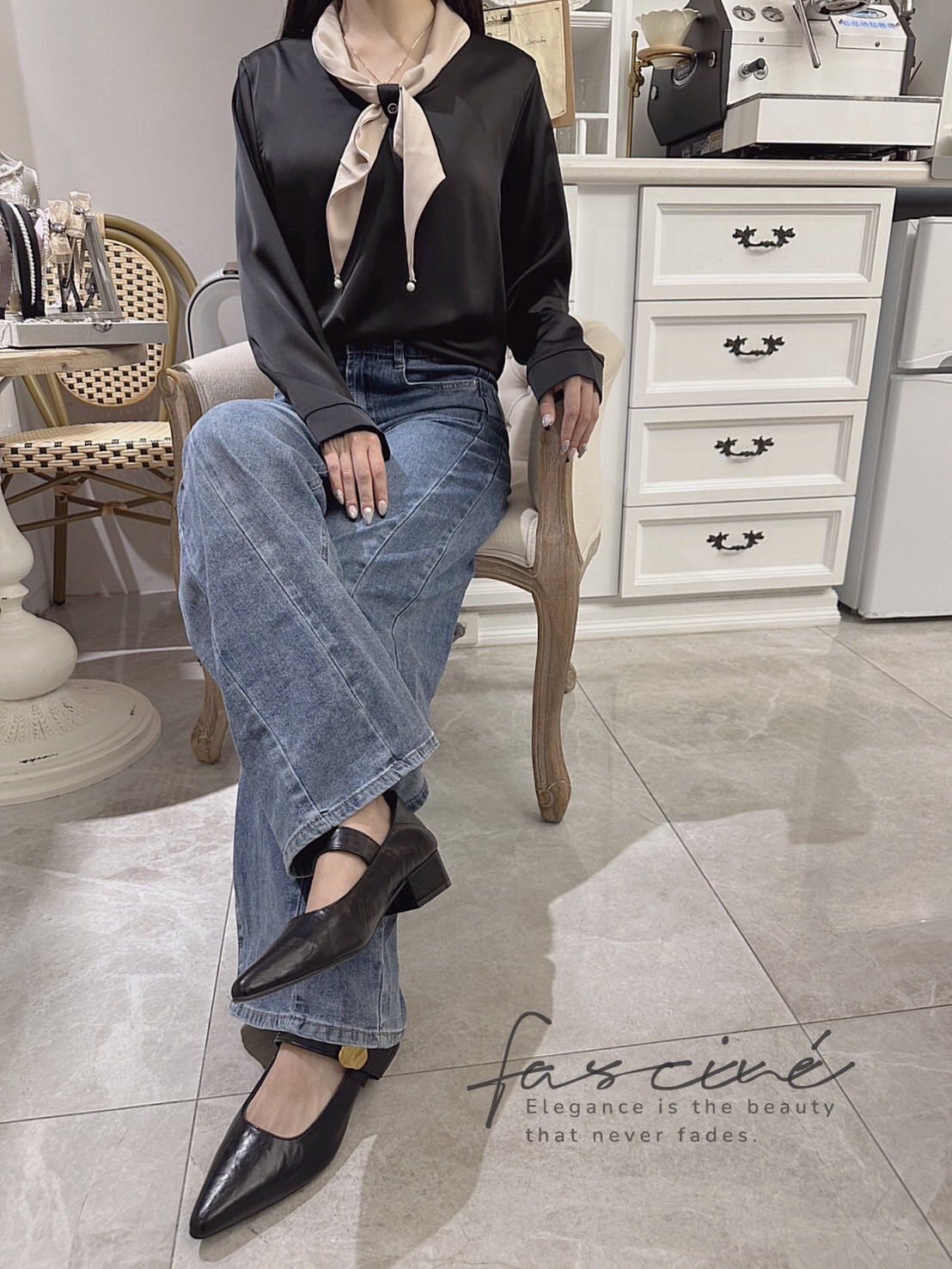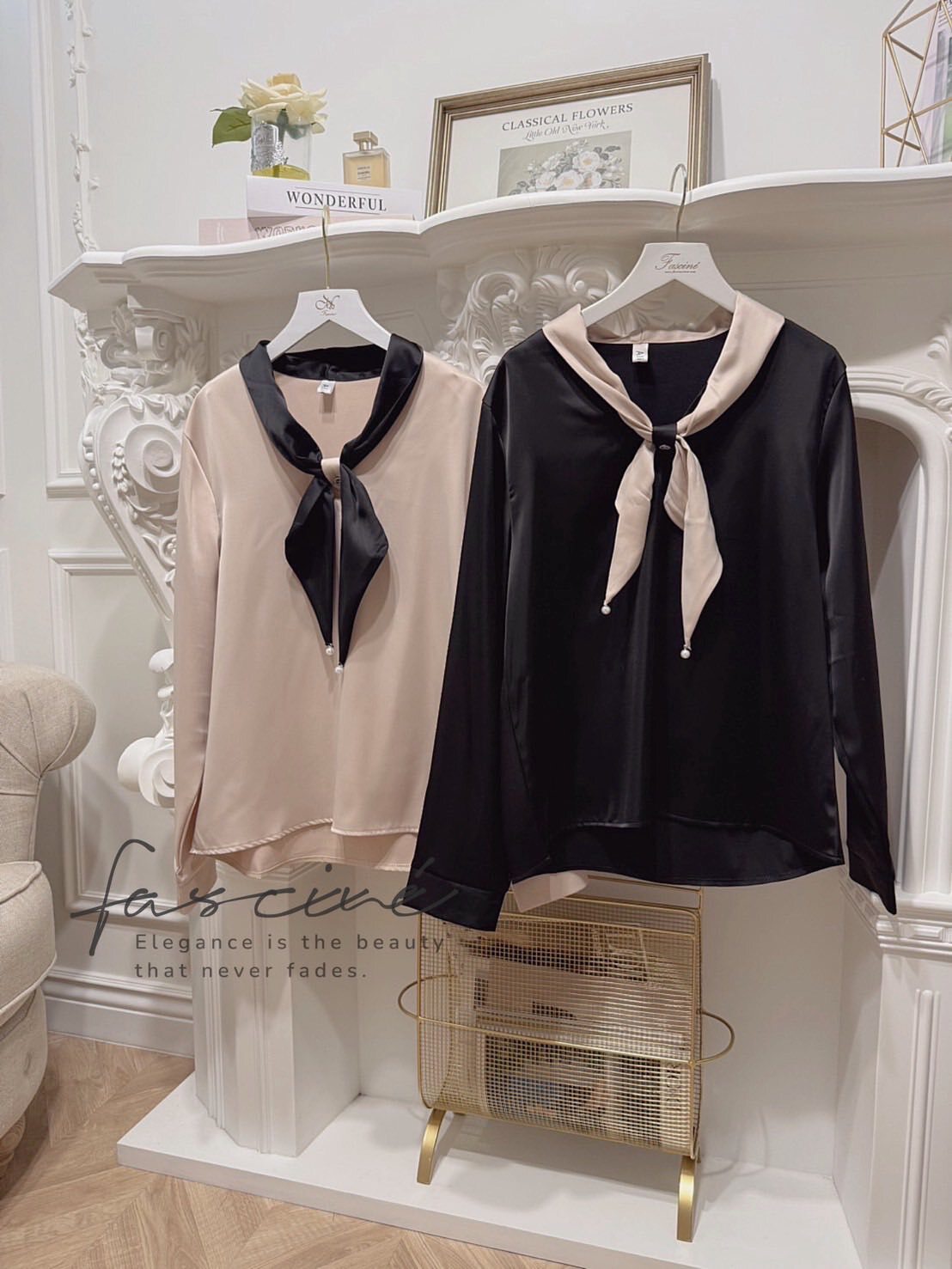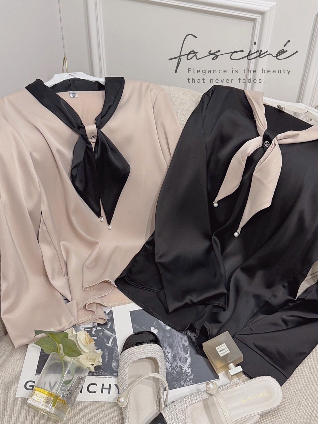 以柔滑緞感結合領口蝴蝶結點綴,微光澤映出高級氣質,辦公到約會一件搞定。微寬袖與俐落版型修飾上身線條,配牛仔或西裝都能展現摩登優雅。領巾可隨心打結或自然垂墜,輕鬆切換正式與日常兩種氛圍。