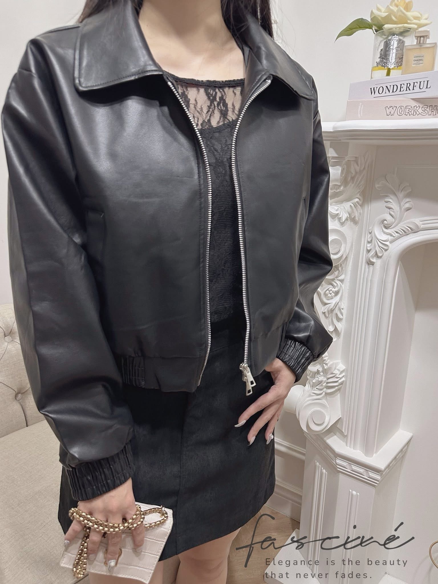 (11T01-25B)法式極簡甜帥感皮外套 $690