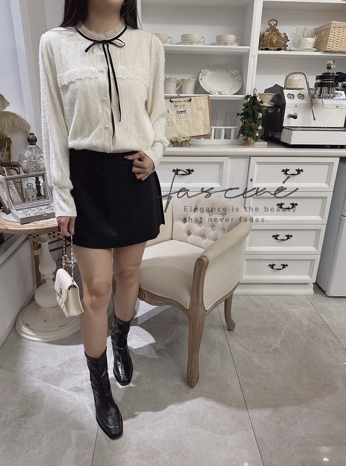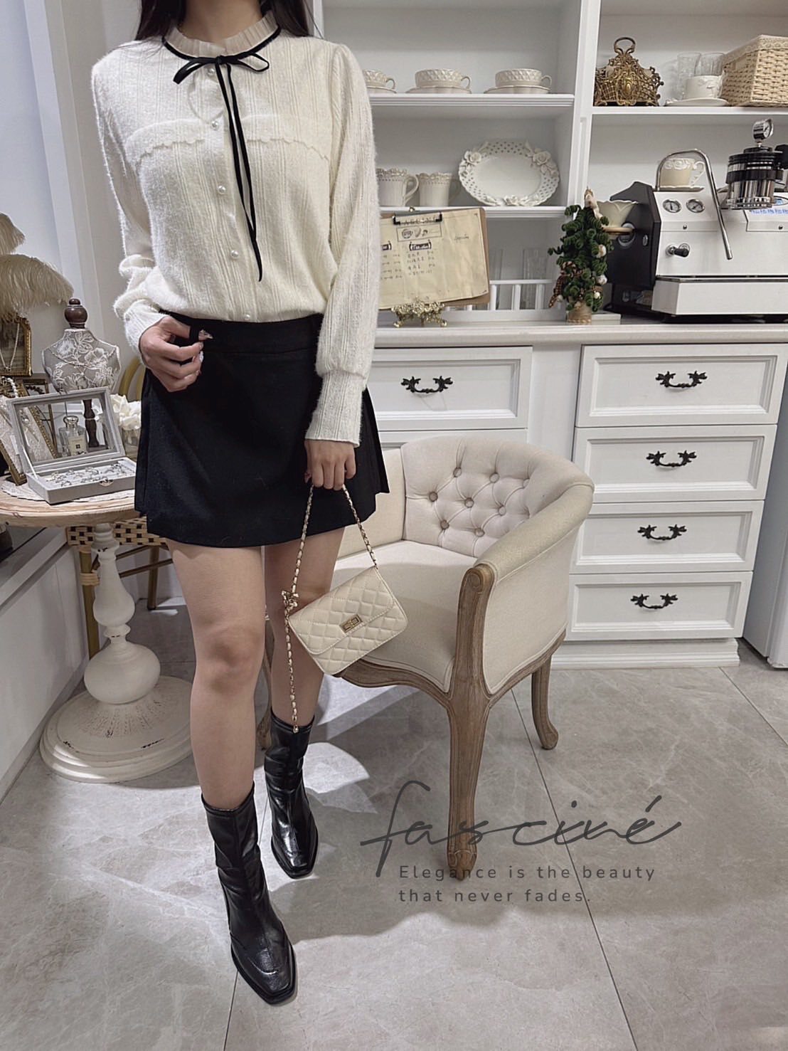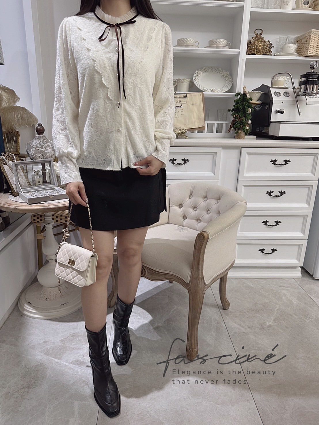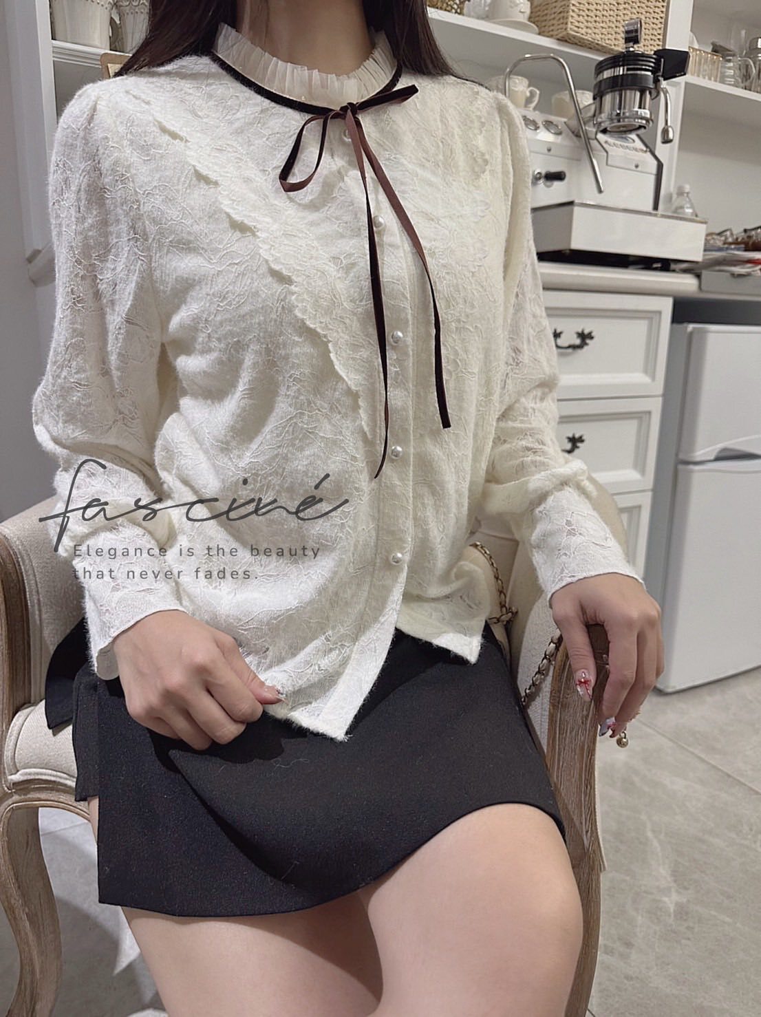 領口綁上細緻法式蝴蝶結,勾勒臉部線條,自帶修飾小臉濾鏡,內裡加絨加厚設計,穿起來柔軟暖和不臃腫,秋冬單穿或當內搭都超實用。立體感蕾花/蕾網織紋沿著門襟延伸到胸口,搭配光澤感珍珠釦,走進咖啡廳、辦公室都散發溫柔小姊姊氣質。