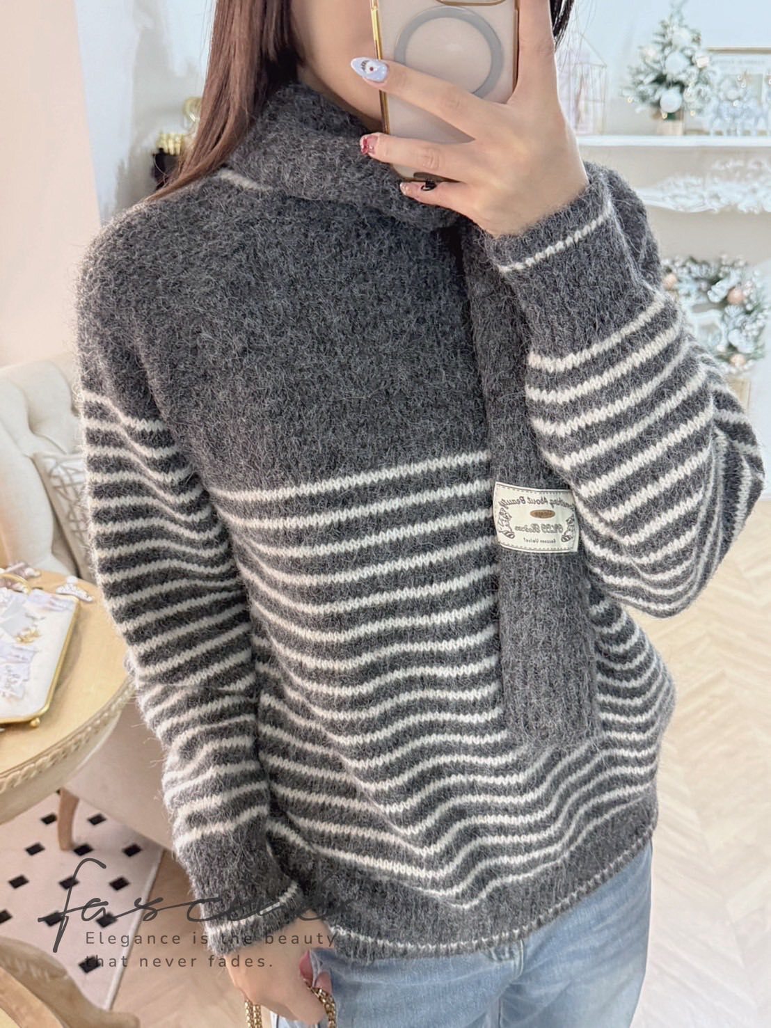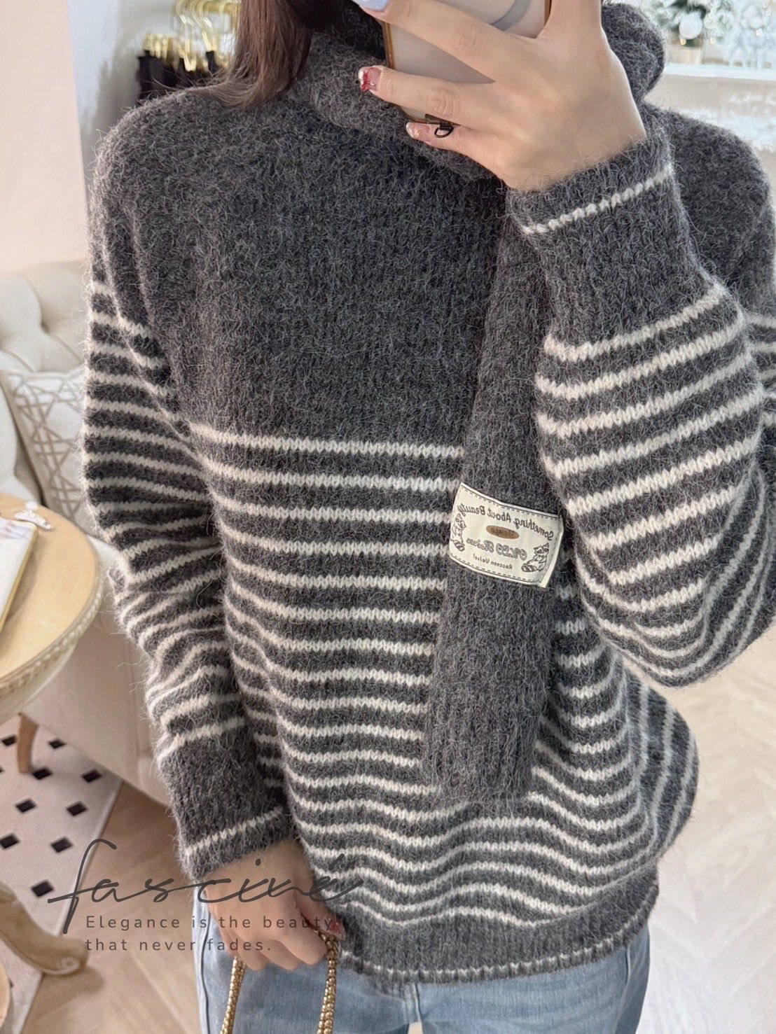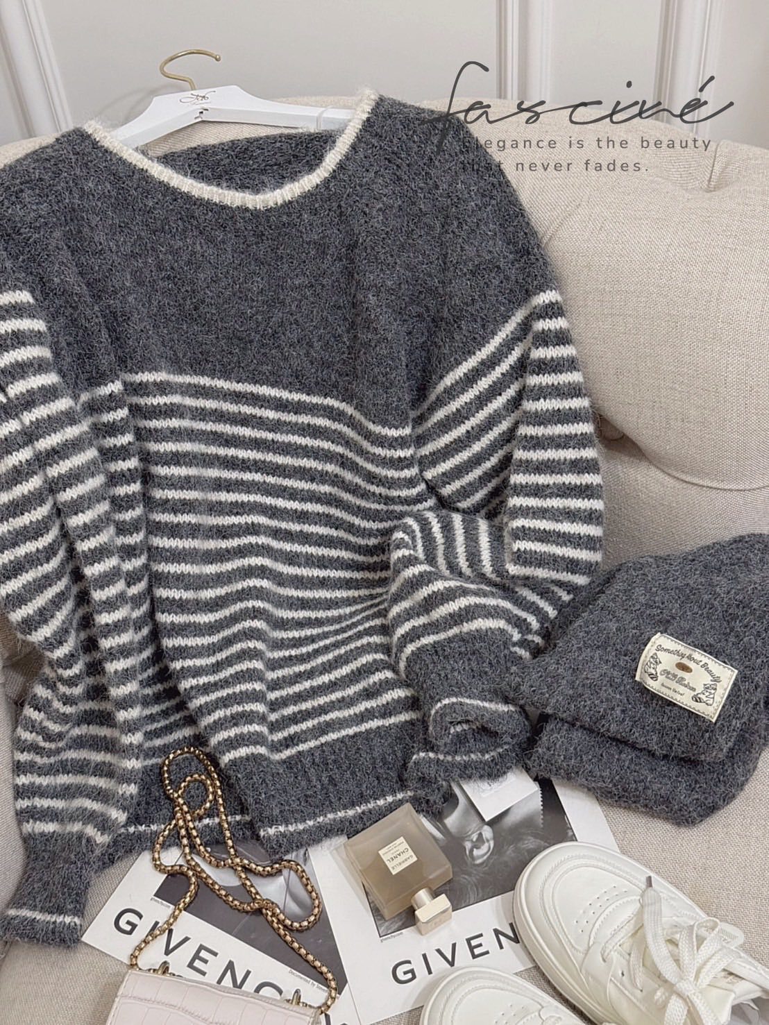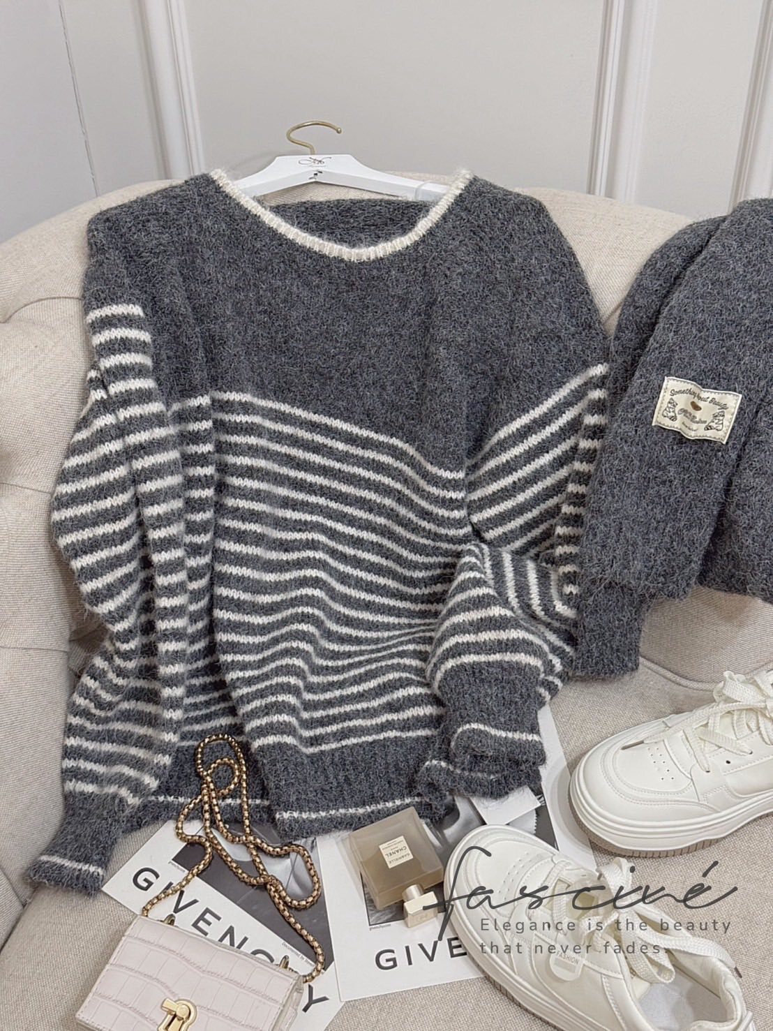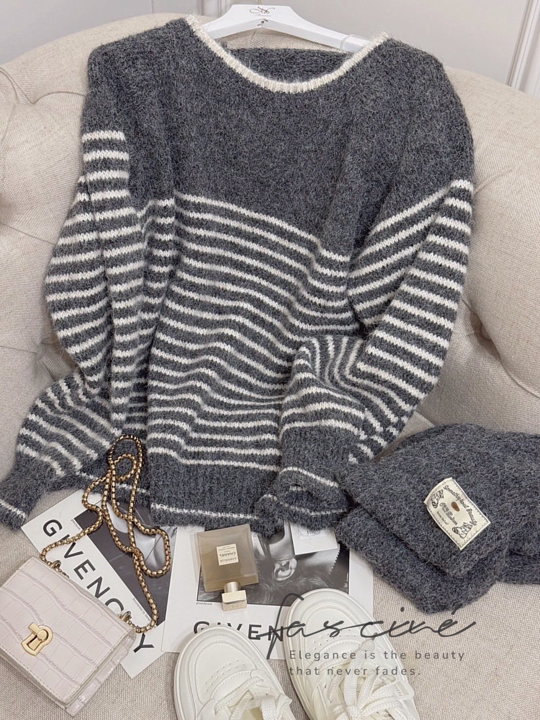 深灰拼接奶油白細條紋,營造低調卻很有存在感的法式氣質,修飾上身線條又不挑膚色與年齡。