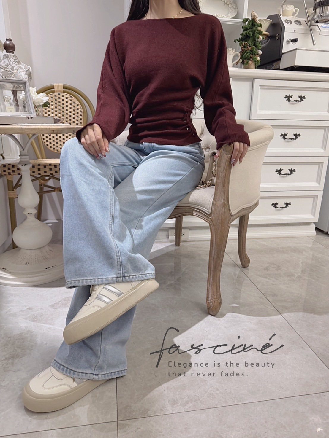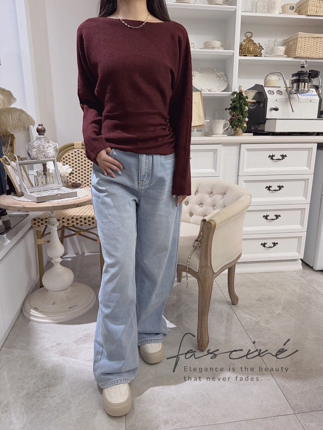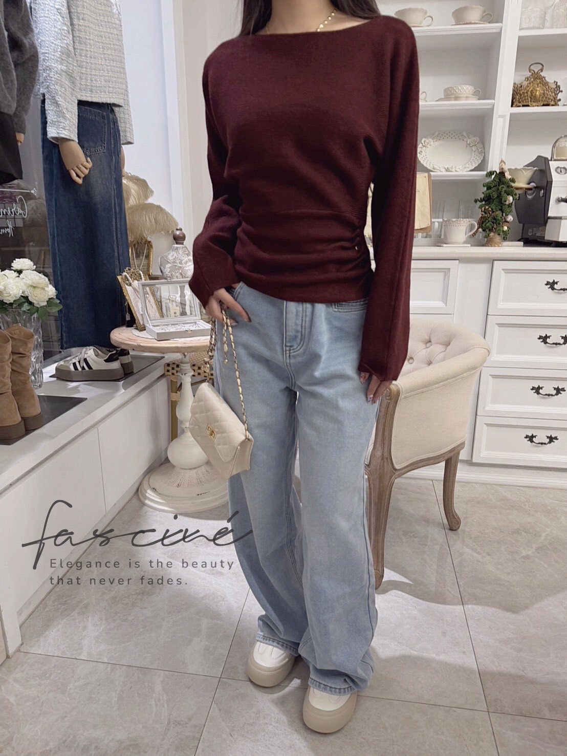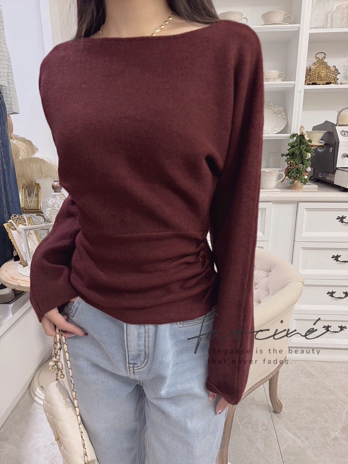 ✔️ 顏色:奶白、酒紅