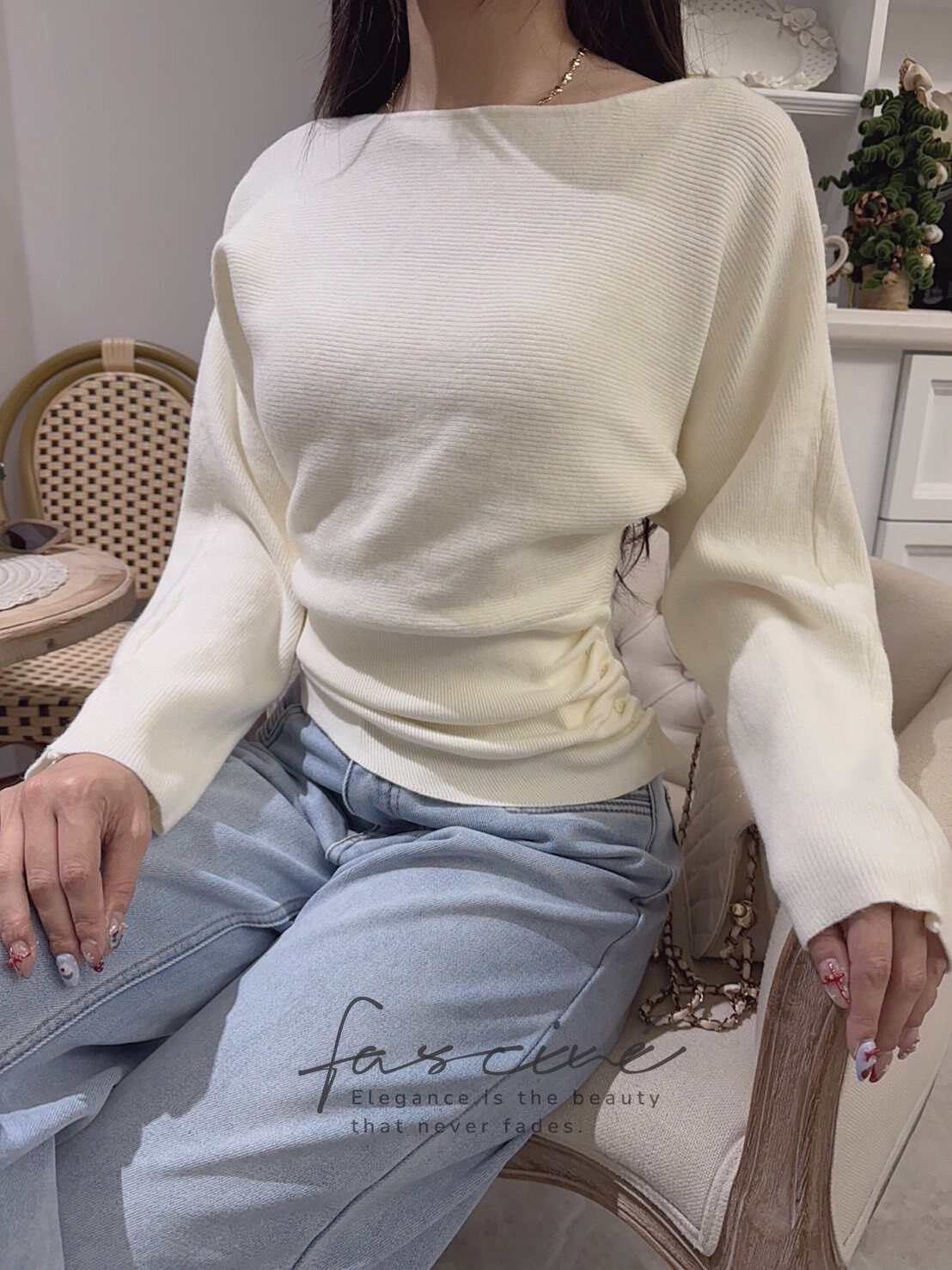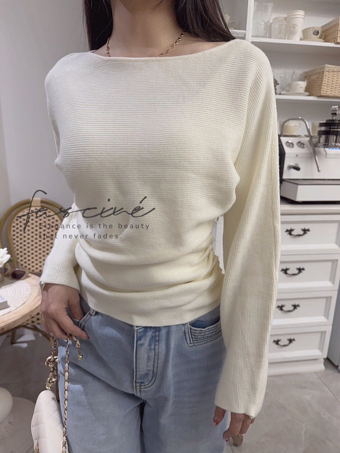 微露鎖骨的優雅船領設計,拉長頸部線條,隨性一穿就有法式慵懶感。兩側細緻抓皺搭配側邊鈕扣,小心機修飾小腹與腰線,坐著站著都有漂亮比例。柔軟混紡針織布料,觸感細緻不厚重,從通勤到約會都能舒適陪伴一整天,穿就很有存在感,日常也能輕鬆變身小女人。