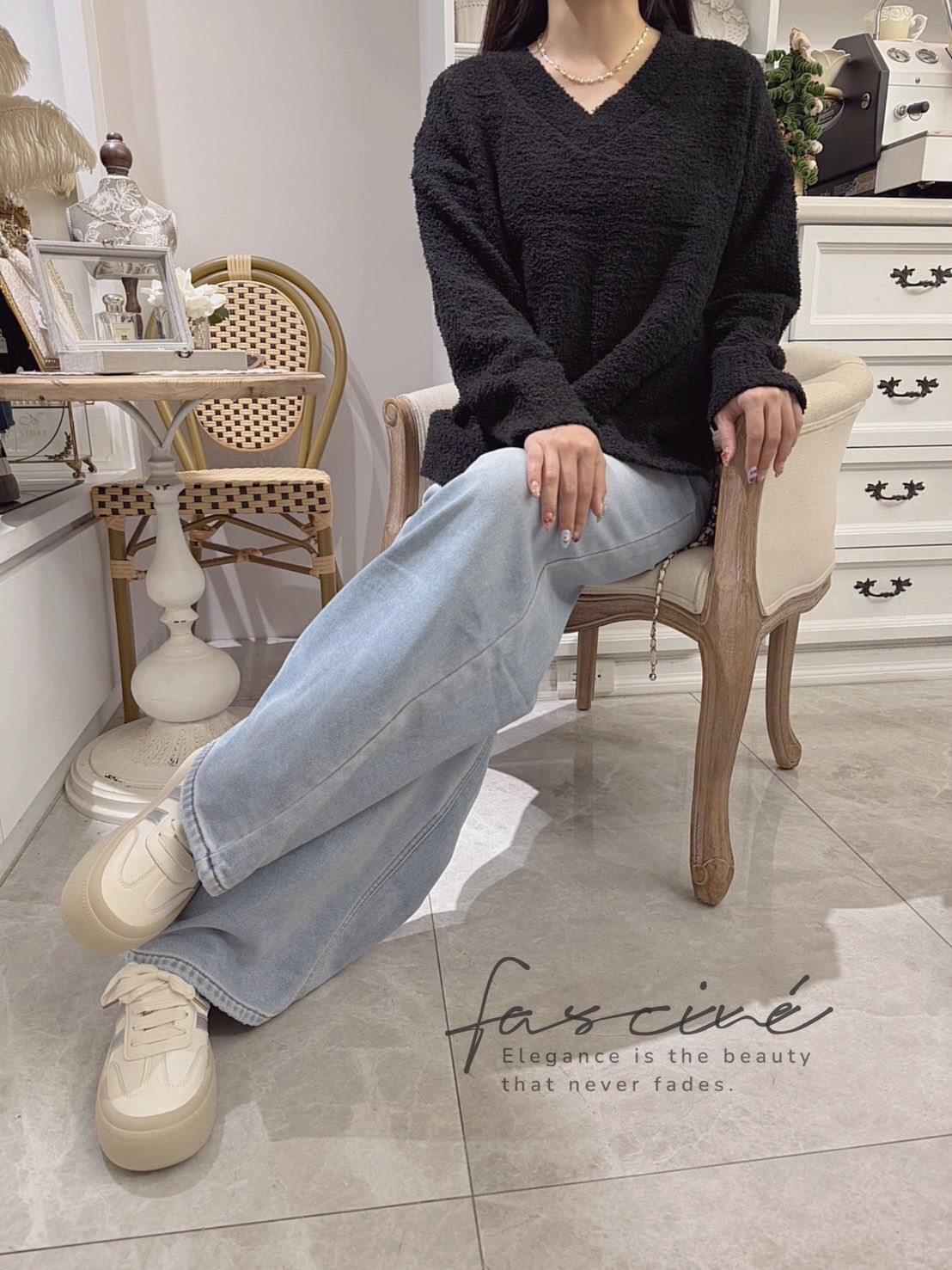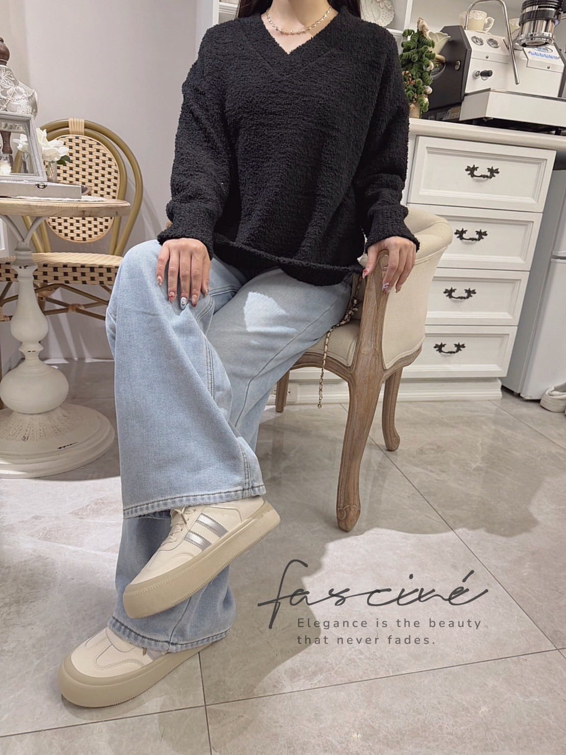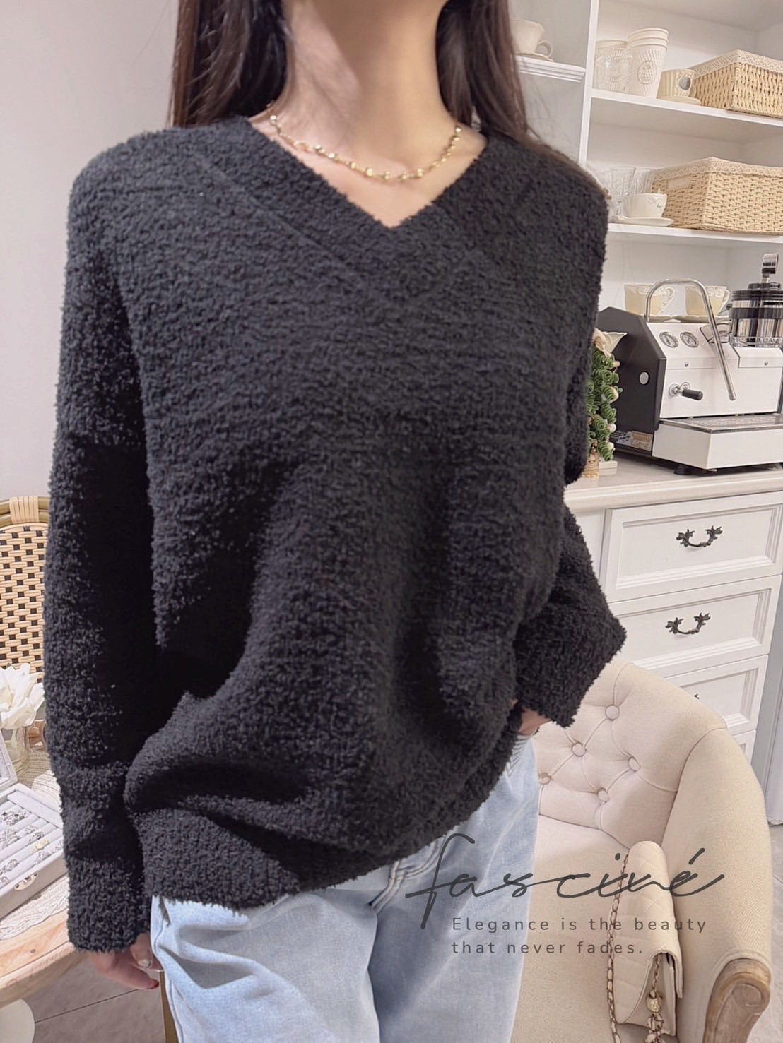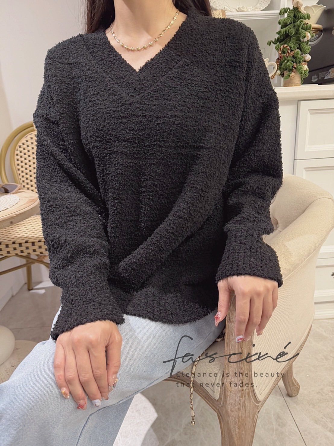 軟糯絨毛觸感一穿就上癮,微寬鬆版型把小腹與手臂線條輕鬆收好,坐著站著都好看。立體V領修飾臉型與頸部線條,單穿就很有存在感,內搭高領或蕾絲小背心也不會顯得厚重。布料保暖卻不笨重,適合通勤、約會到下午茶,每一個日常場景都能溫柔陪伴。黑色百搭不挑人,想休閒就配牛仔長褲,想小性感就換成貼身短裙,瞬間切換風格。