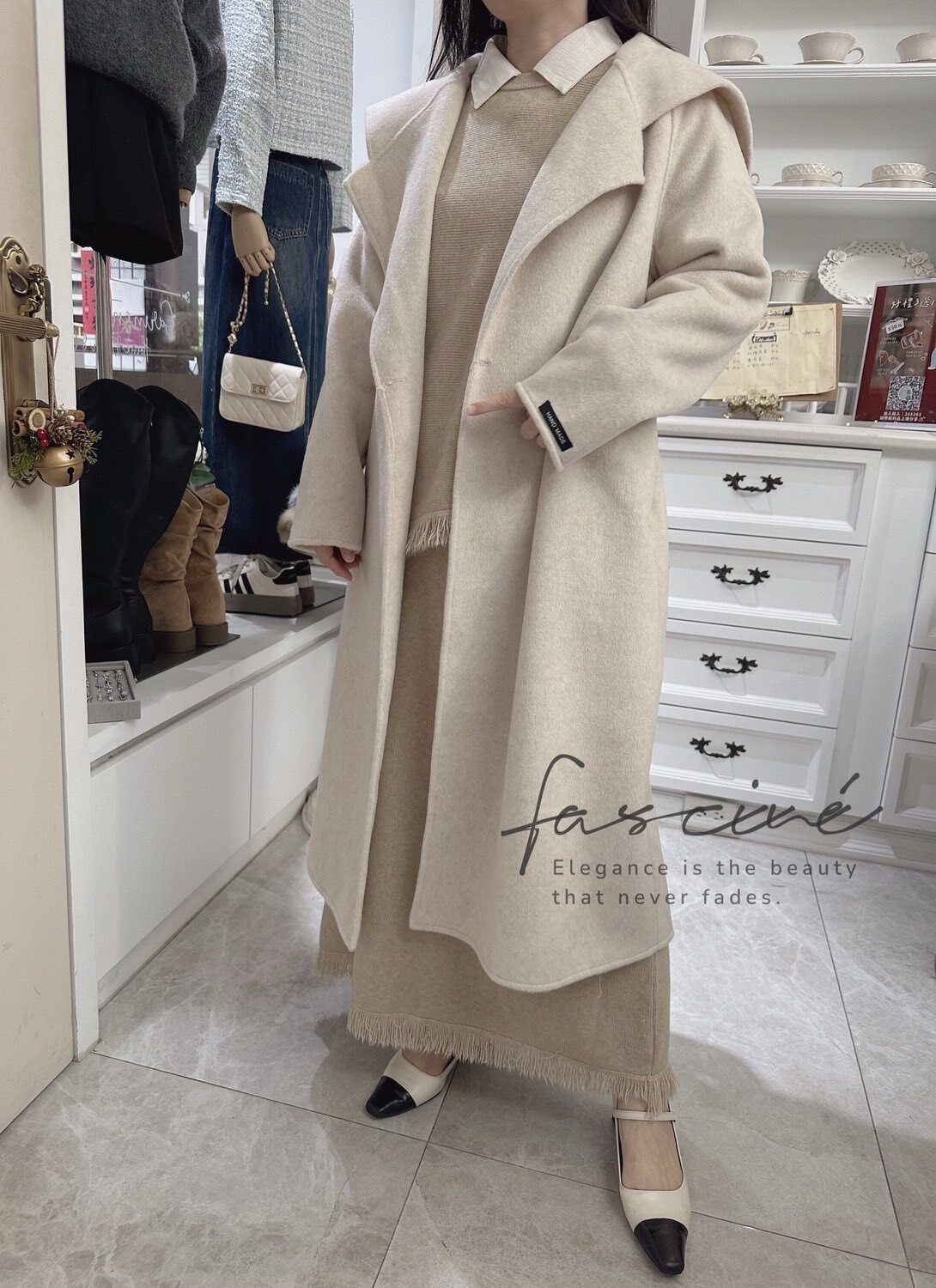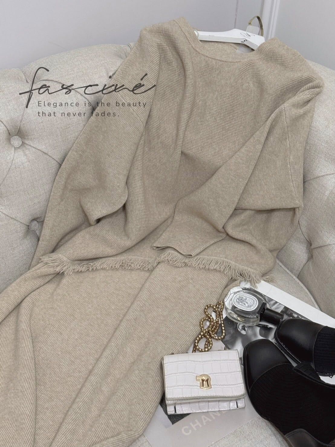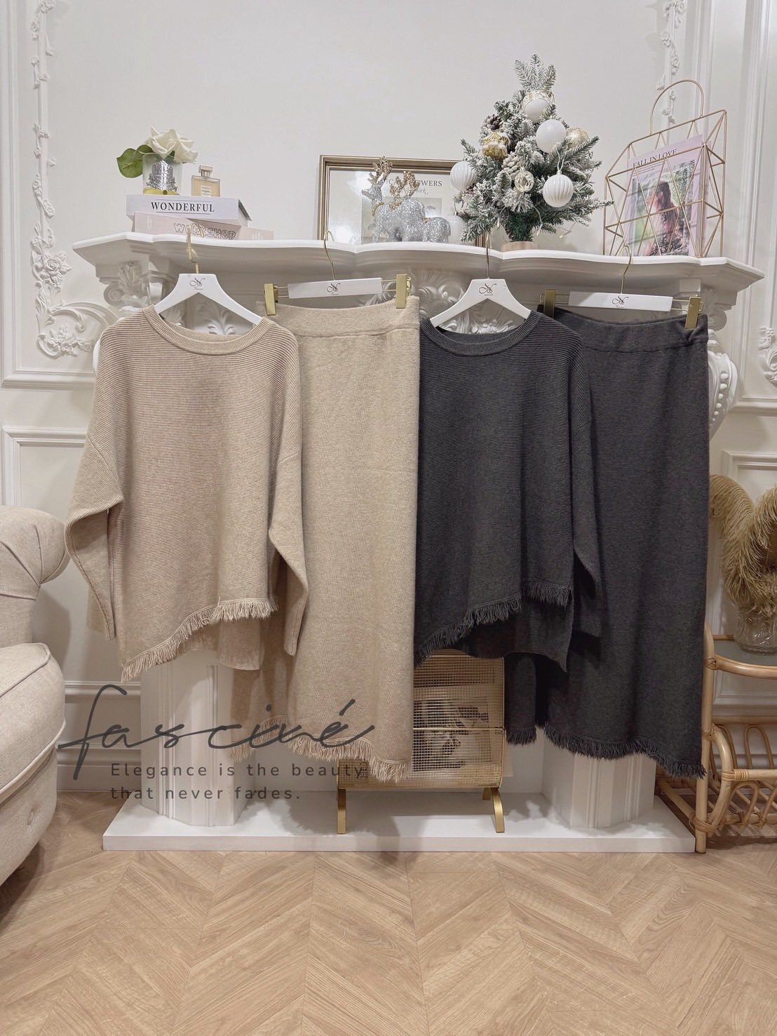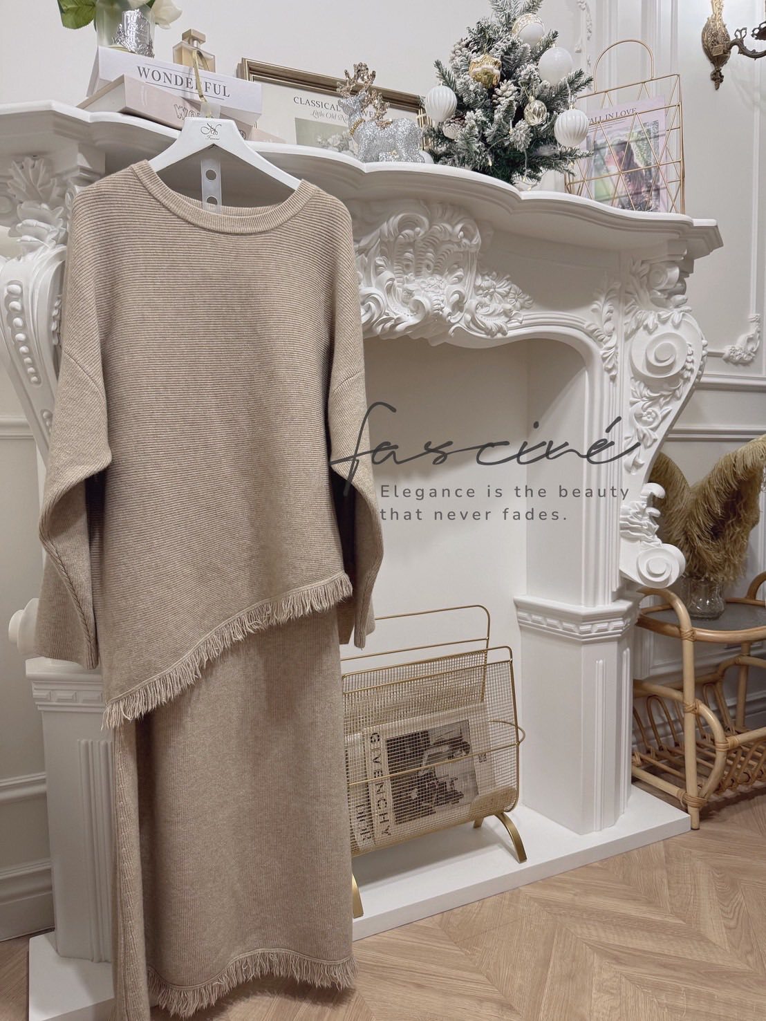 柔軟混紡針織搭配微寬鬆版型,下斜剪裁與細緻流蘇垂墜修飾腰腹與臀部線條,走動間自然搖曳超顯瘦。上短下長的比例拉高腰線,長裙優雅包覆腿部線條,不貼身卻有修身效果,日常通勤、約會聚餐一套搞定。溫柔霧感色系,高級不挑膚,單穿或拆開與衣櫥單品互搭,都能營造慵懶卻有質感的冬日氛圍。
