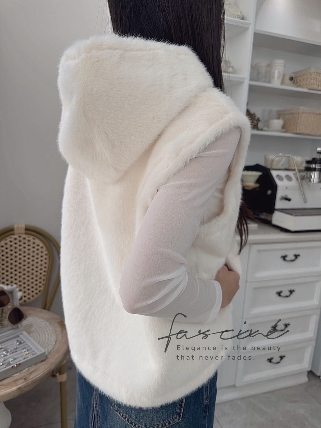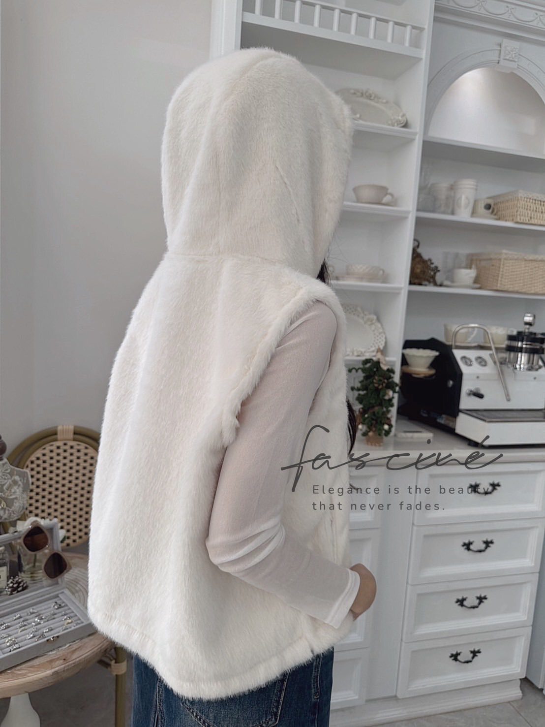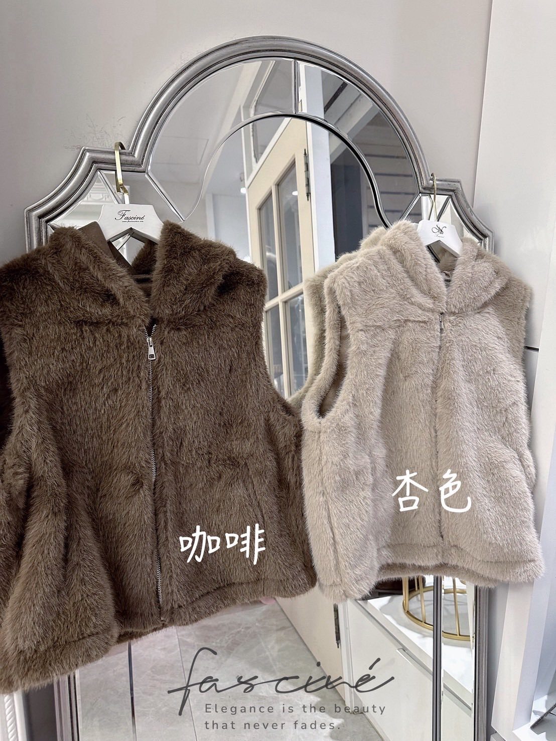 (12T02-25B)法式溫暖軟糯的毛絨質感連帽拉鍊背心$590