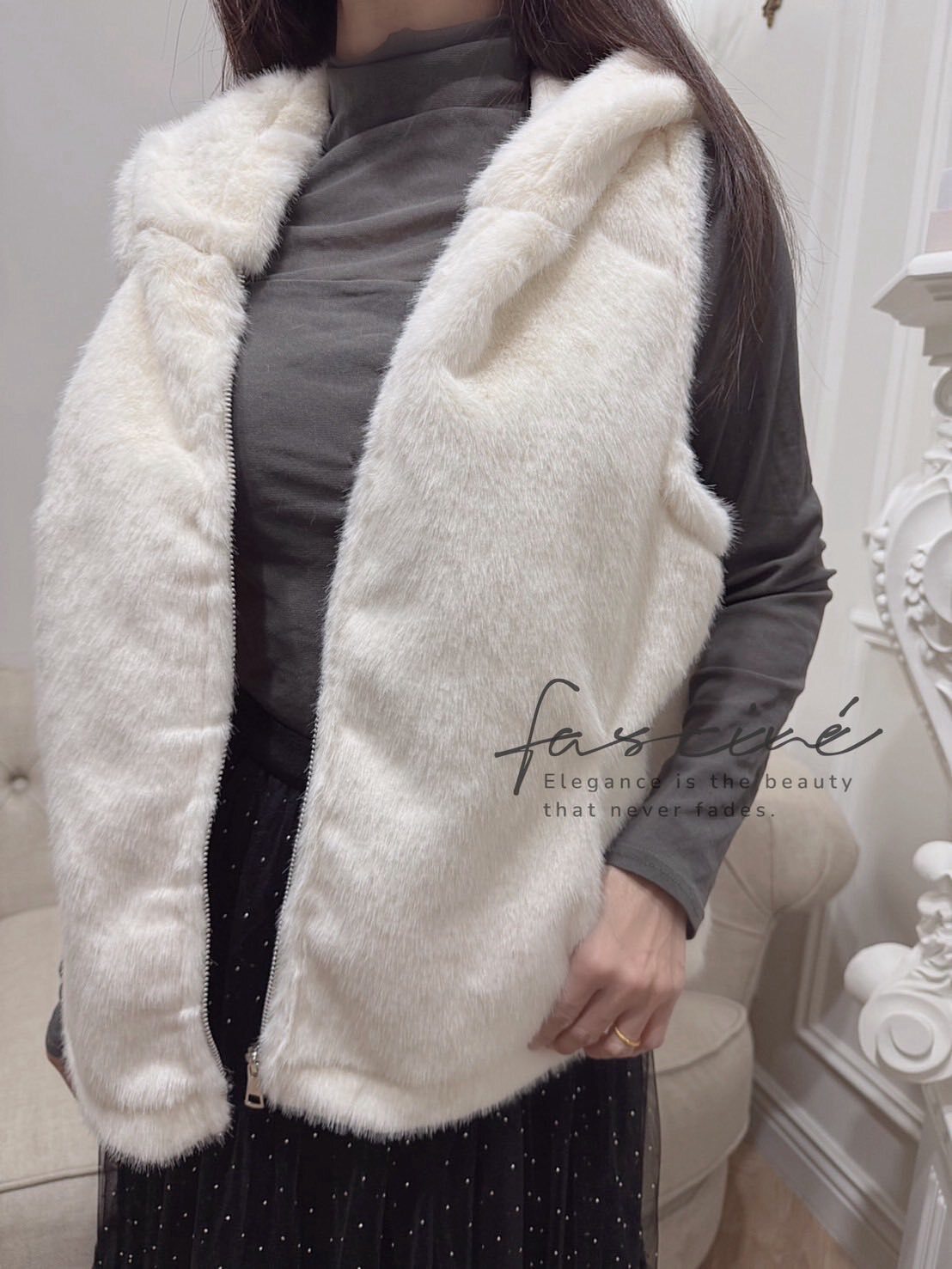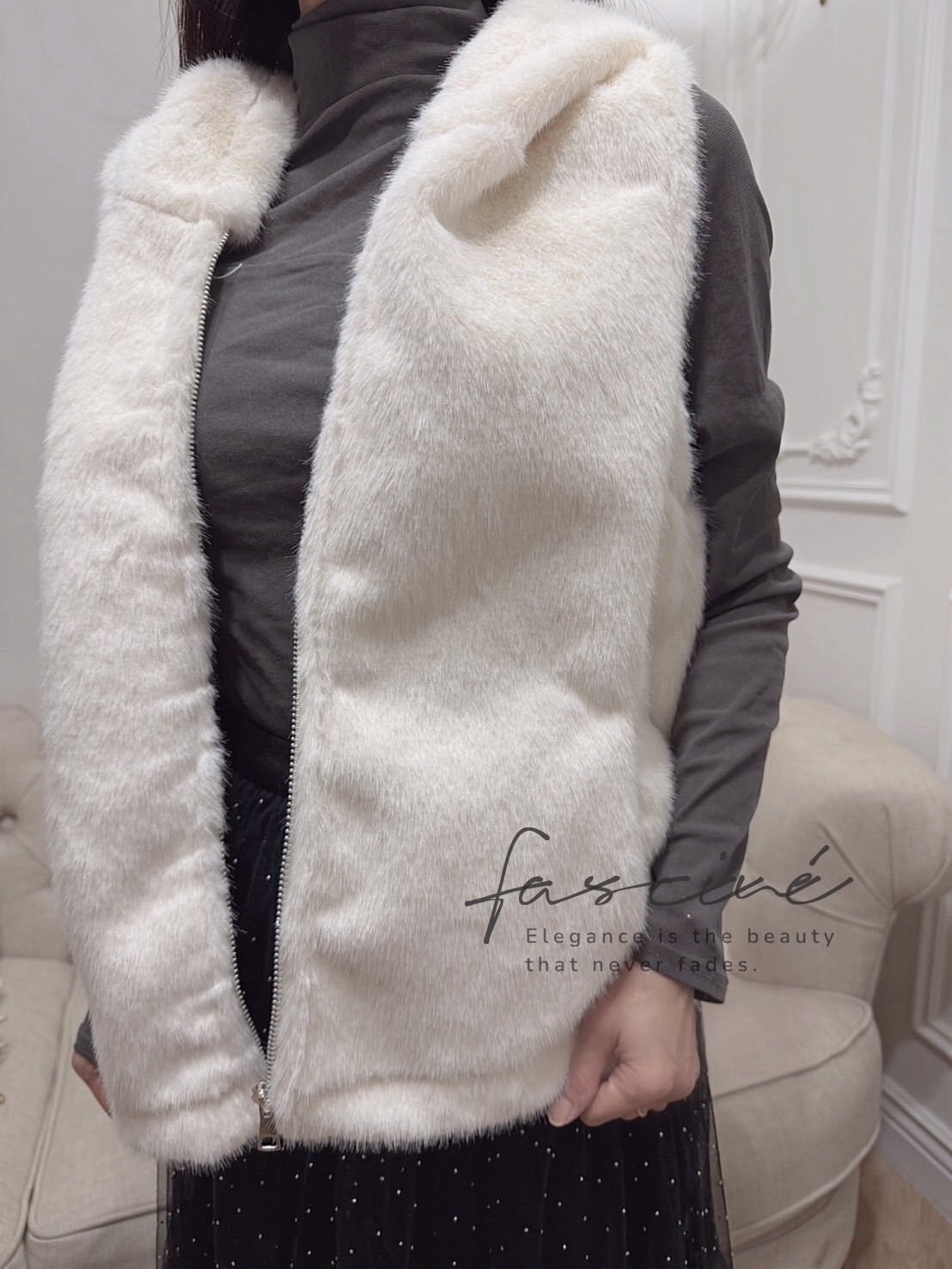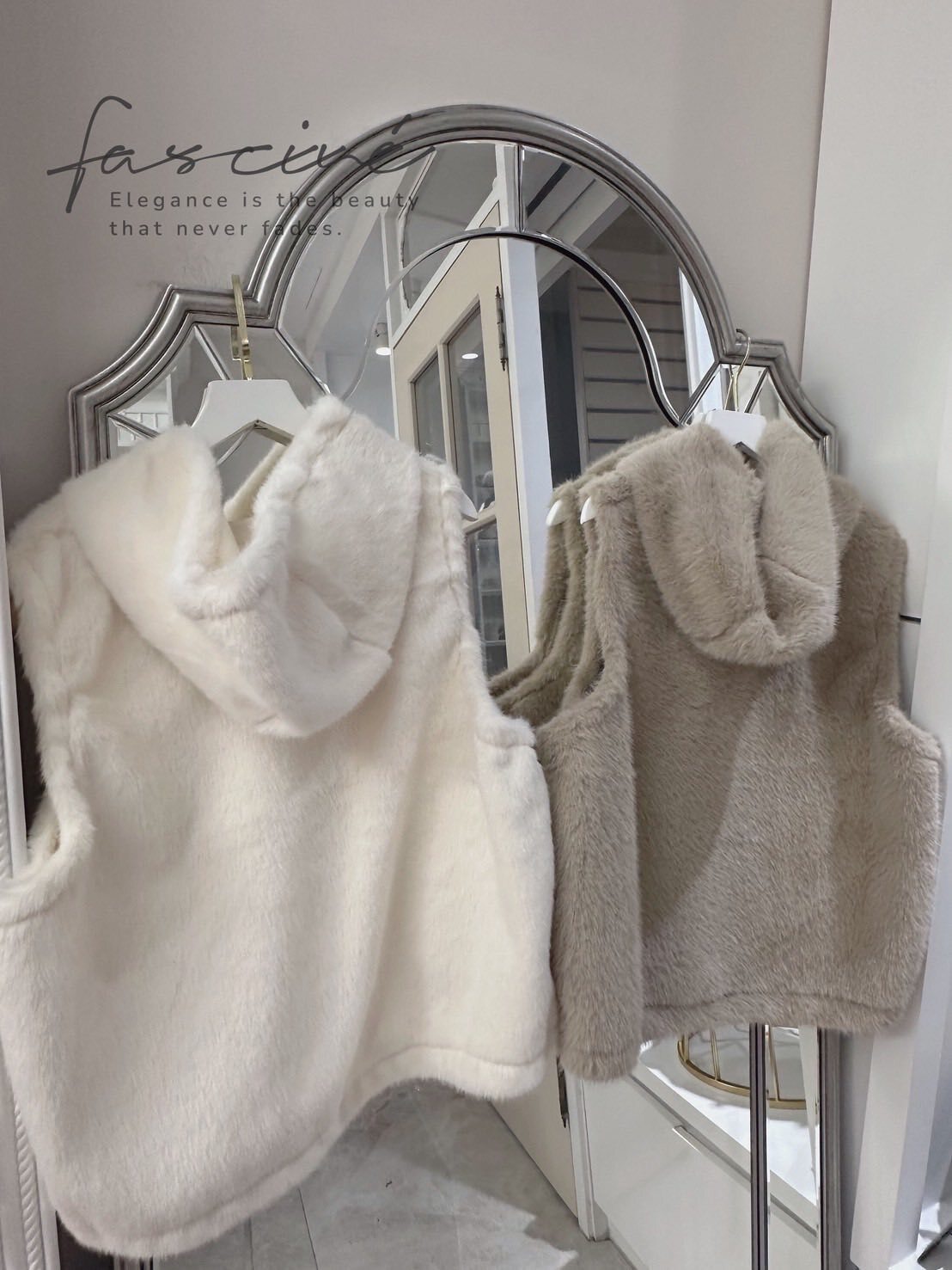 (12T02-25B)法式溫暖軟糯的毛絨質感連帽拉鍊背心$590