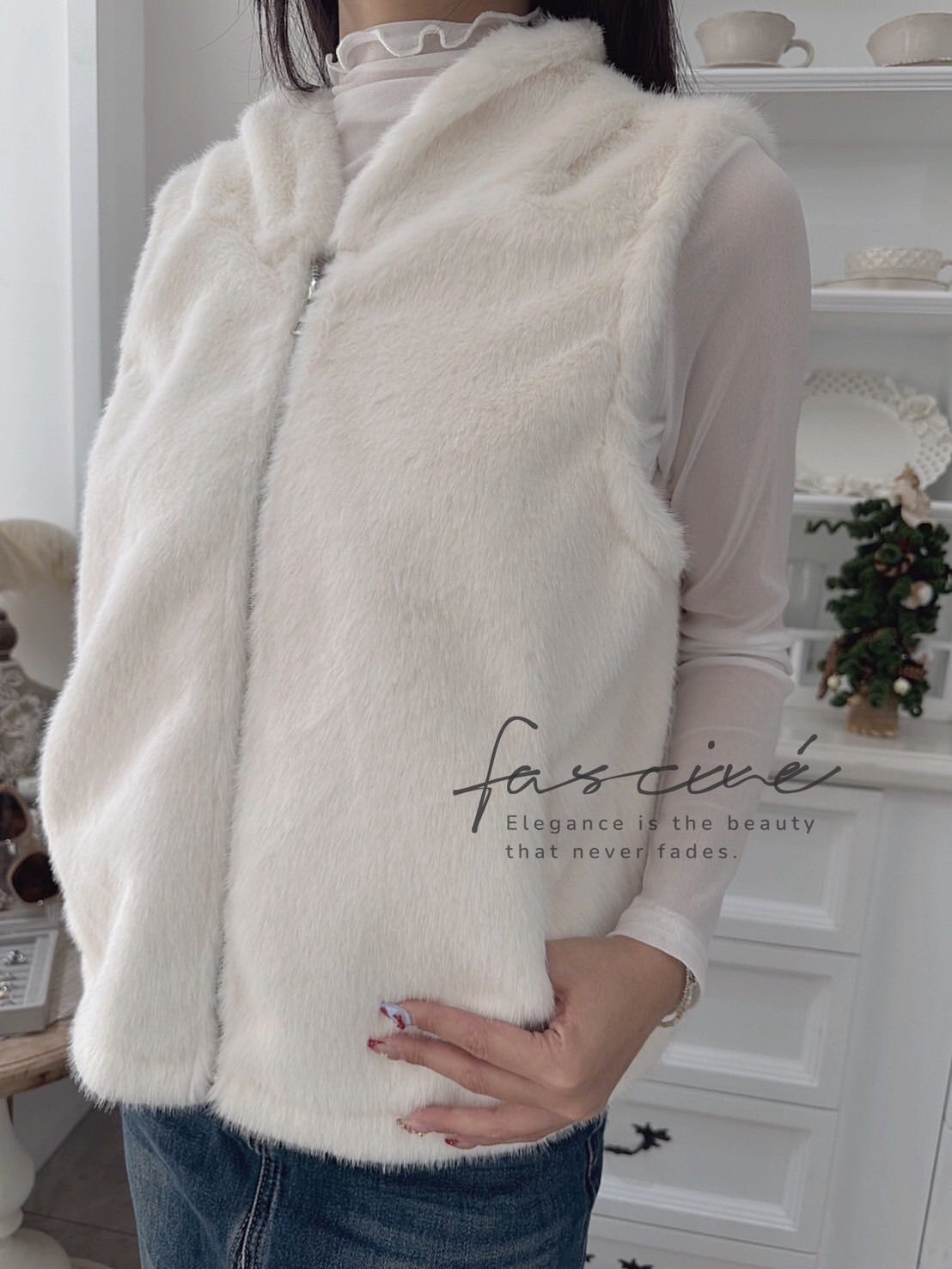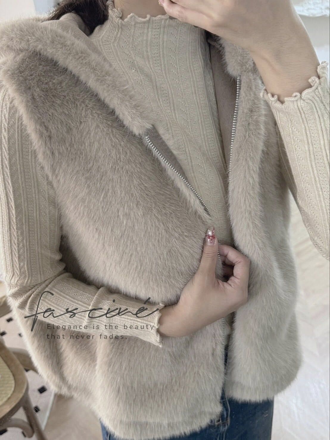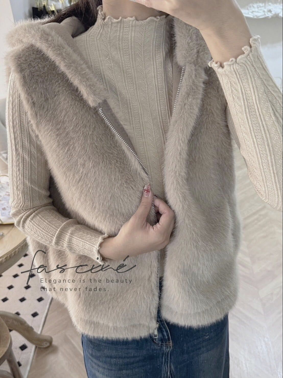 (12T02-25)法式溫暖軟糯的毛絨質感連帽拉鍊背心$590