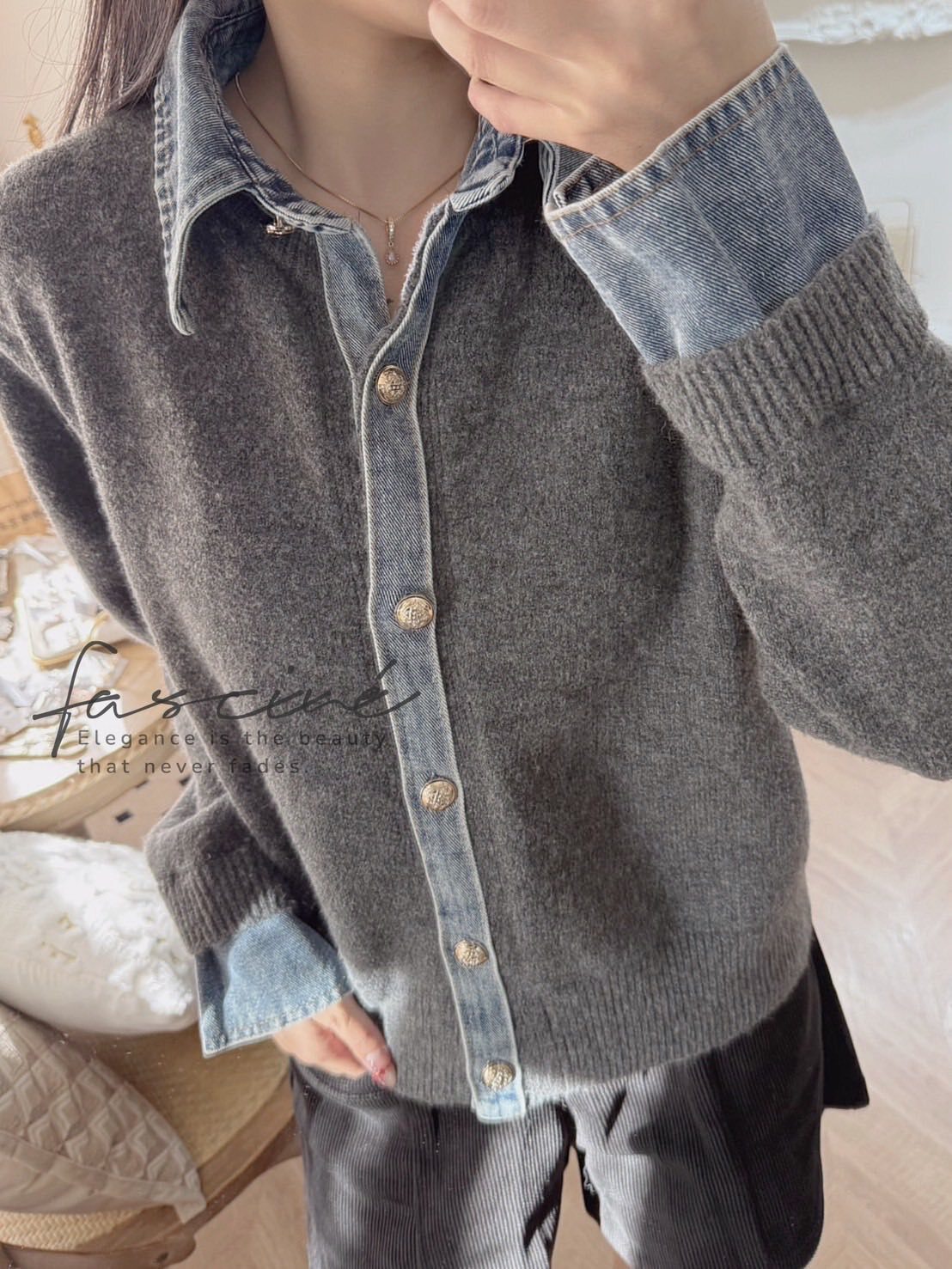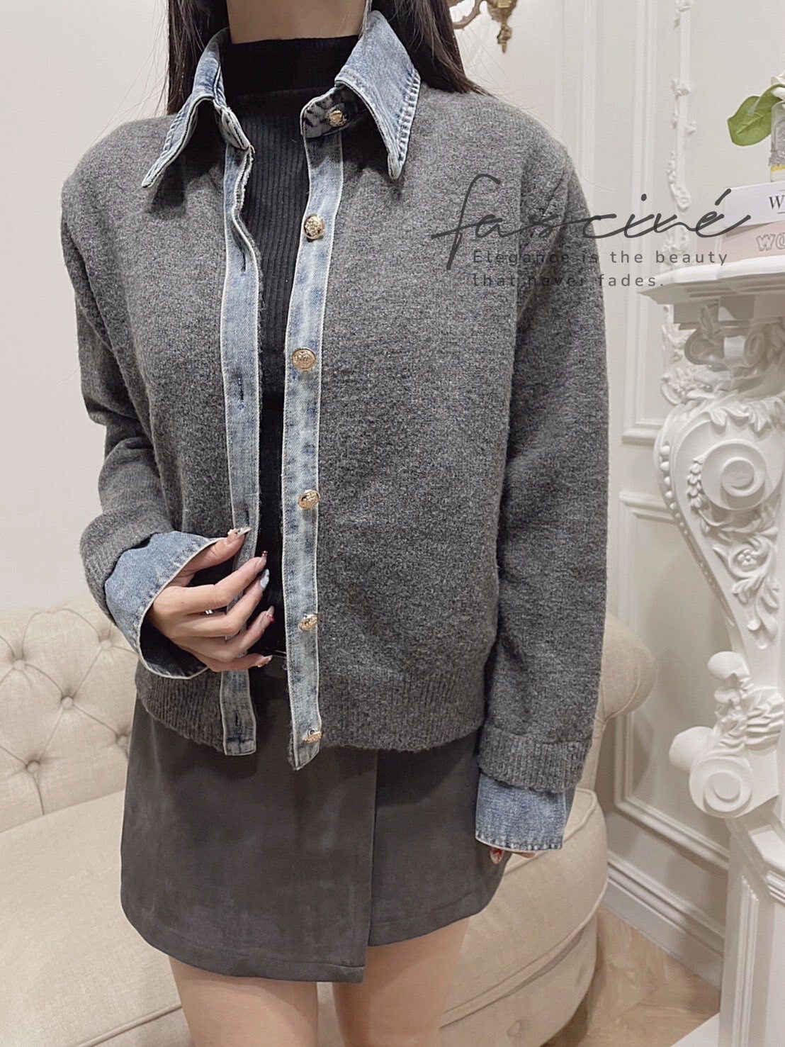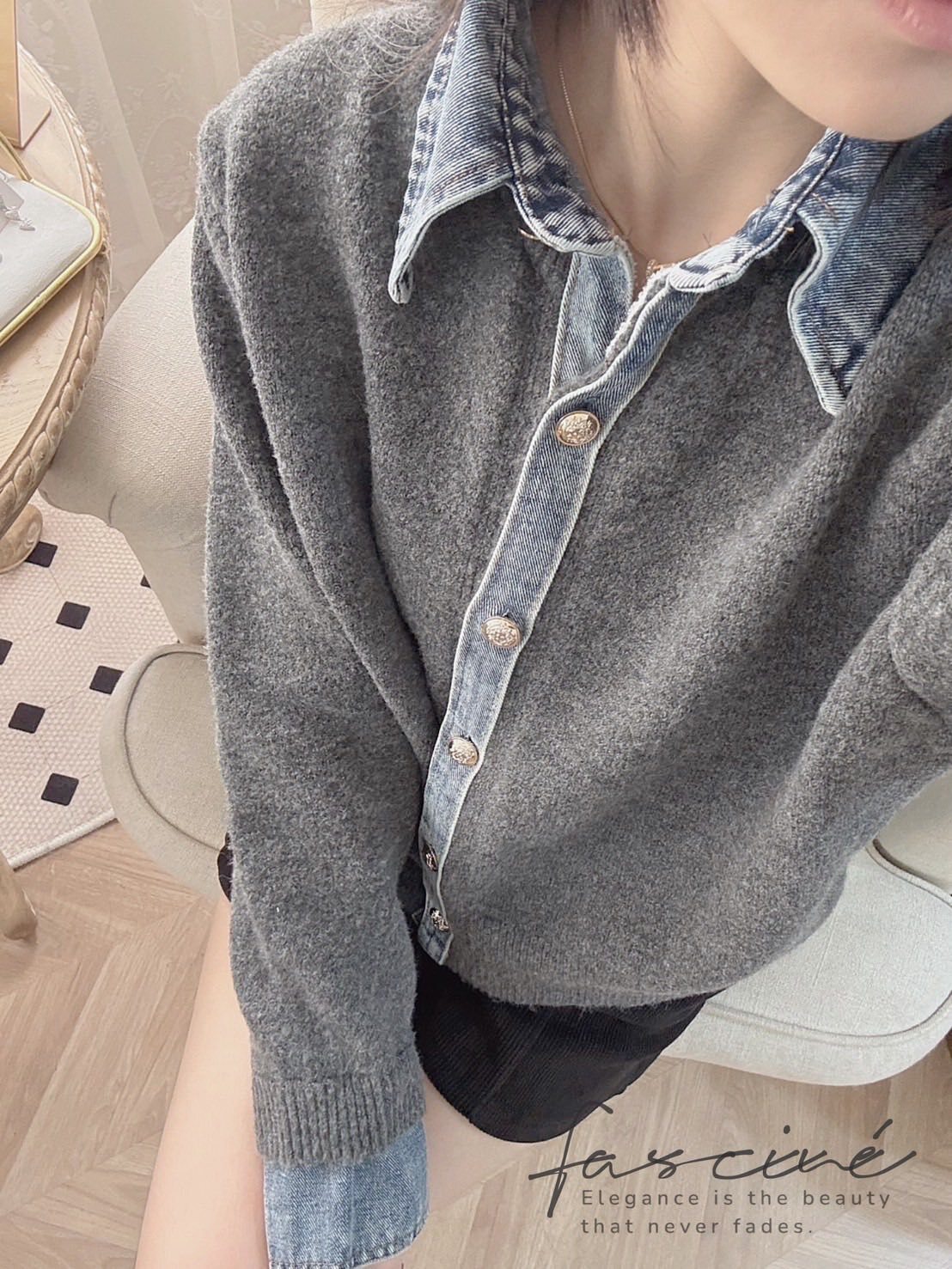 (12T43-25B) 法式高級感慵懶寬鬆時尚牛仔拼接顯瘦開衫上衣$590